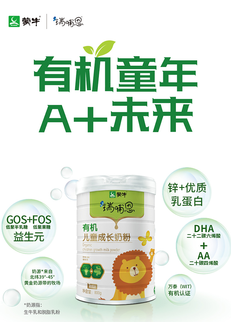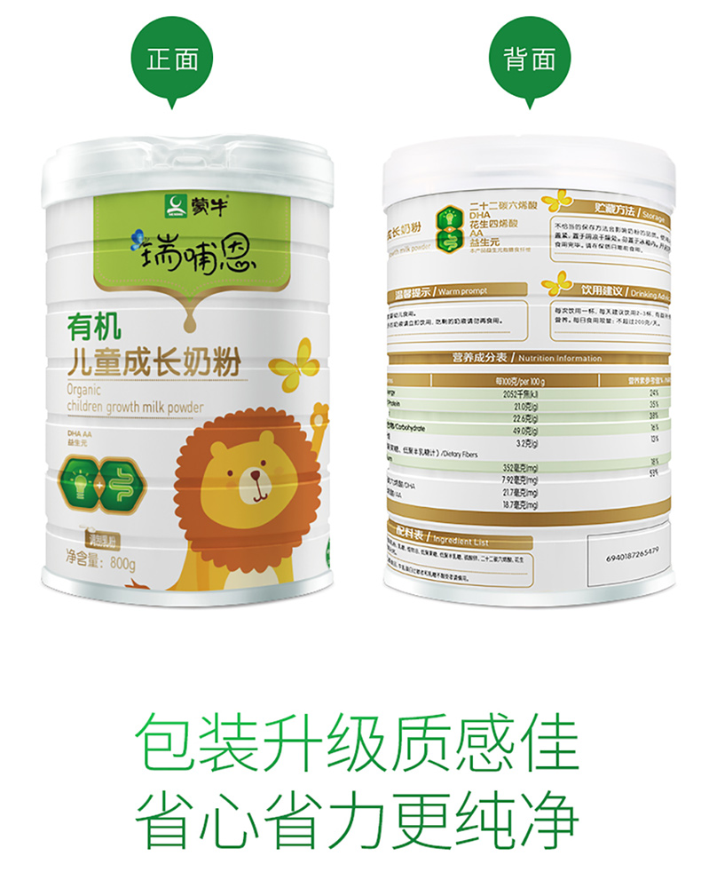 蒙牛瑞哺恩4段青少年儿童学生成长有配方奶粉800g桶