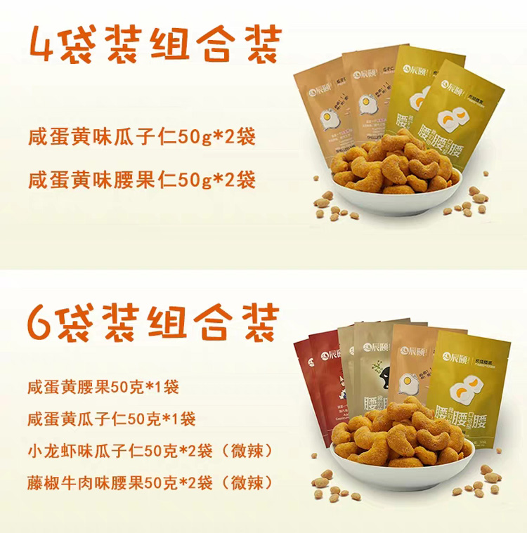 咸蛋黄越南炭烧腰果瓜子仁藤椒牛肉味香辣混合4一6袋包邮