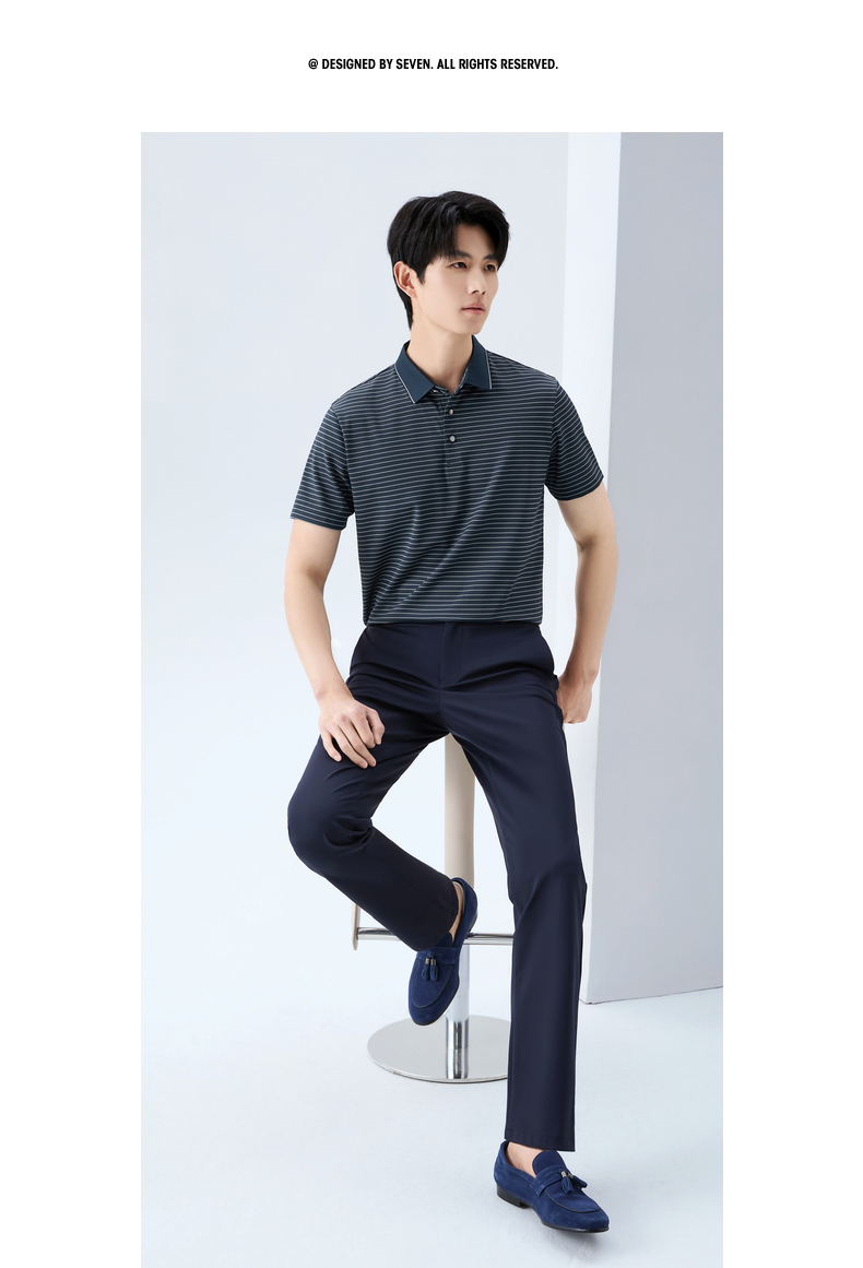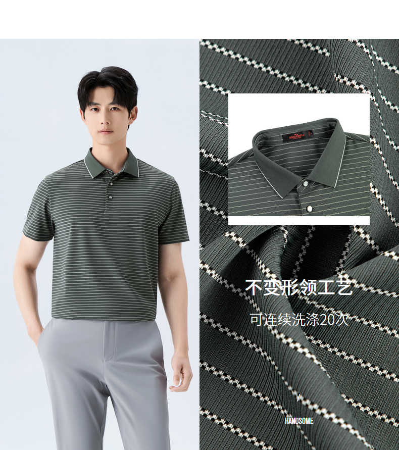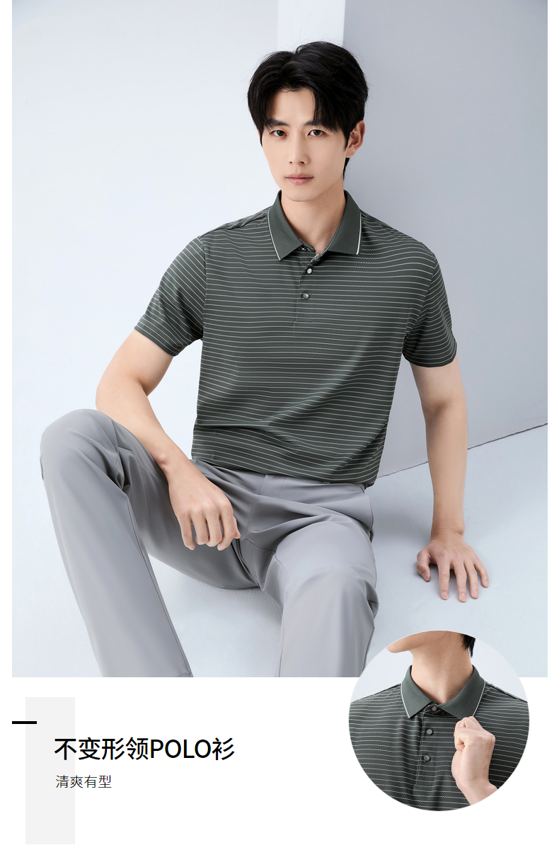 【条纹POLO衫】柒牌男装26夏上新短袖POLO衫休闲凉感防晒舒适上衣 130T71080