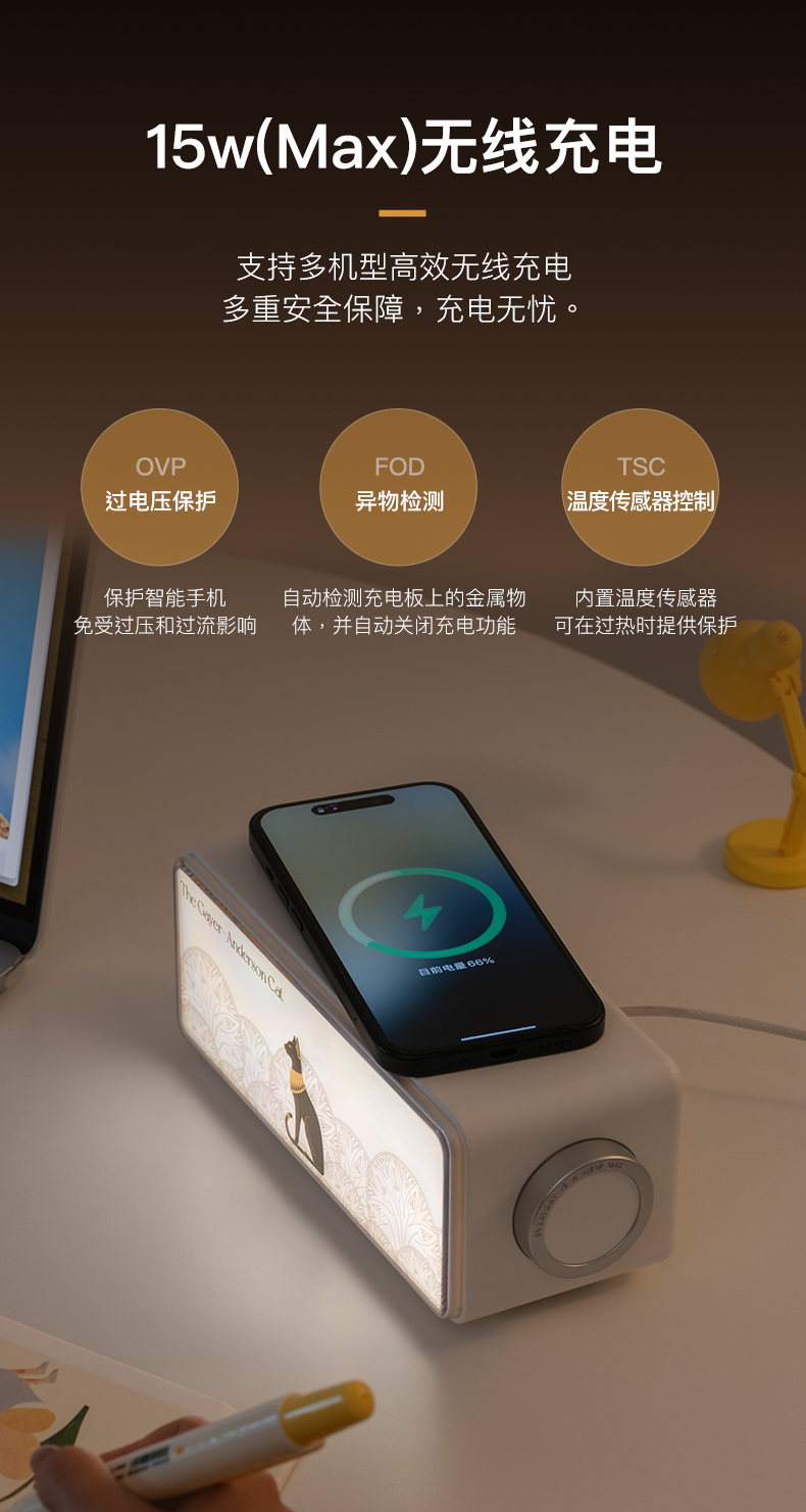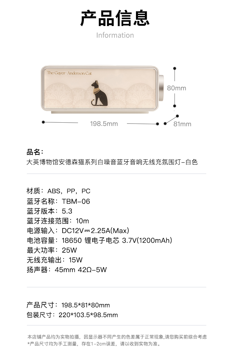 大英博物馆 安德森猫系列 白噪音蓝牙音响无线充氛围灯 白色