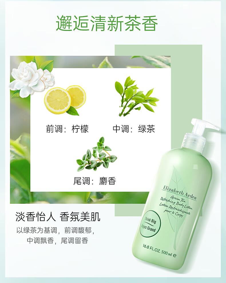 雅顿绿茶沐浴露/身体乳500ml 保湿滋润不粘腻 绿茶精华柔滑美肌 112465/112466
