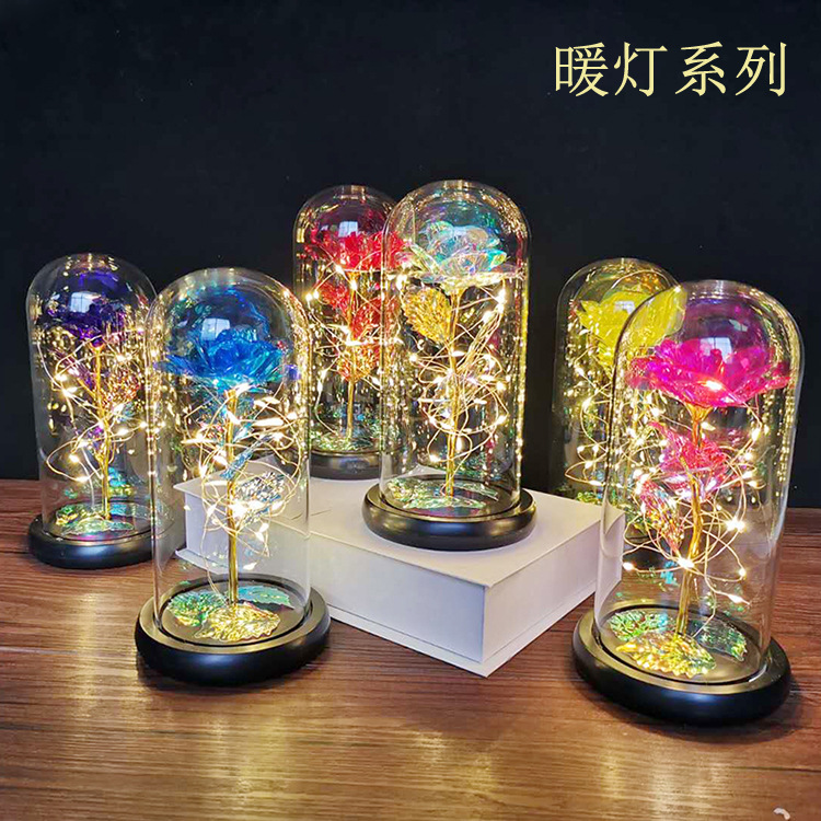 【72小时发货】520节日礼物送女友送闺蜜生日 永生花金箔玫瑰花玻璃罩 带led灯发光