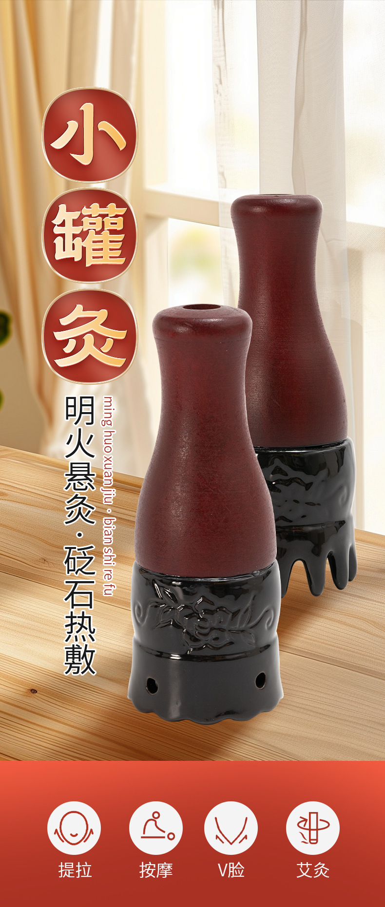 新款【砭石手柄灸】头疗艾灸罐随身灸家用砭石艾灸罐面部刮痧一体杯手持头疗罐按摩温灸器