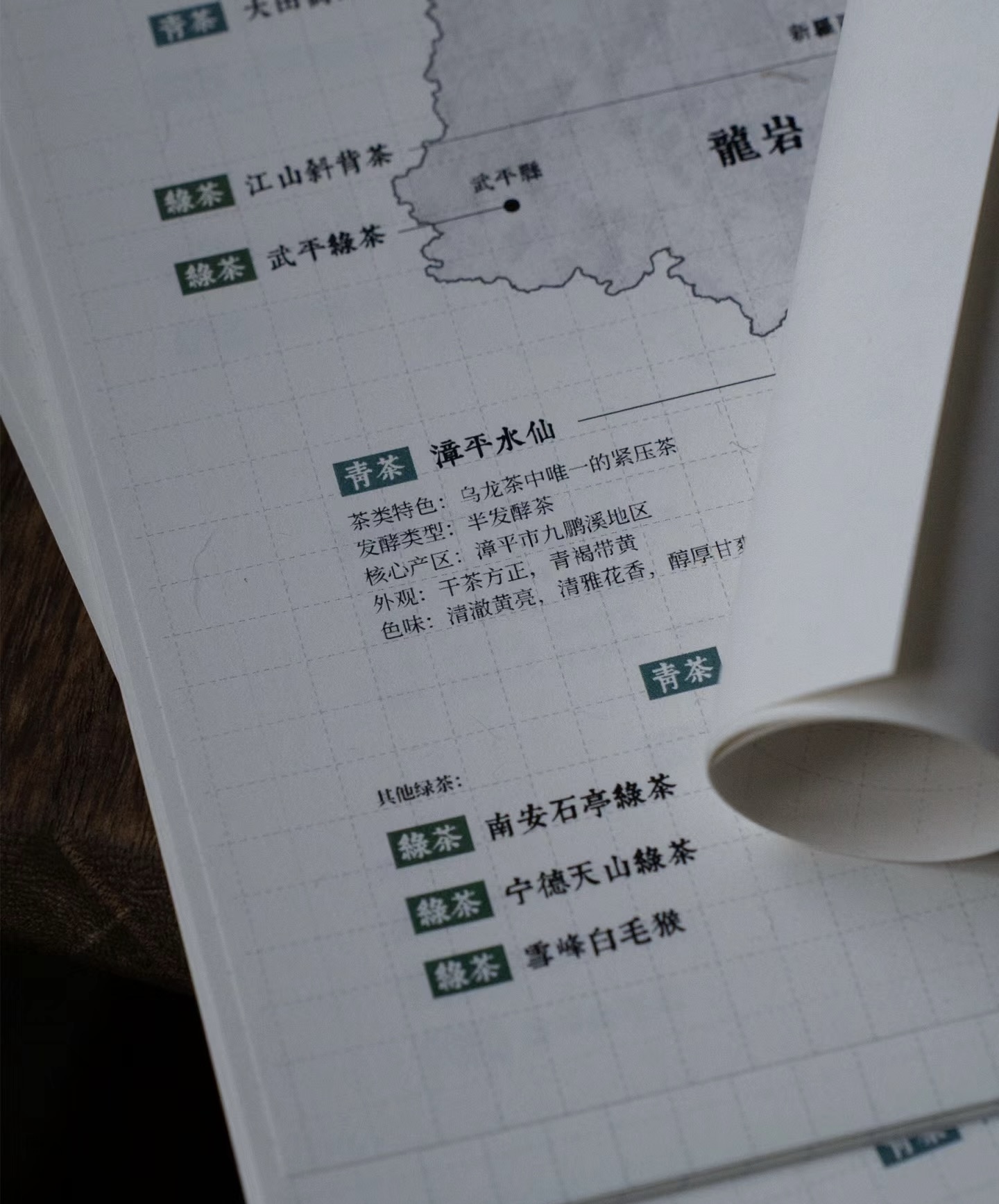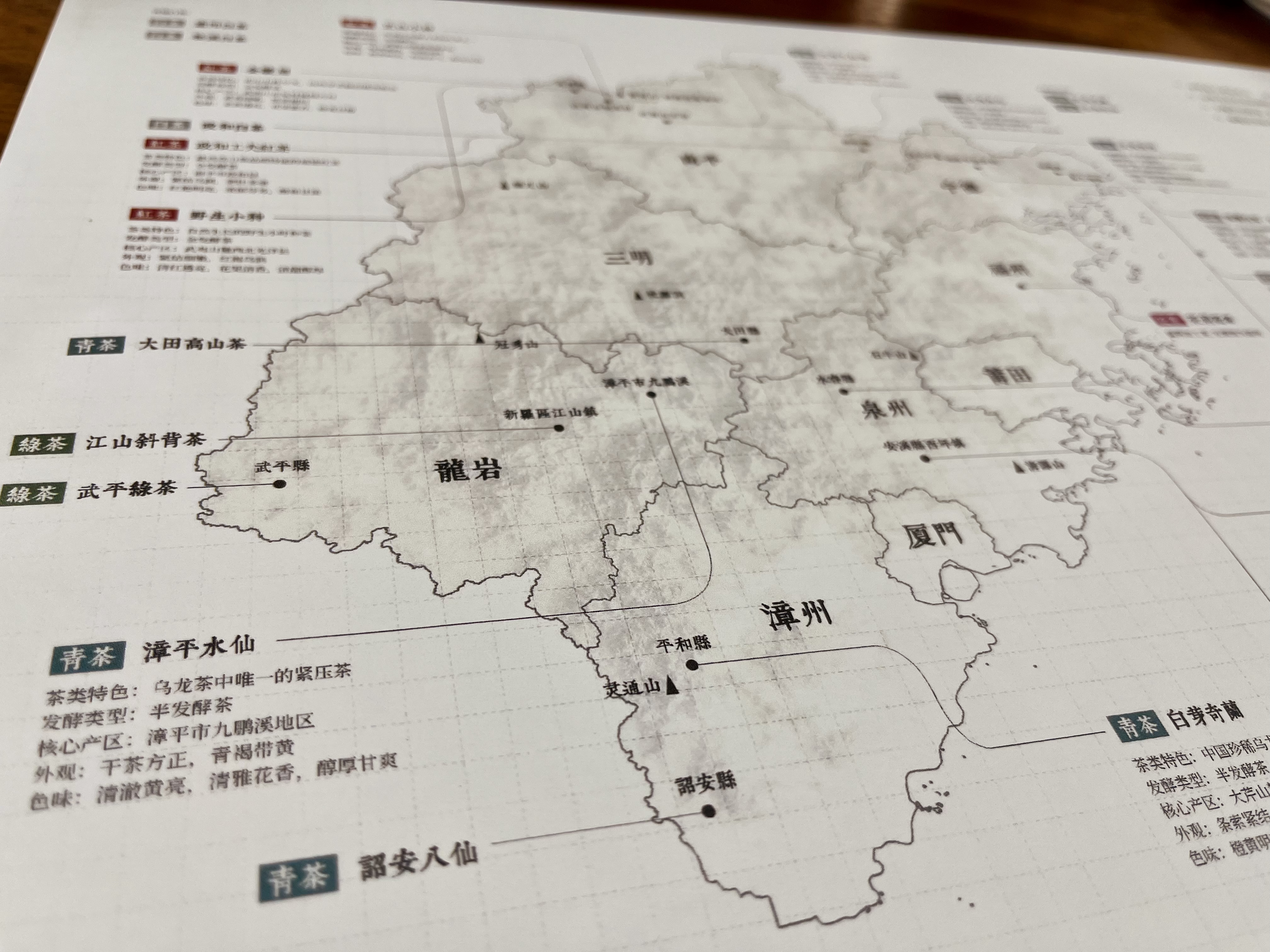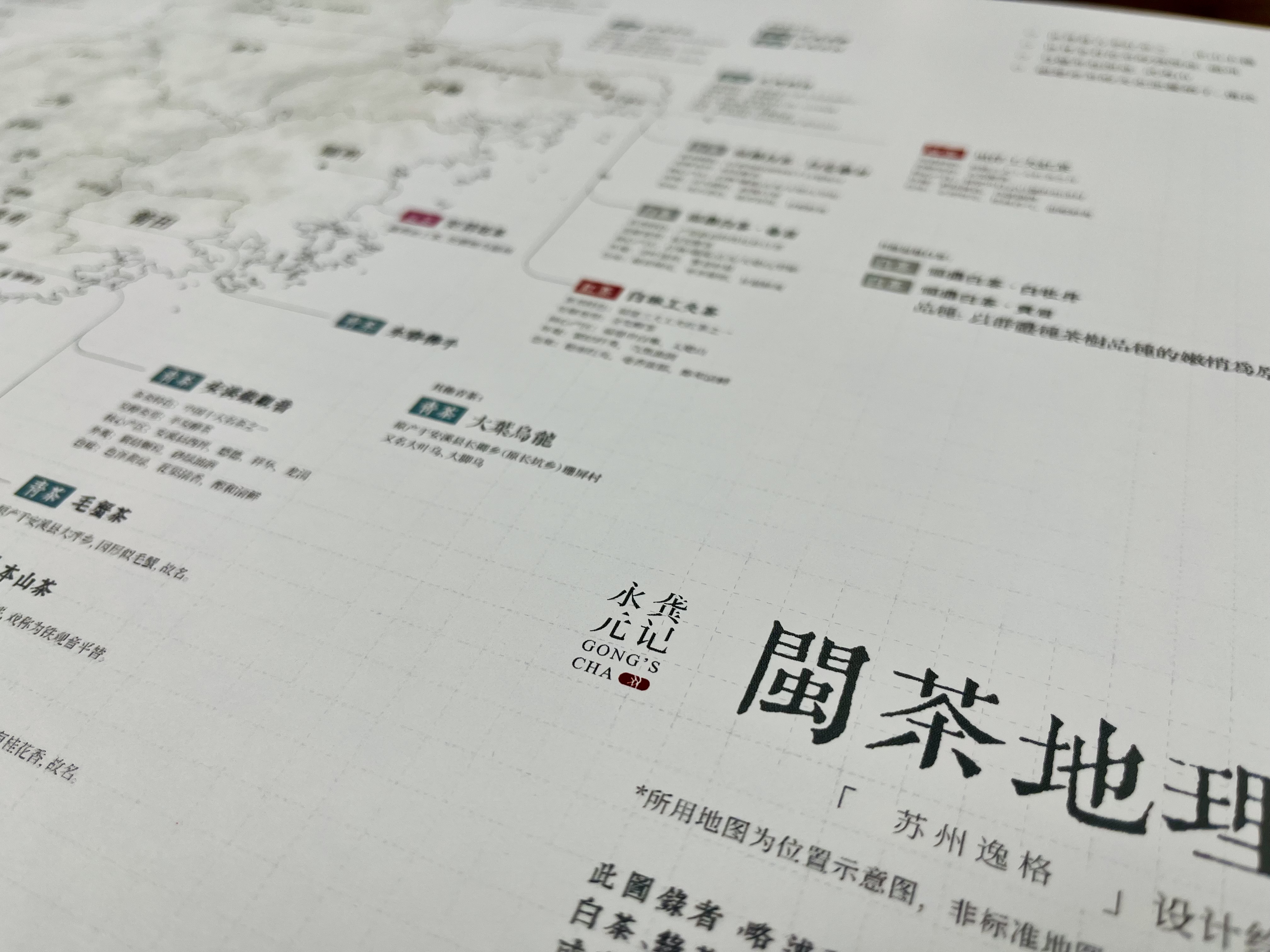 龚记永元联合苏州逸格,设计绘制了这份「闽茶图录」,一份结合地形区位的福建茶类分布地图。