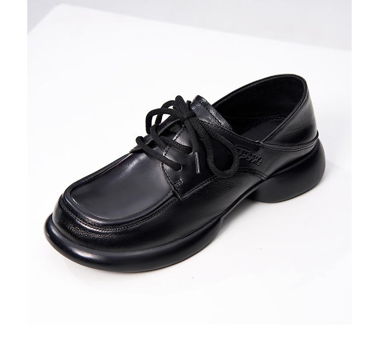 【实付满399送保温杯】【牛皮系带款乐福鞋】女款圆头休闲皮鞋通勤办公单鞋