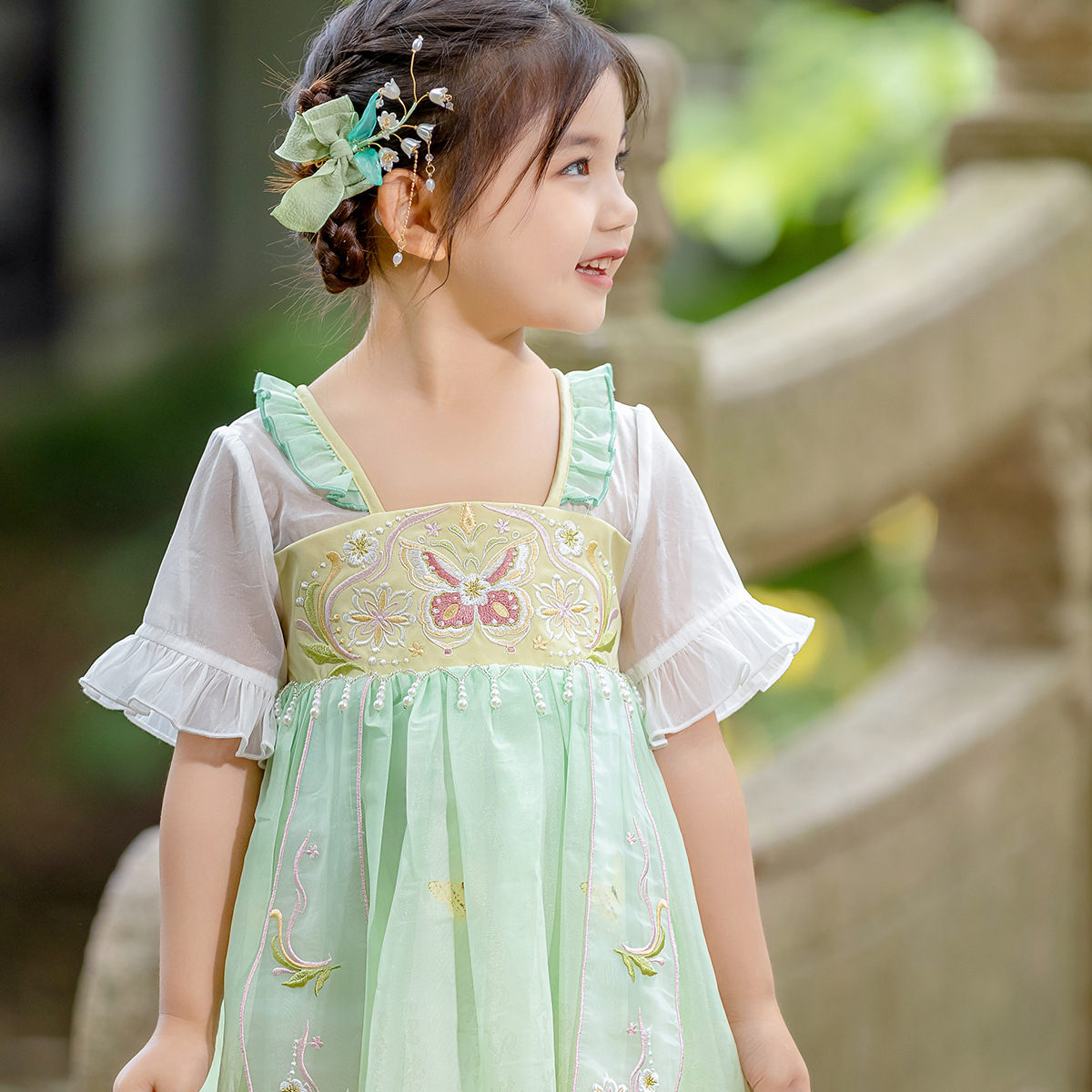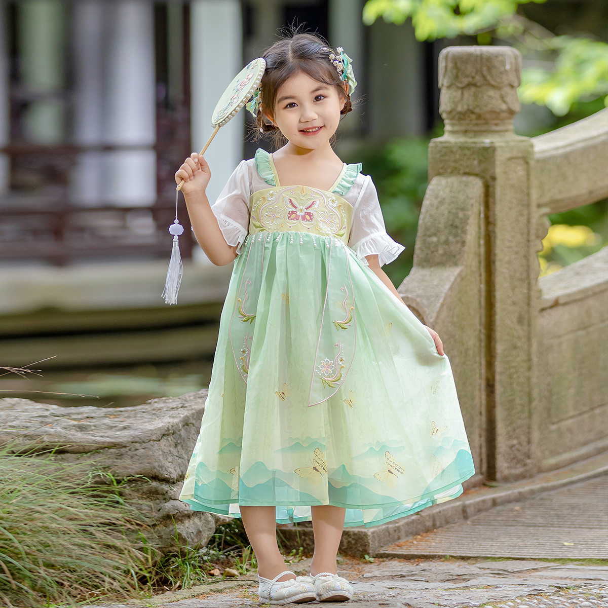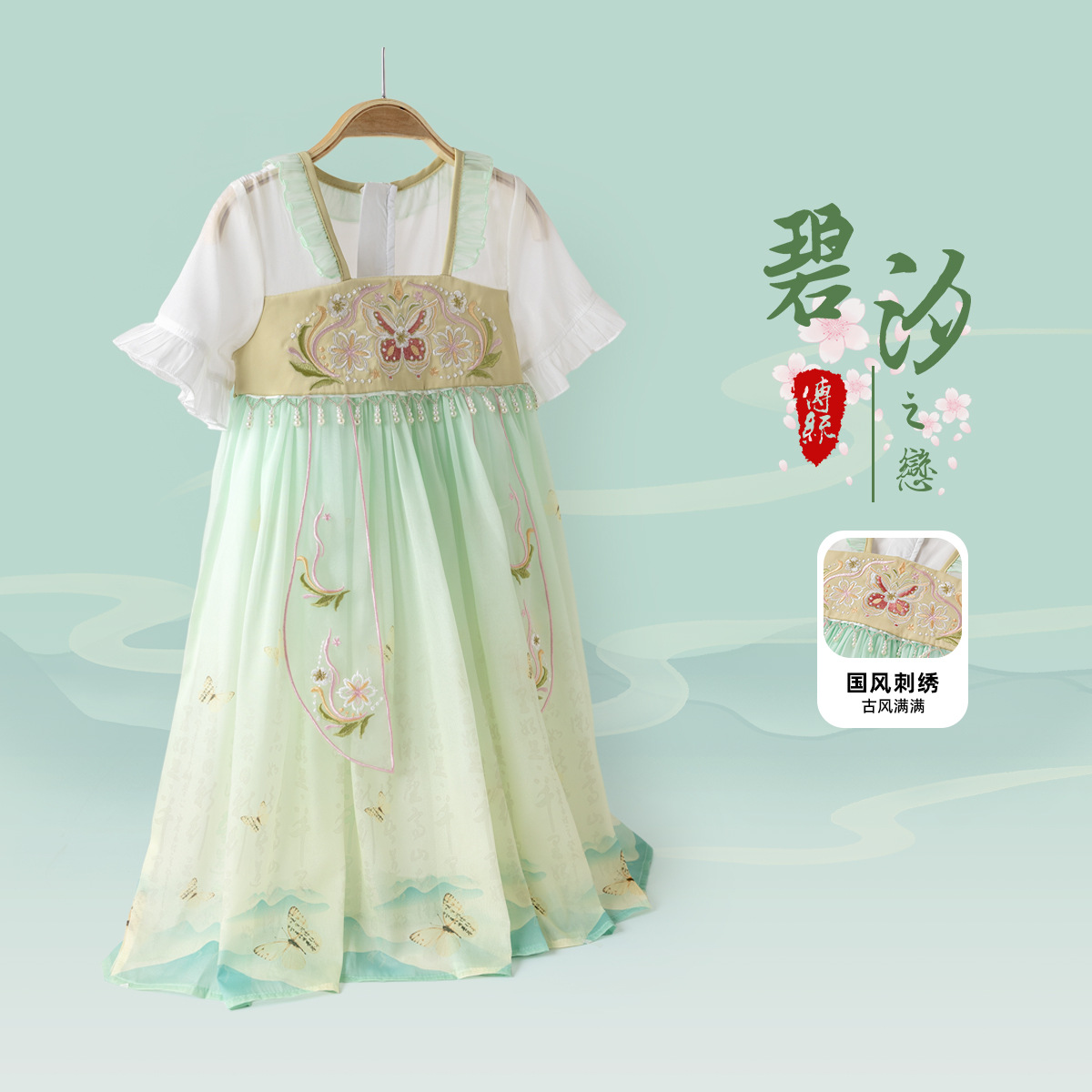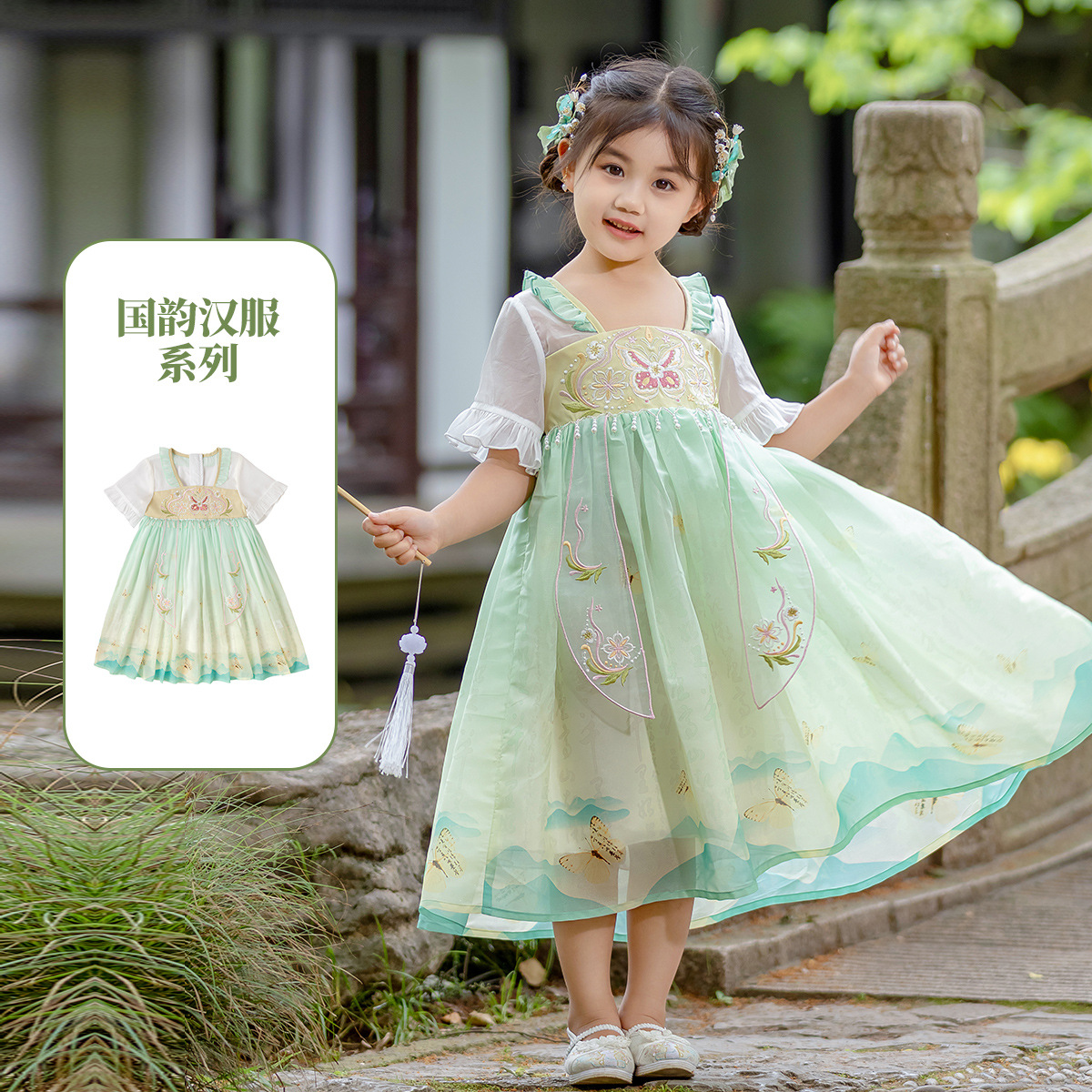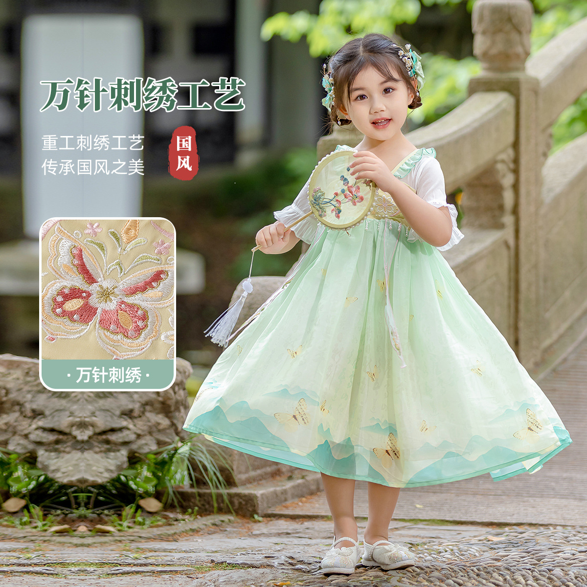 嘟嘟家女童国风汉服夏季新款夏季演出服女宝绣花连衣裙夏装童装