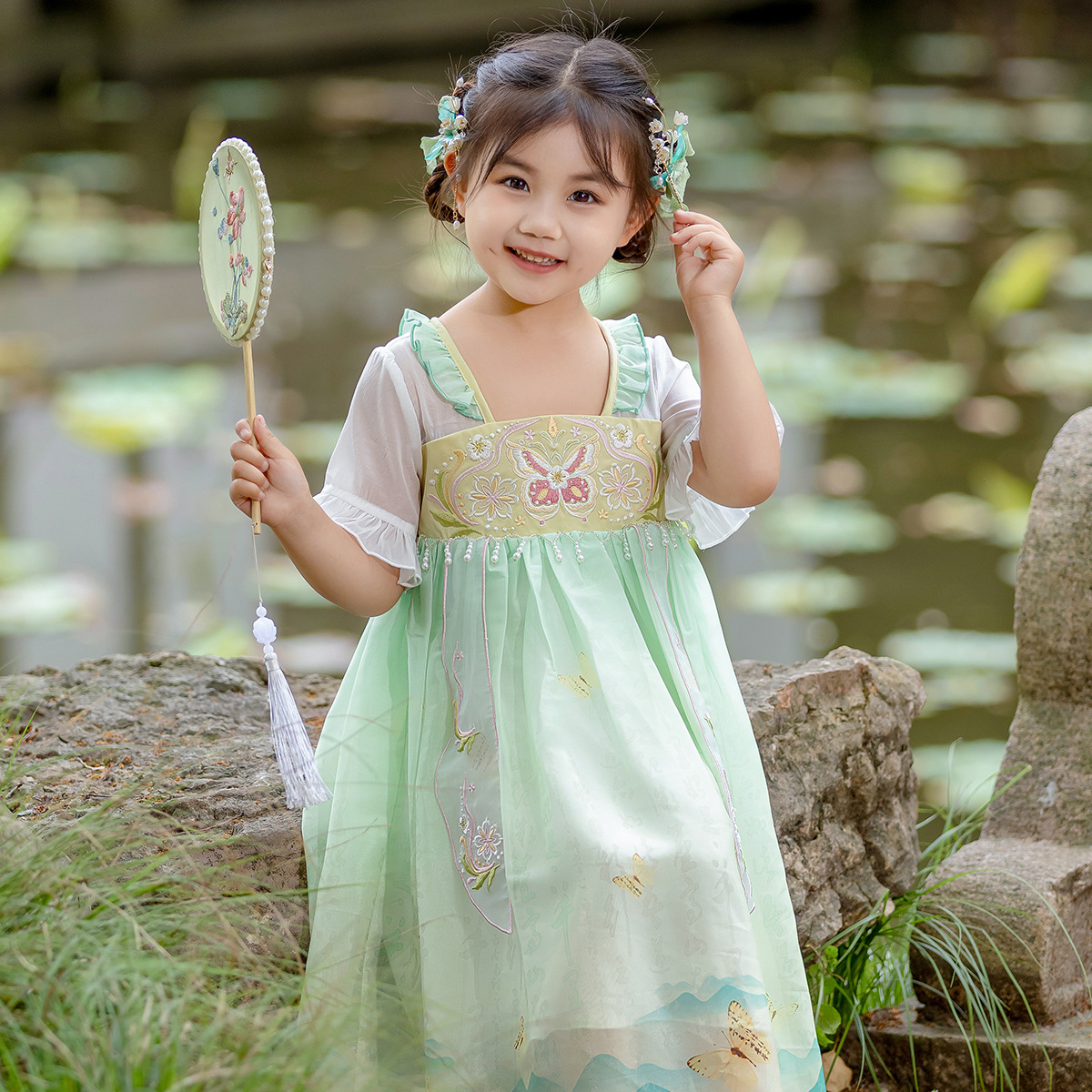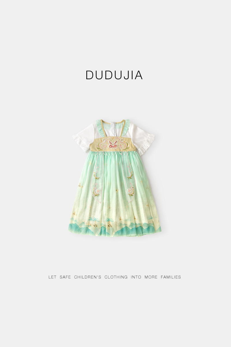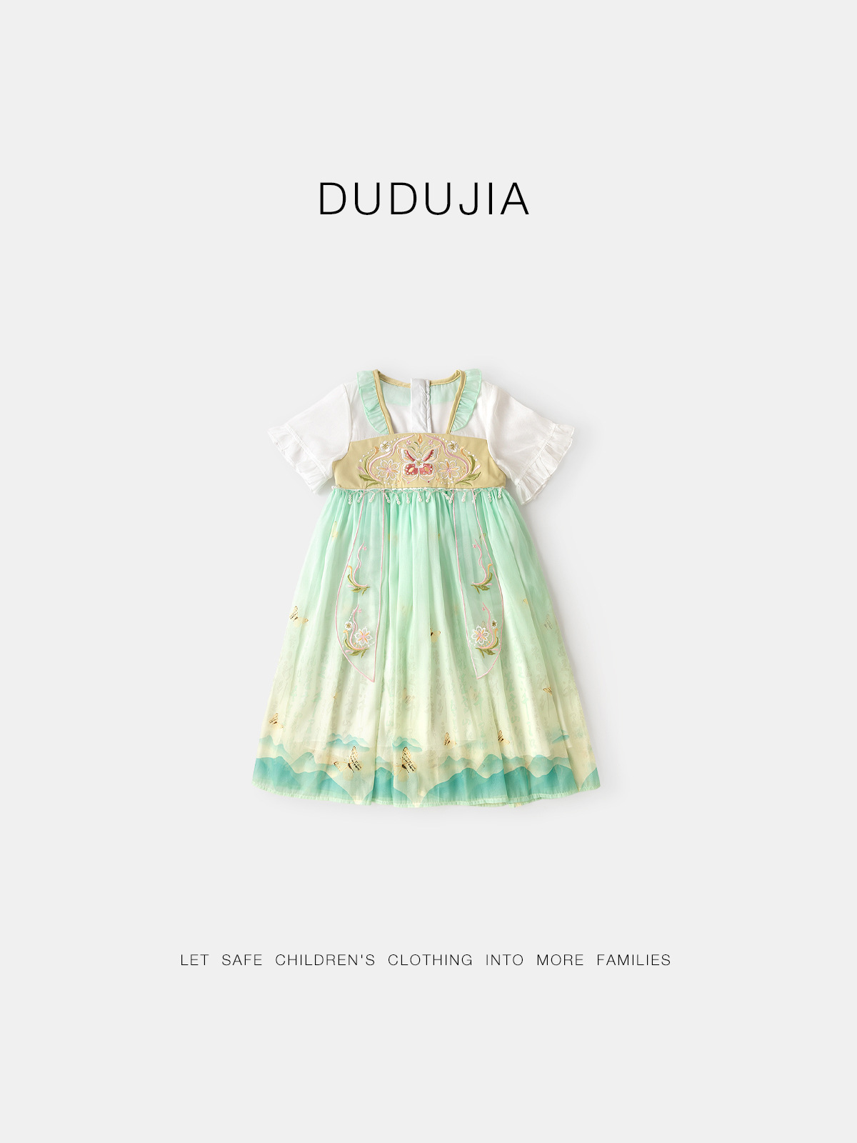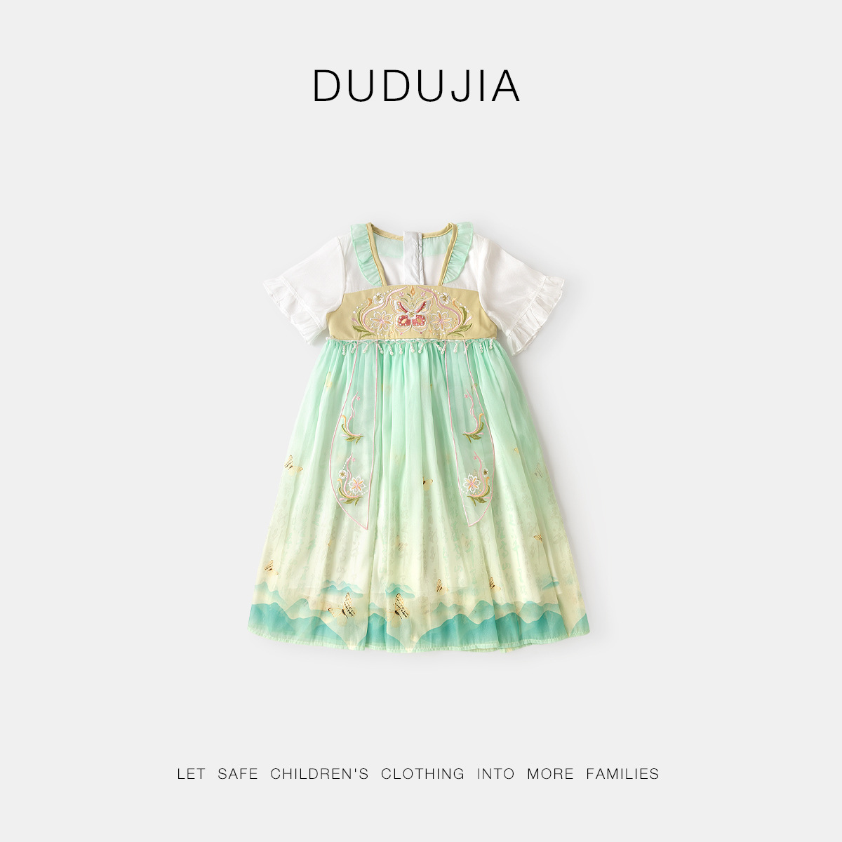 嘟嘟家女童国风汉服夏季新款夏季演出服女宝绣花连衣裙夏装童装