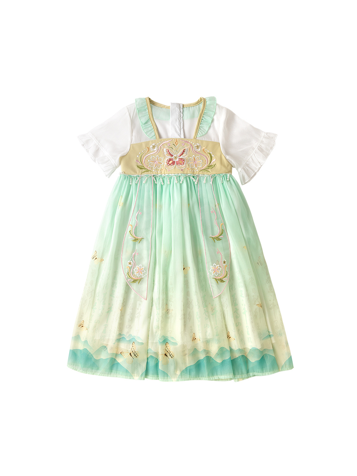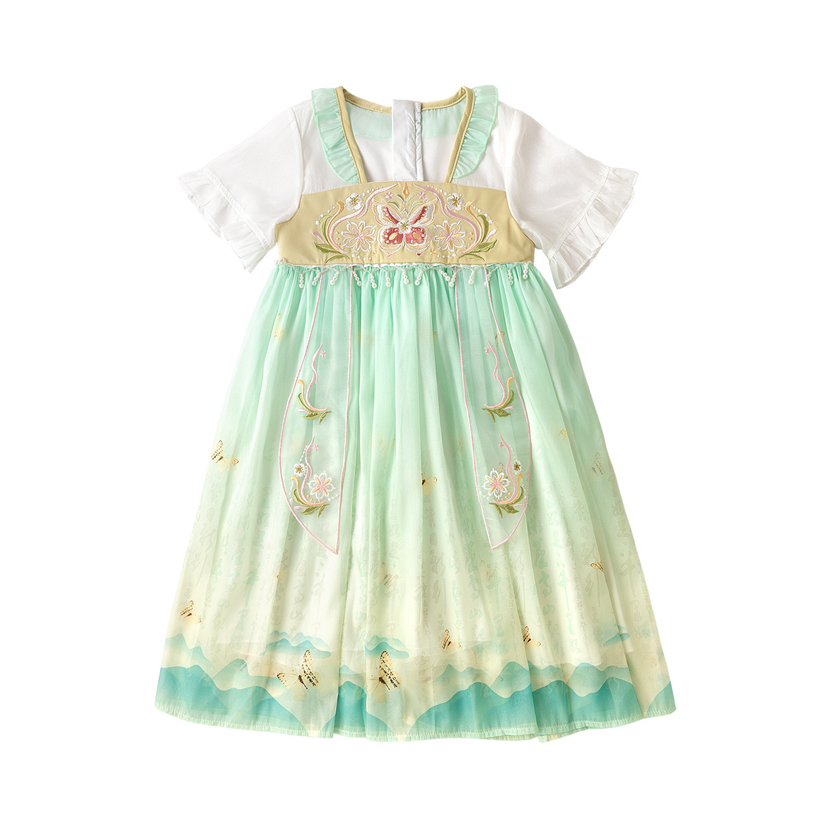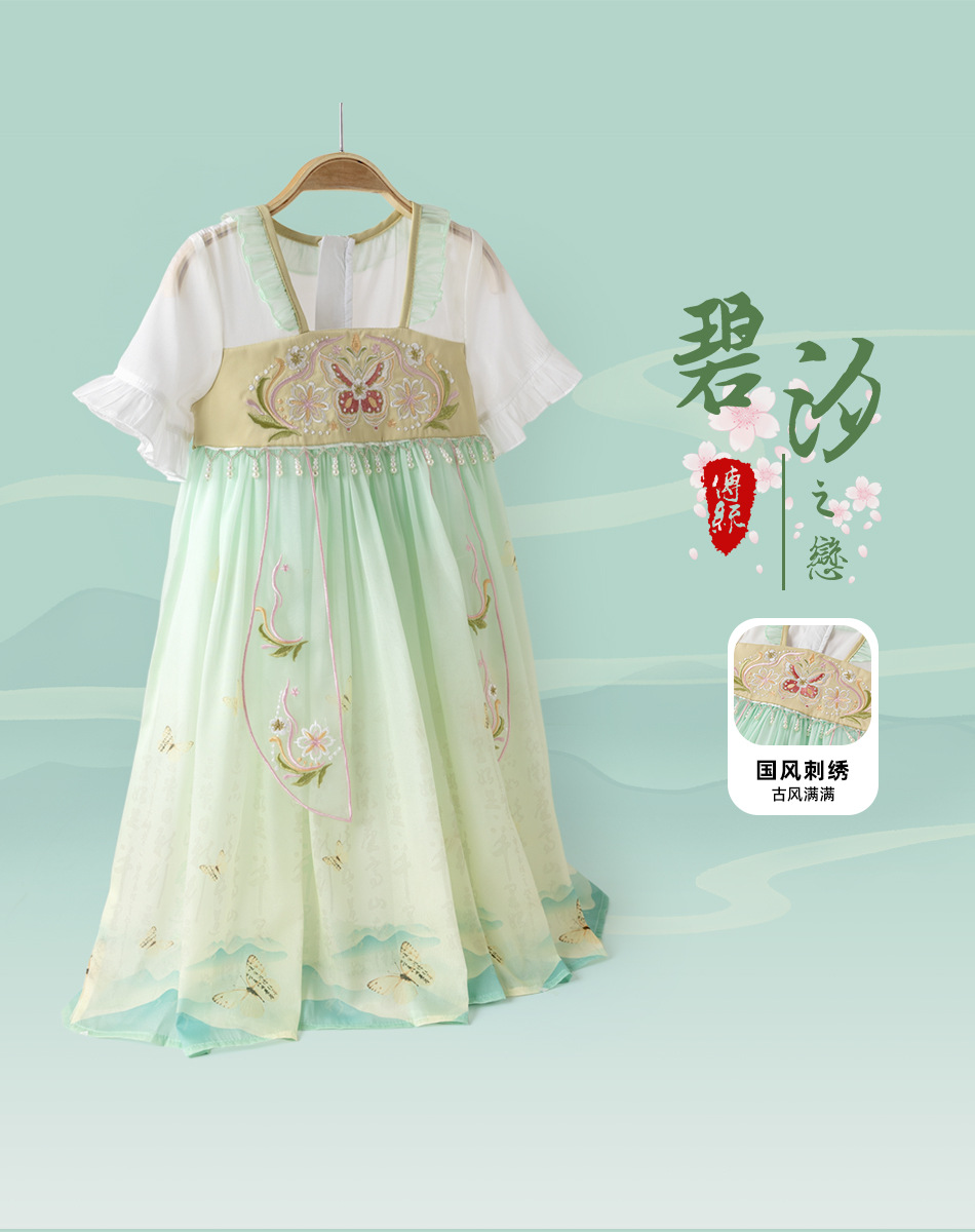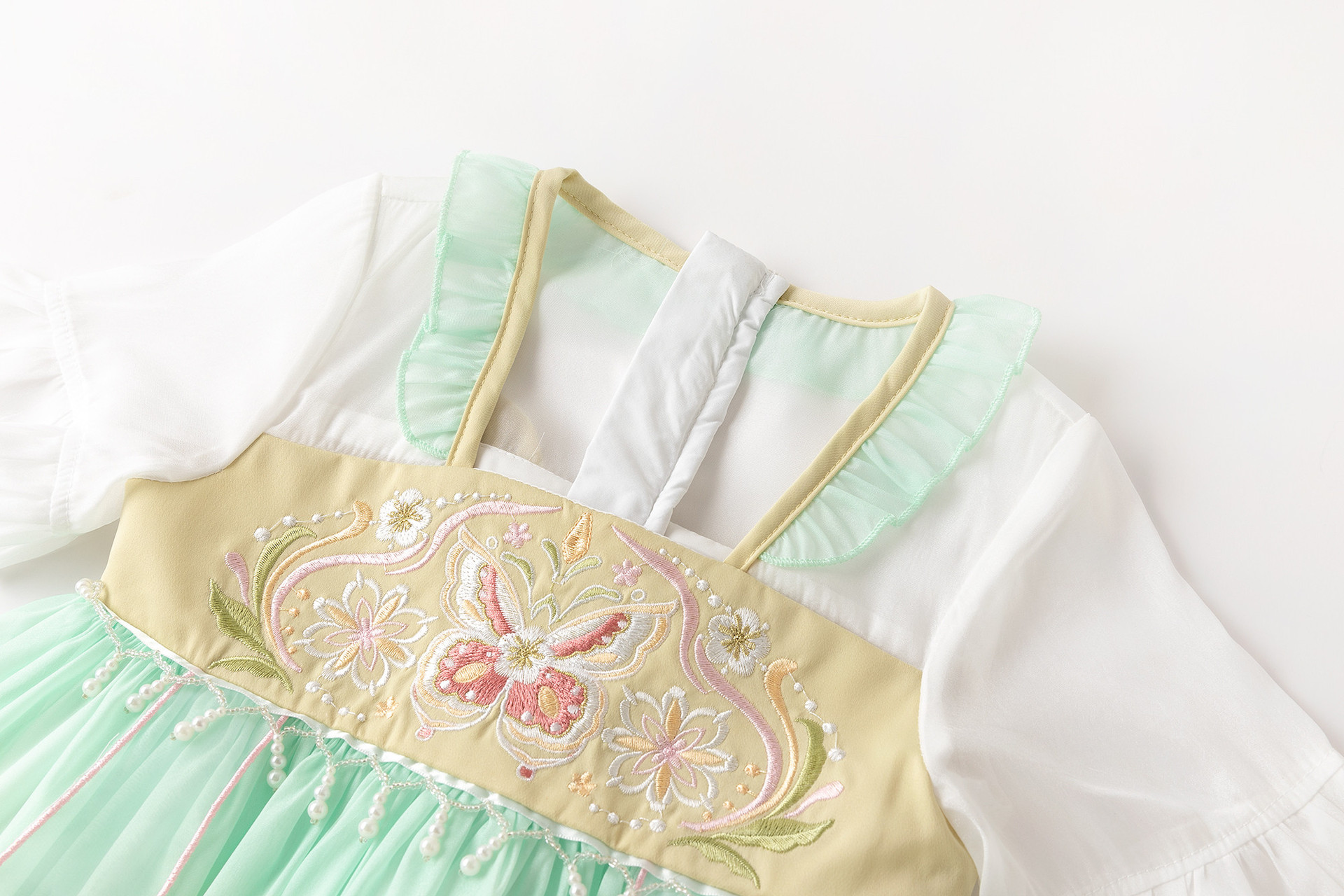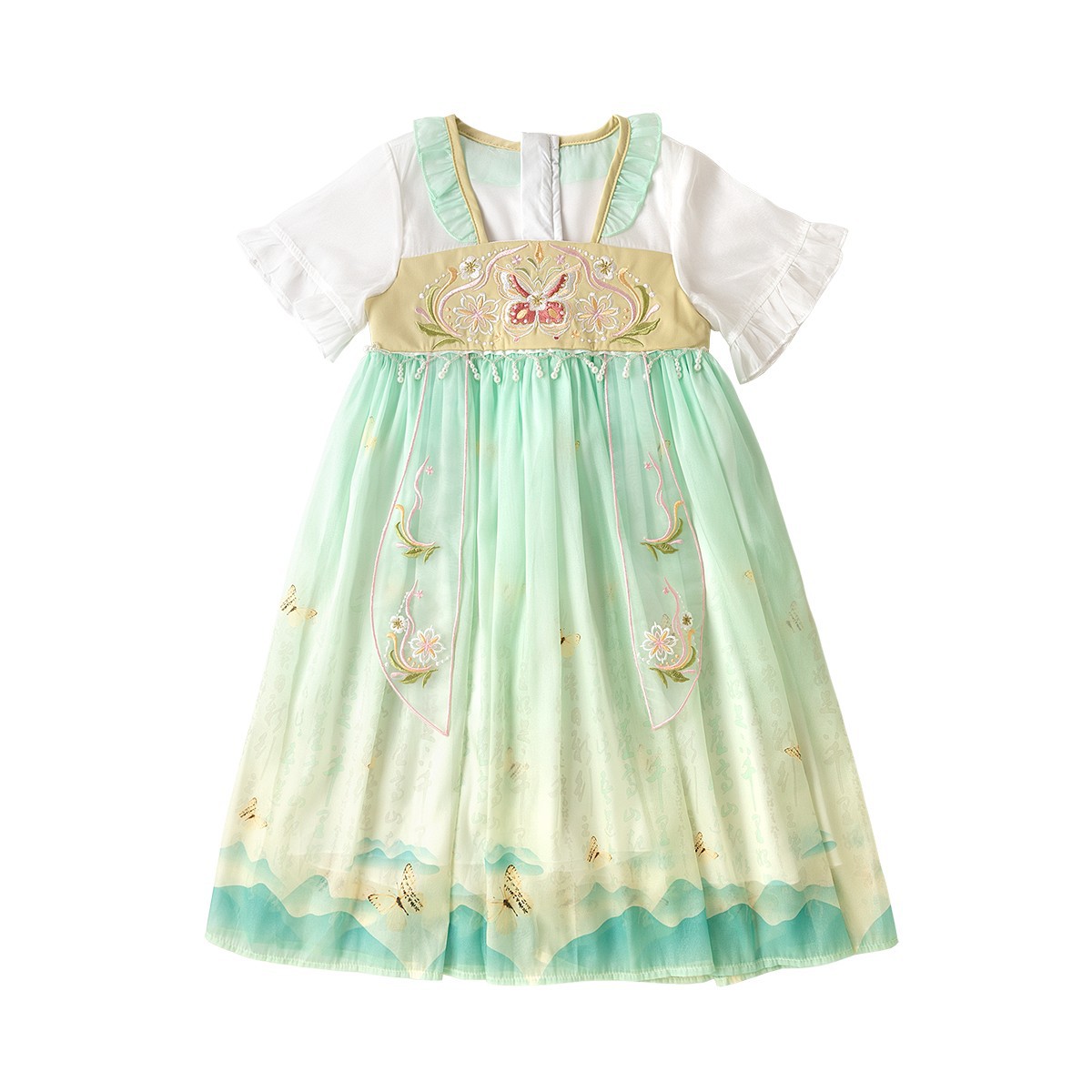 嘟嘟家女童国风汉服夏季新款夏季演出服女宝绣花连衣裙夏装童装