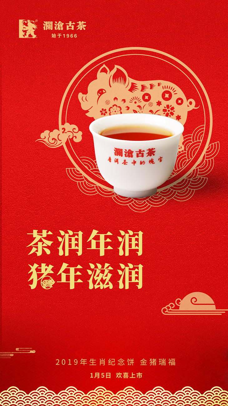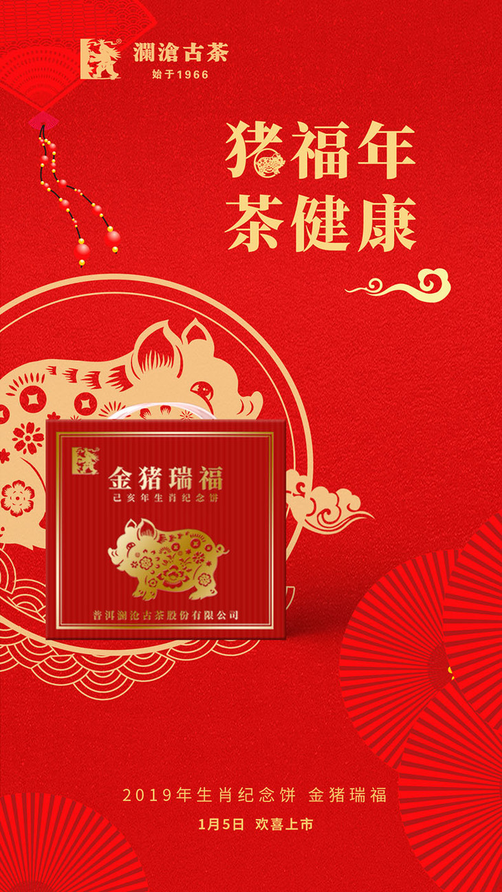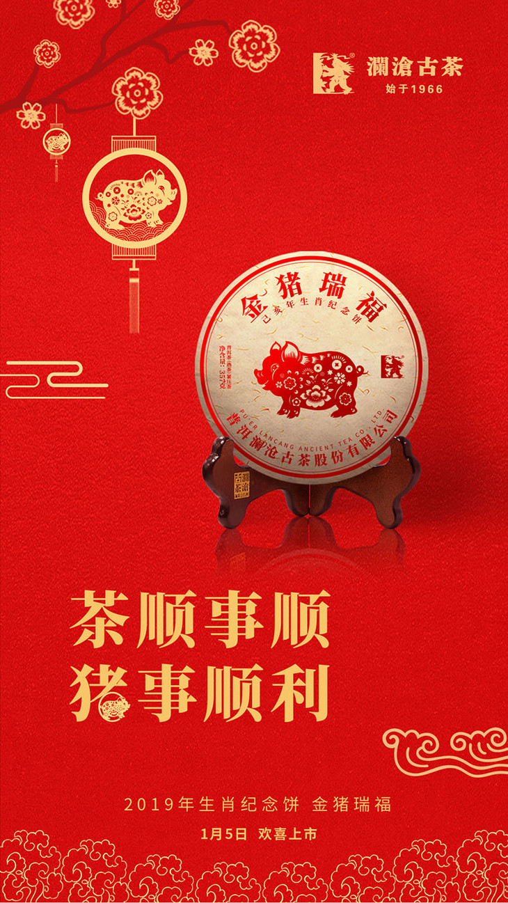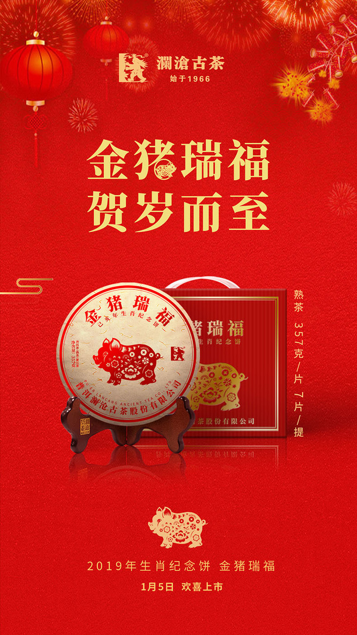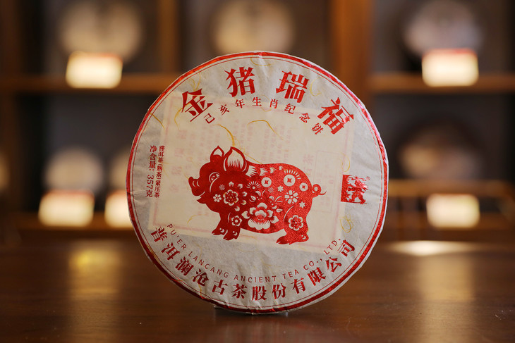 澜沧古茶2019金猪瑞福大饼生肖纪念茶普洱茶熟茶云南茶叶饼茶