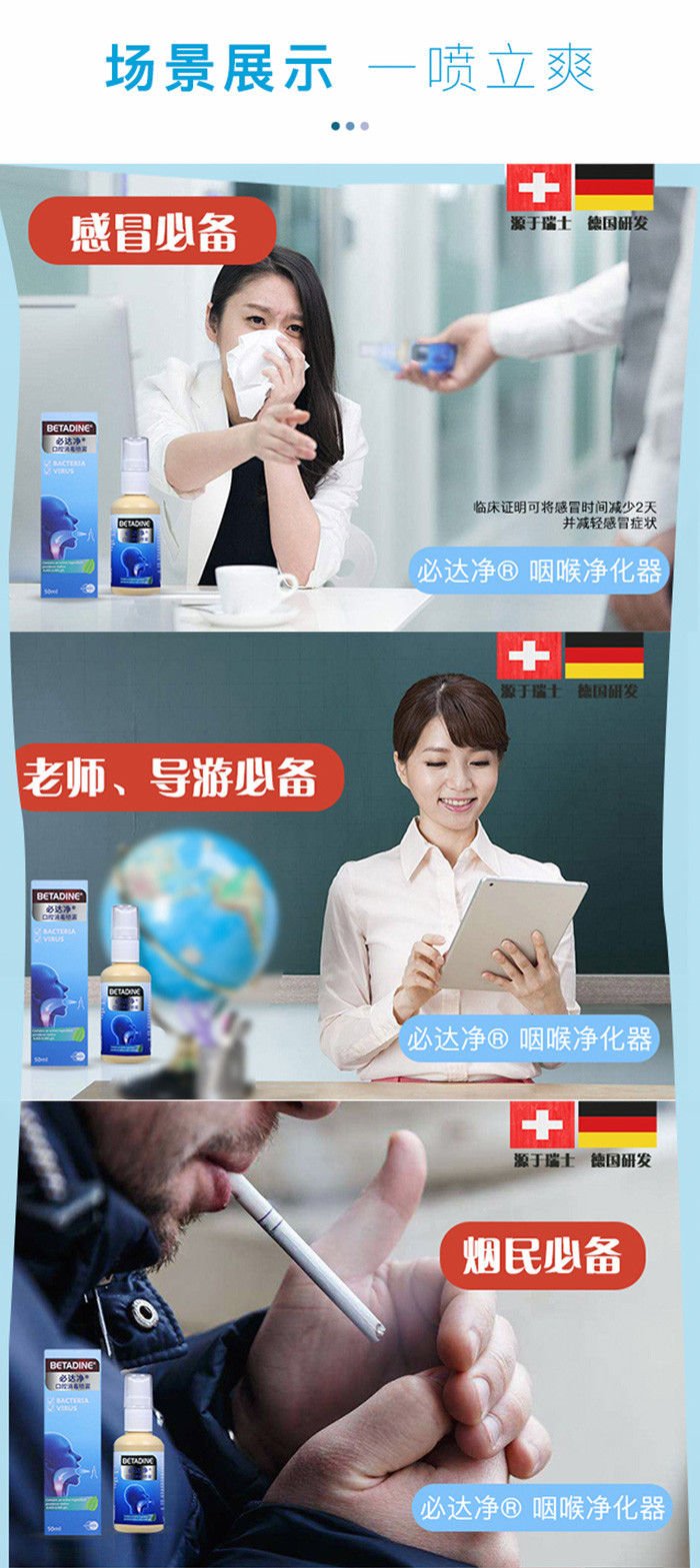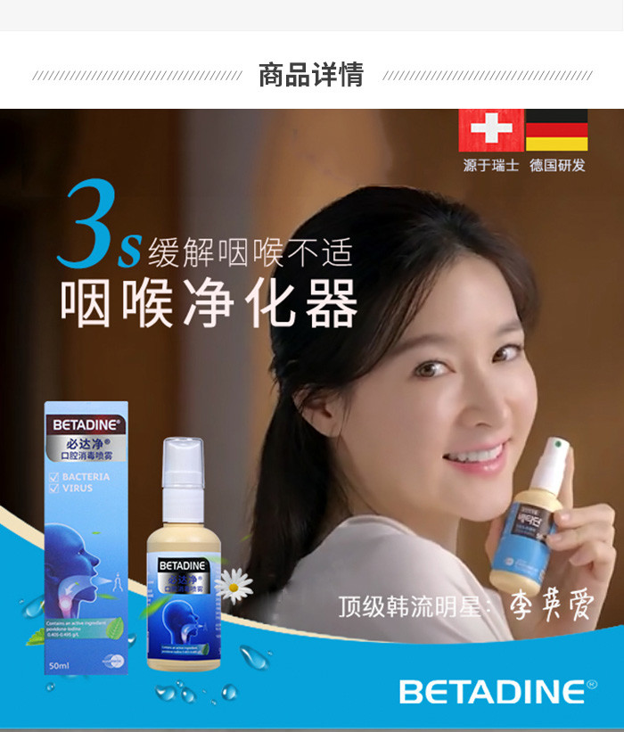 瑞士必达净咽喉净化器 消毒喷雾 李英爱同款 任何口腔咽喉不适 3秒杀菌 一喷就爽 50ML随身装