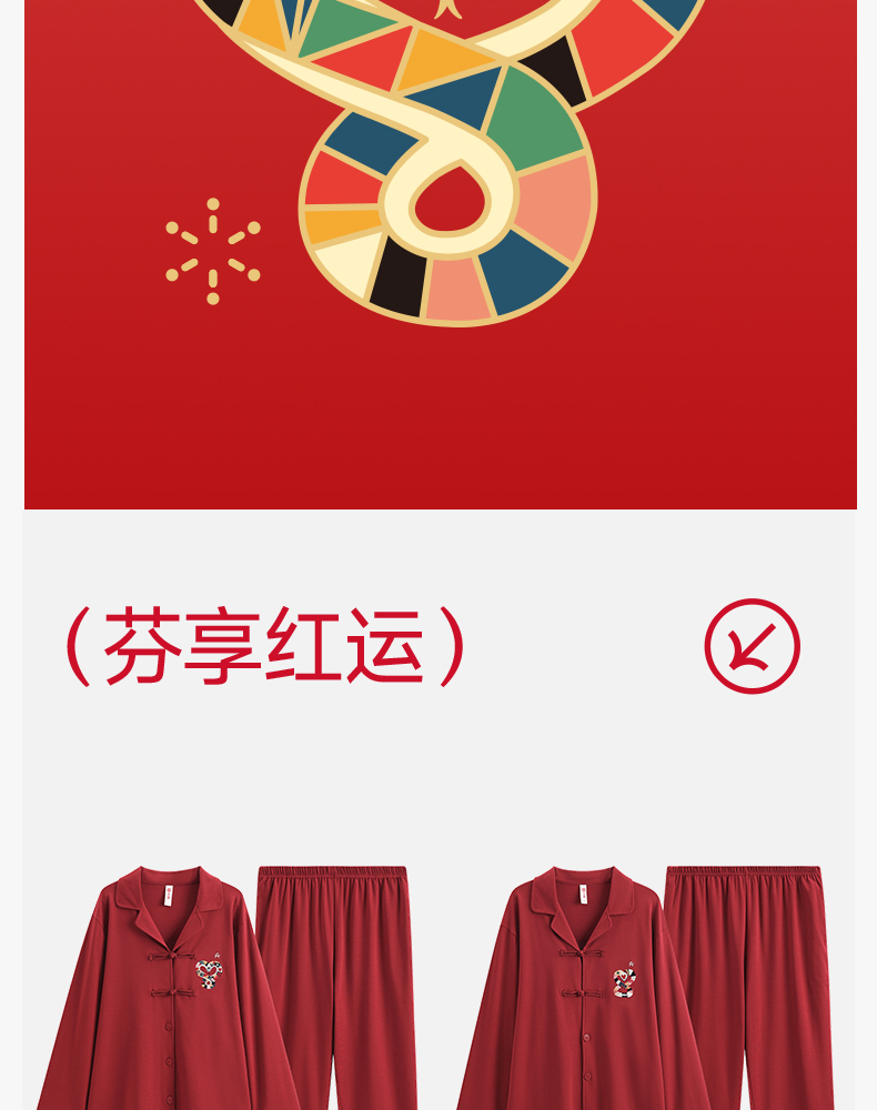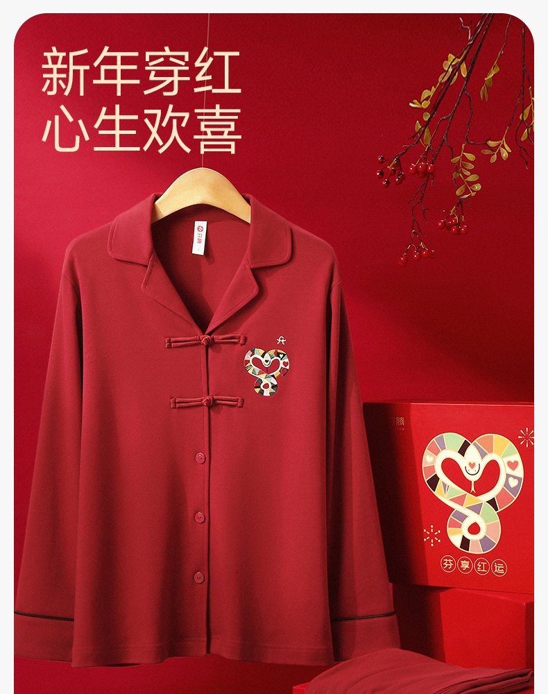 芬腾春秋季男女士纯棉长袖蛇年家居服套装 A-4142