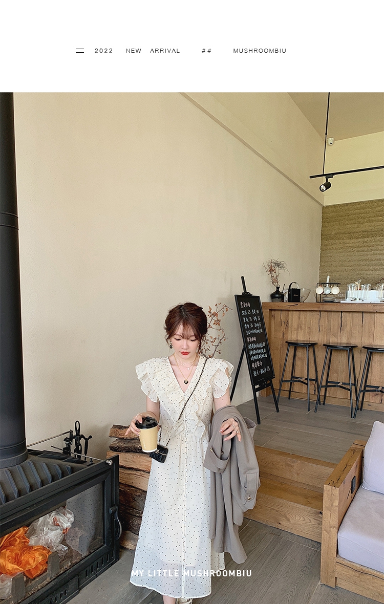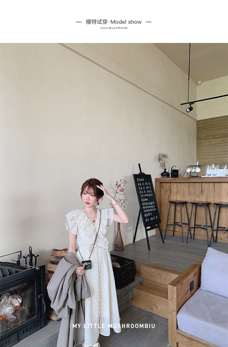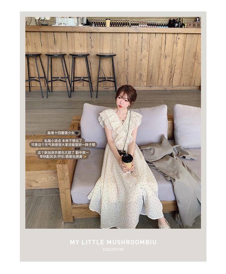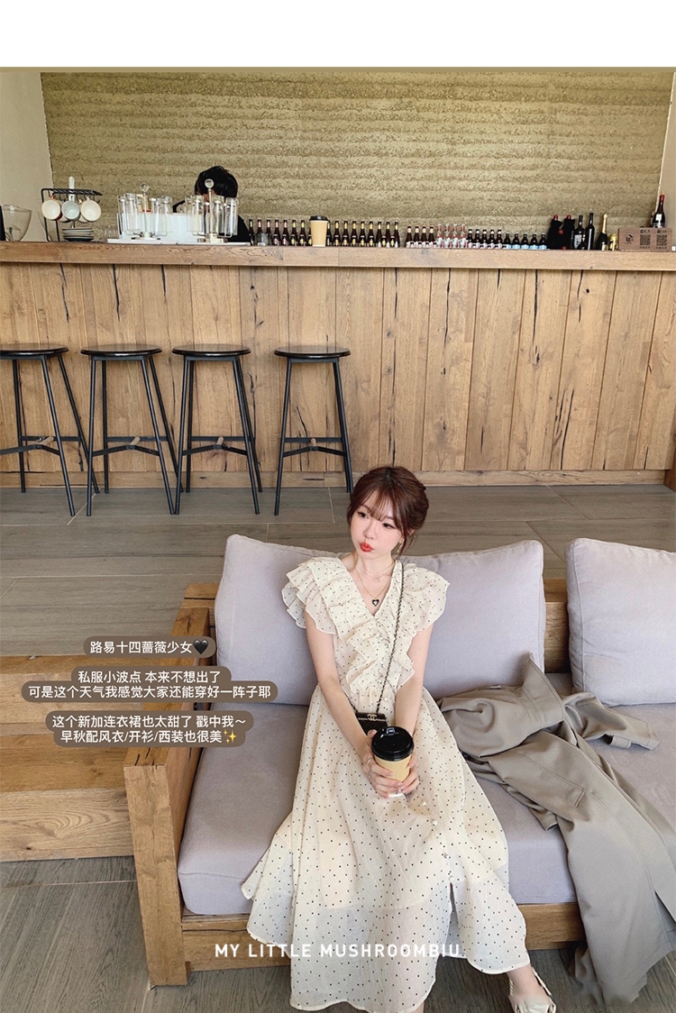 金蘑菇菇【路易十四蔷薇少女】温柔风荷叶领收腰波点出游连衣裙