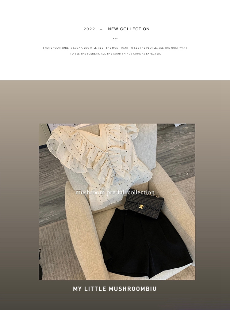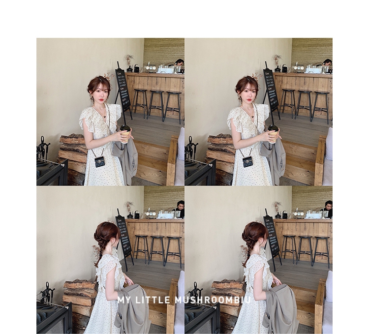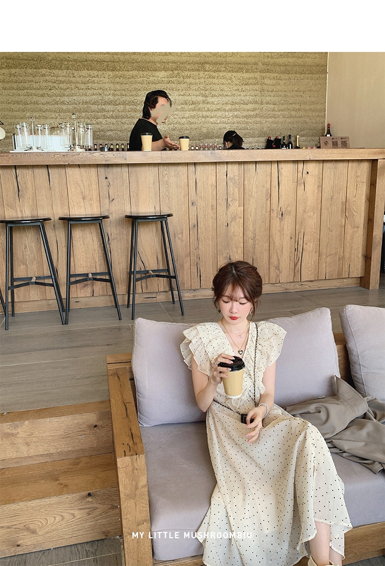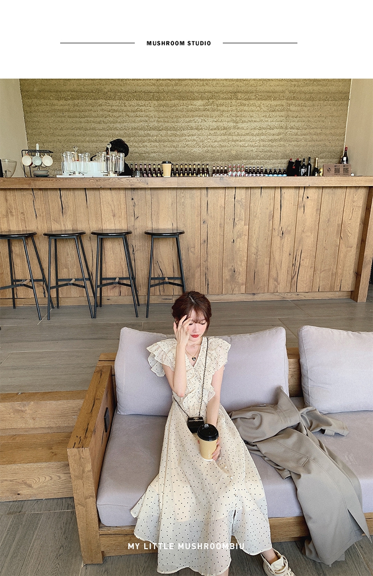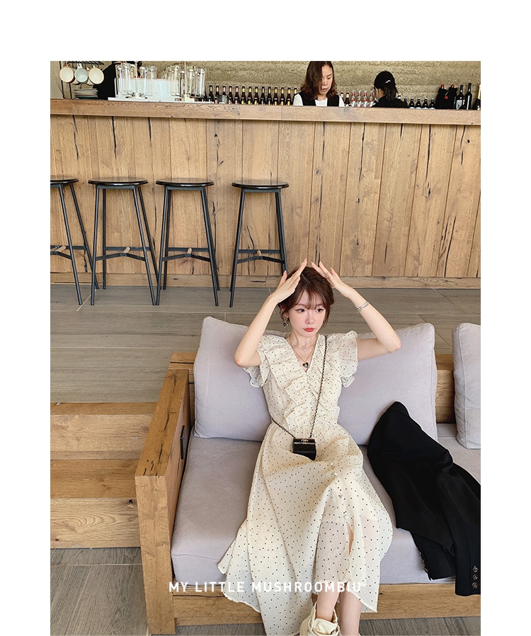 金蘑菇菇【路易十四蔷薇少女】温柔风荷叶领收腰波点出游连衣裙