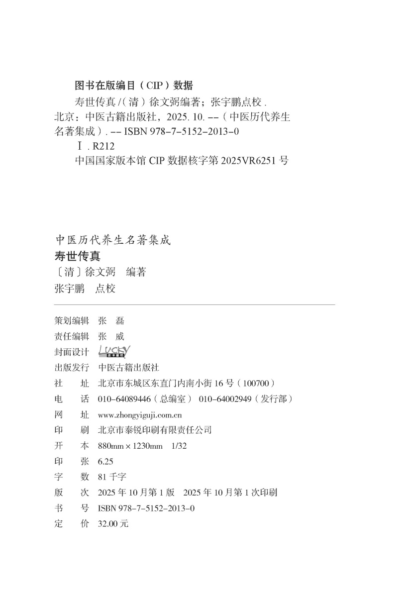 书名:寿世传真 中医历代养生名著集成