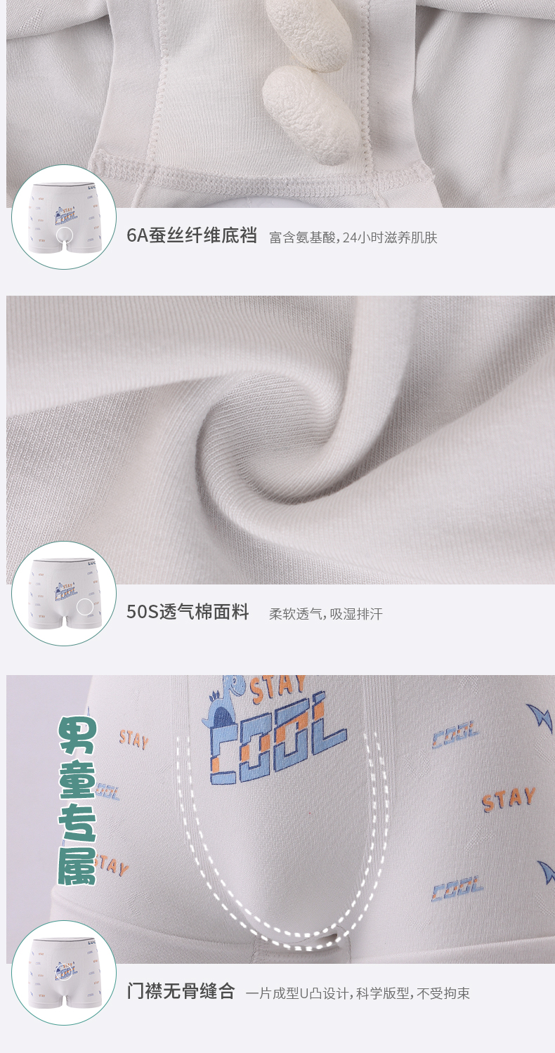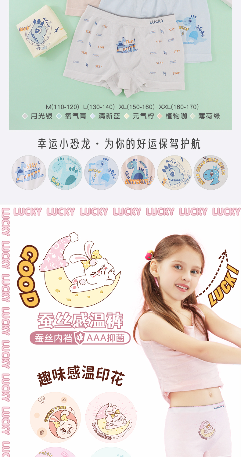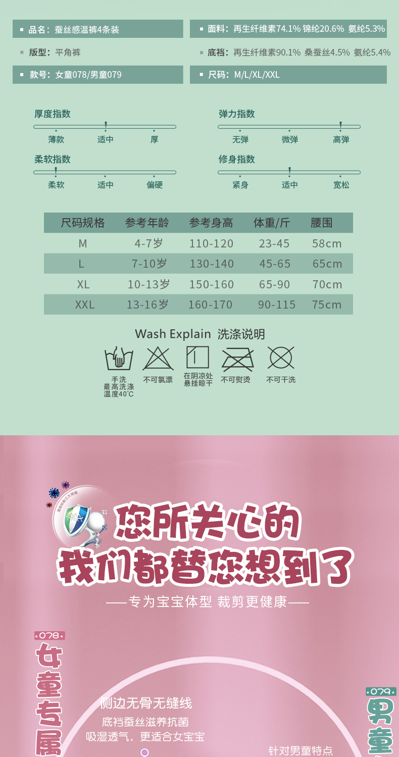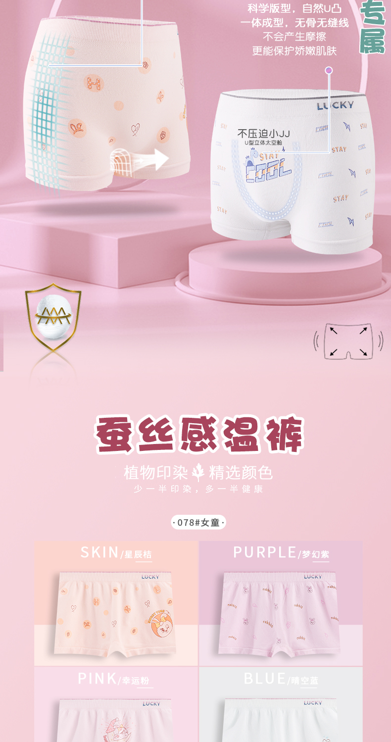 【草本初色】儿童蚕丝感温内裤蚕丝底档AAA级yi菌男童女童可选4条装店