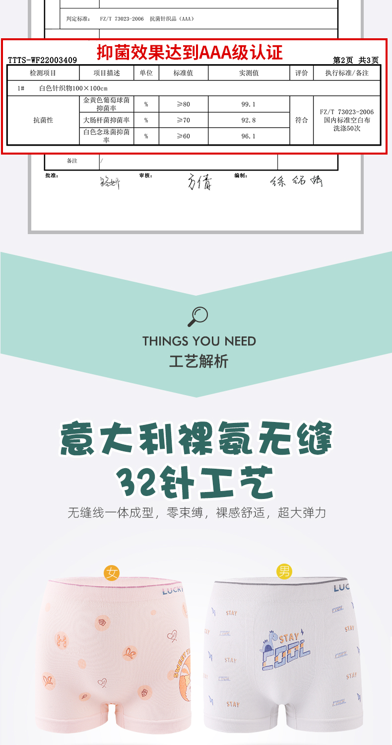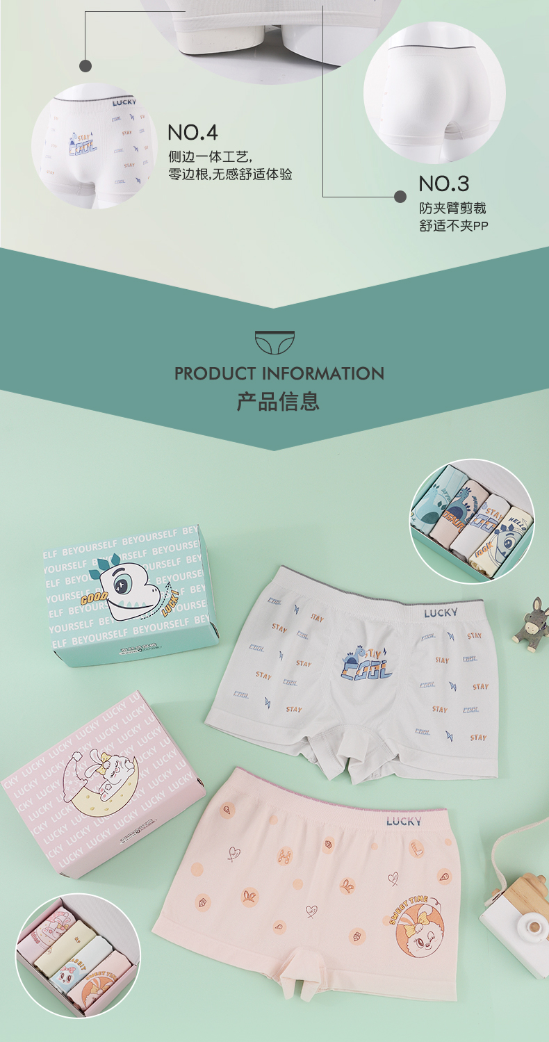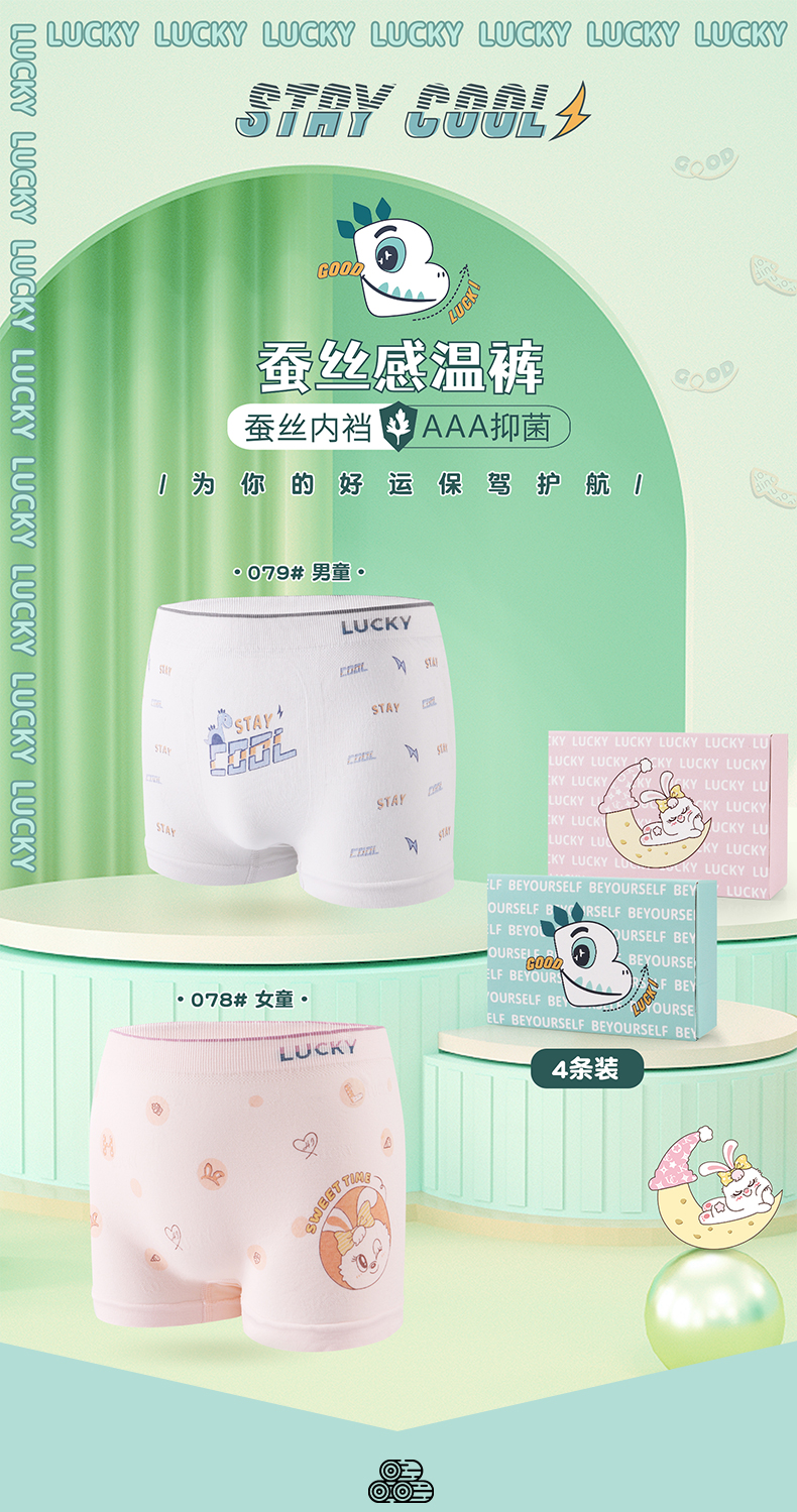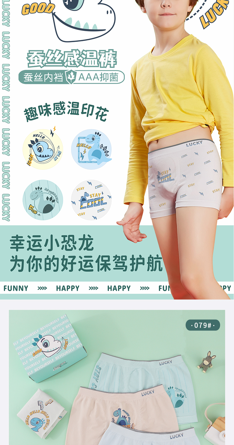 【草本初色】儿童蚕丝感温内裤蚕丝底档AAA级yi菌男童女童可选4条装店