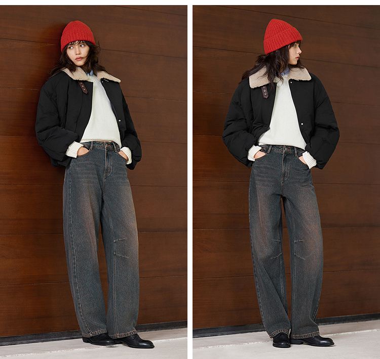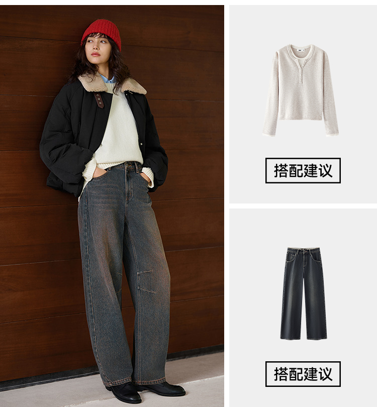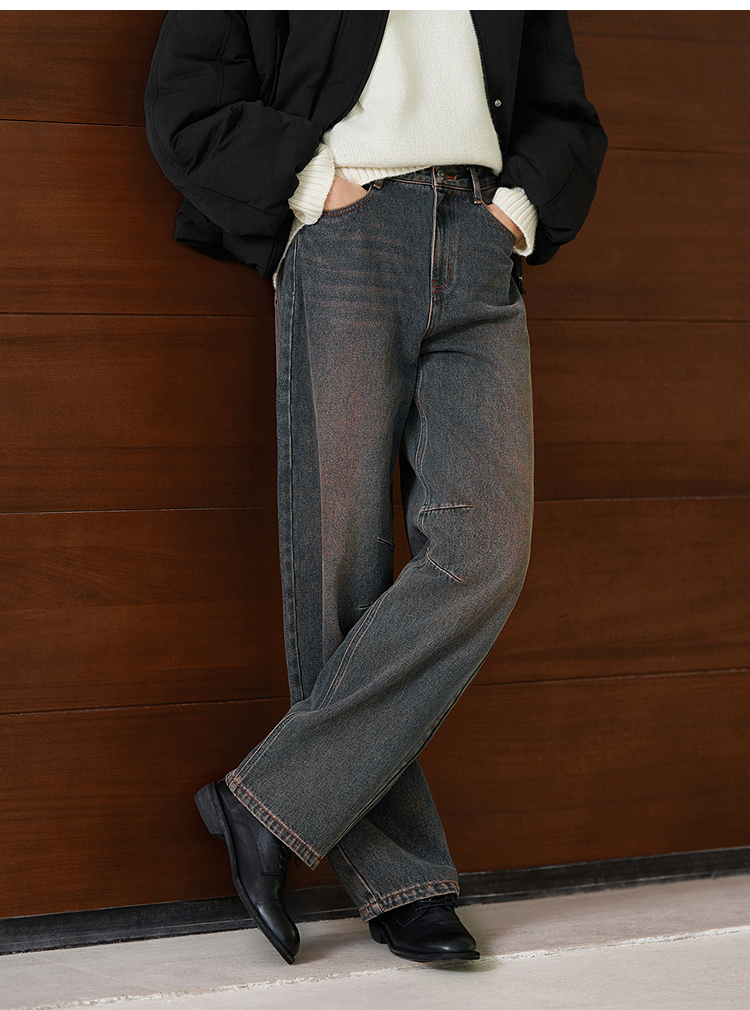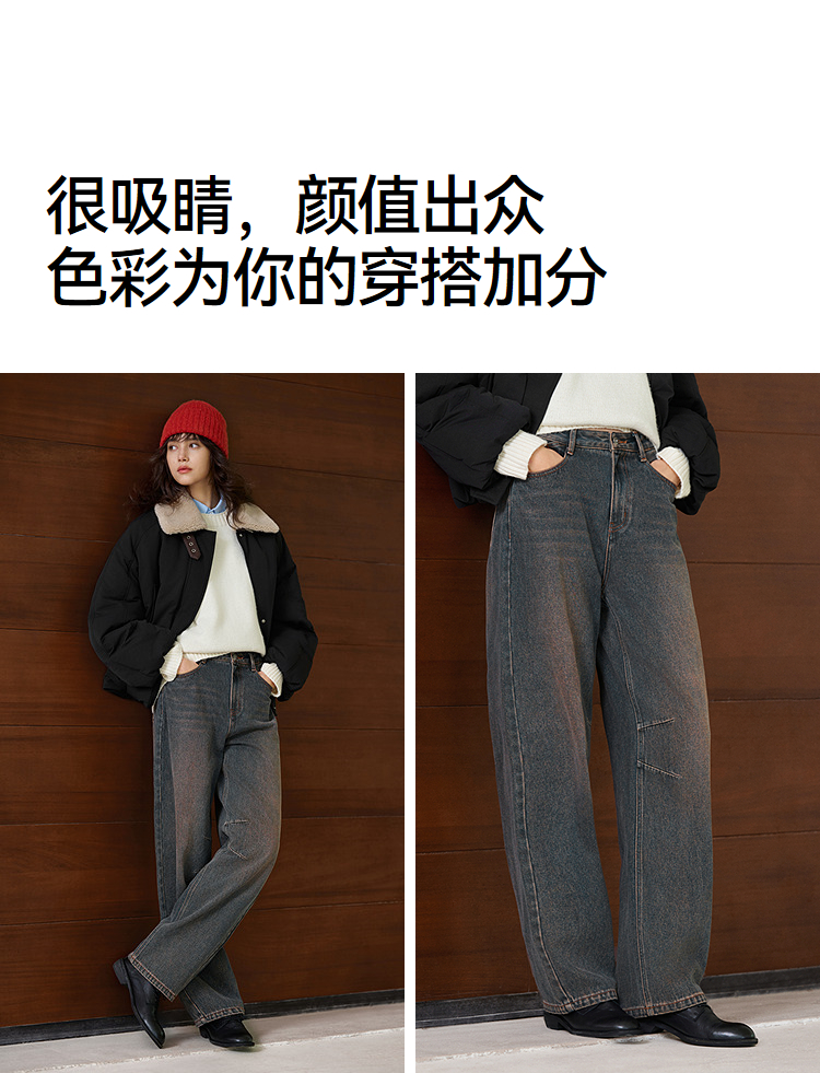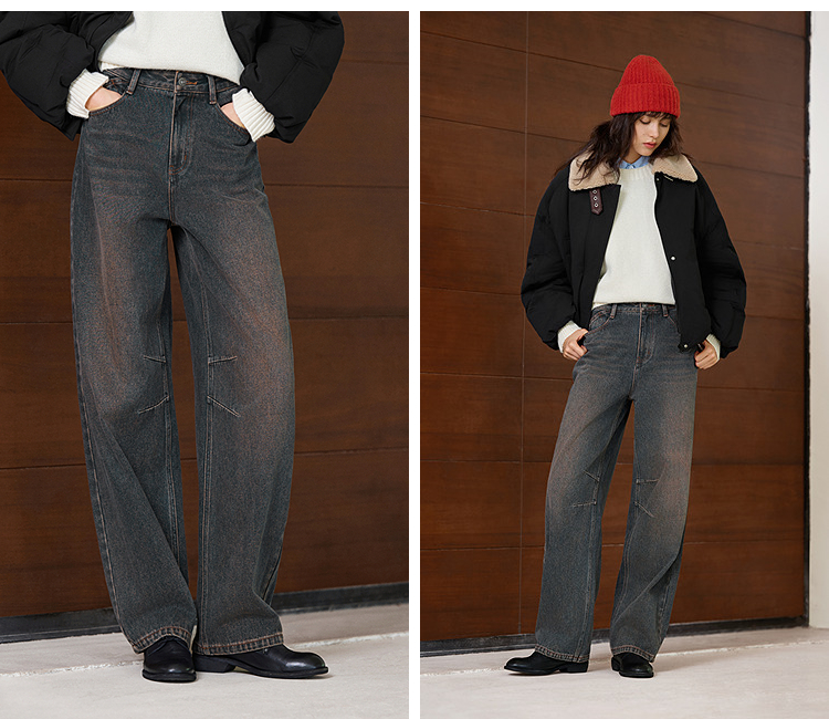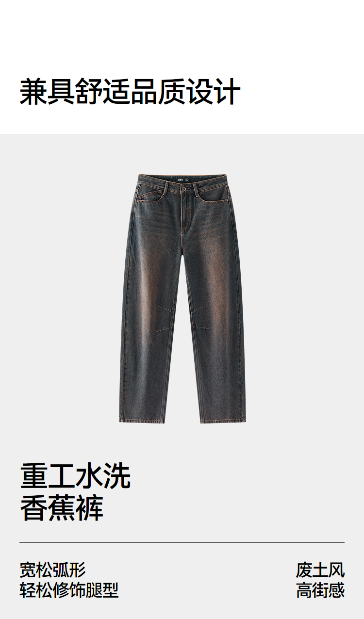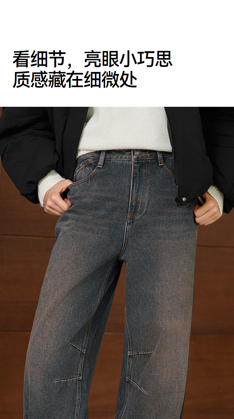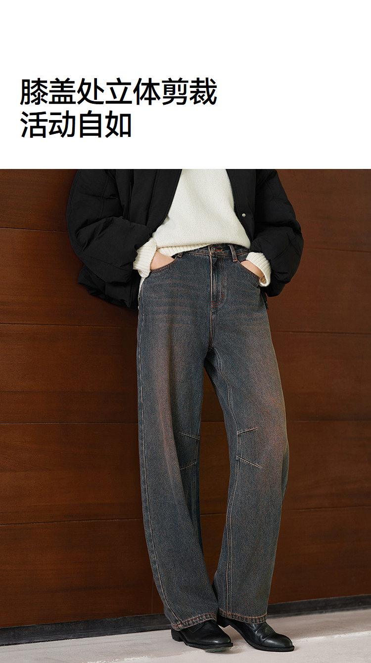 森马牛仔裤女做旧宽松香蕉裤高街潮酷2025冬新款亲肤弯刀裤废土风