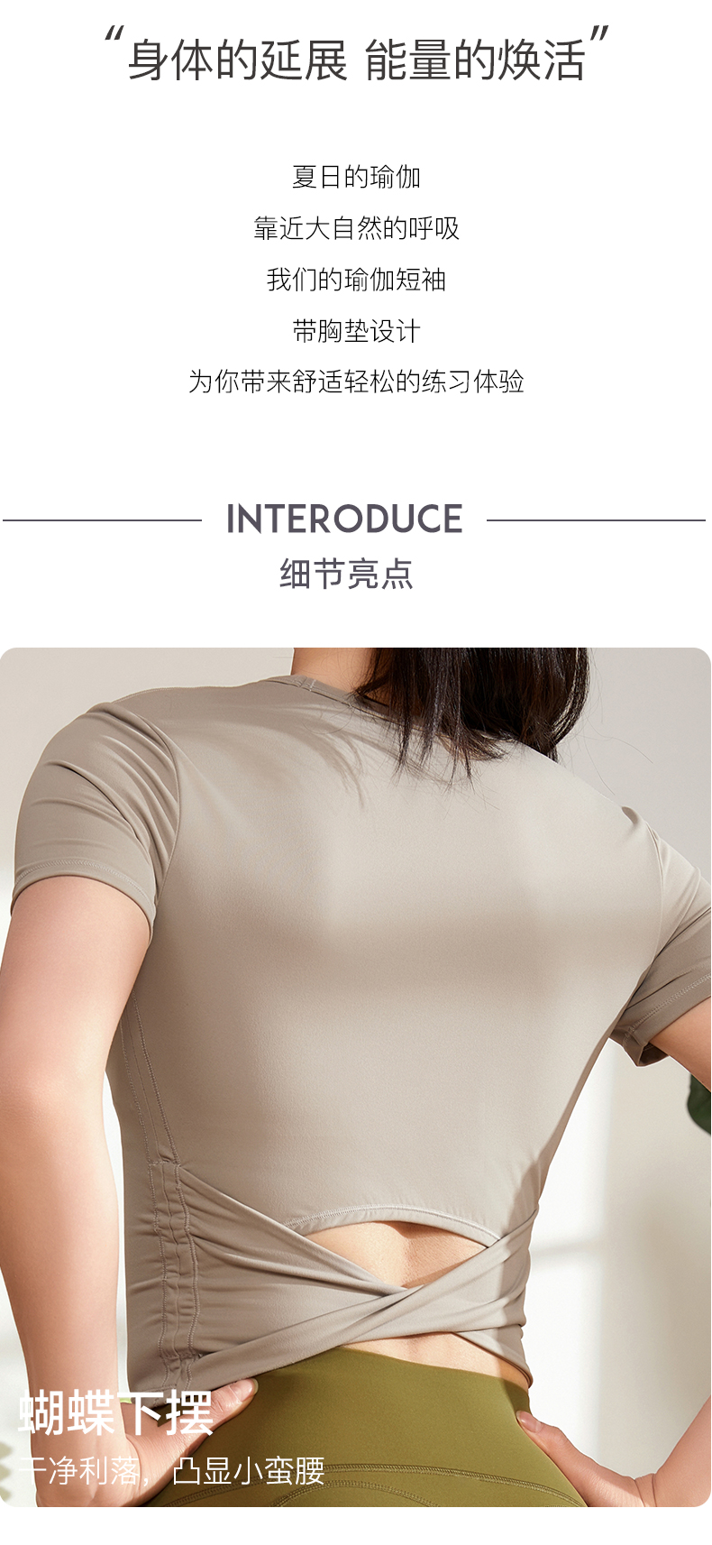 2025春夏SMOEDOD/水沐伊朵蝴蝶下摆修身显瘦瑜伽T恤可插胸垫柔软亲肤弹性透气50183