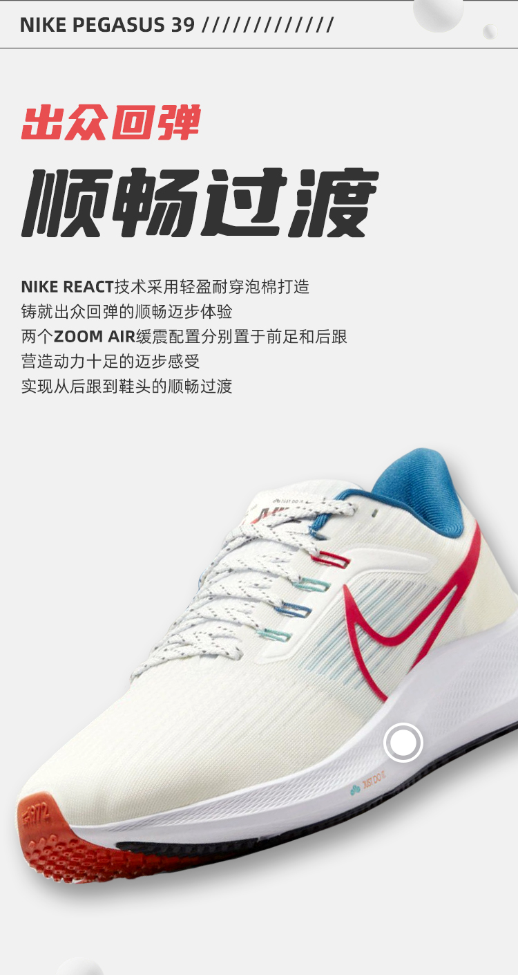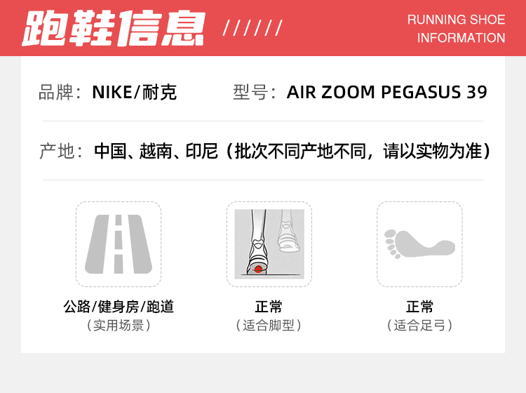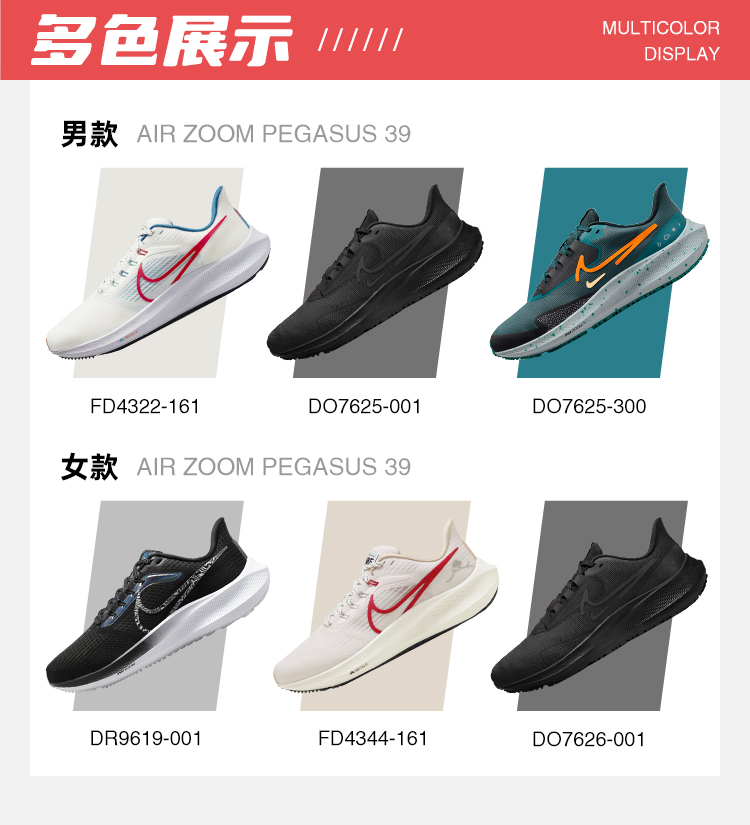 Nike耐克 AIR ZOOM PEGASUS飞马39 男女款公路缓震耐磨平稳跑步鞋