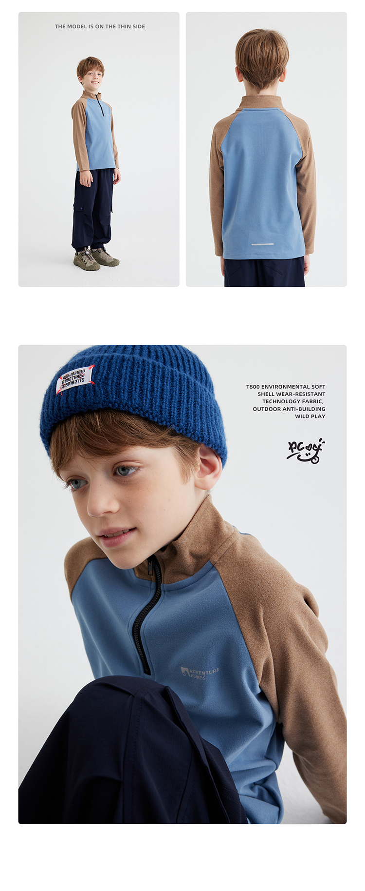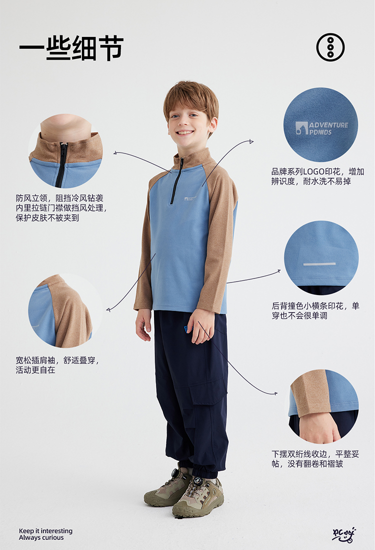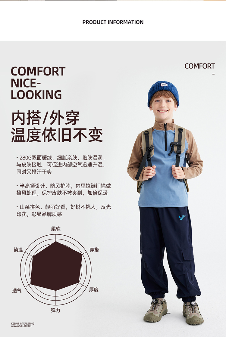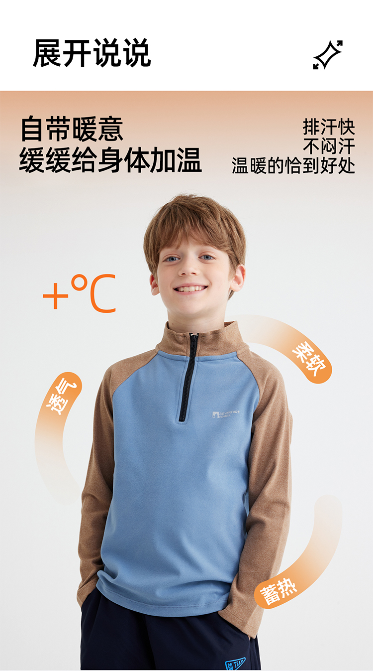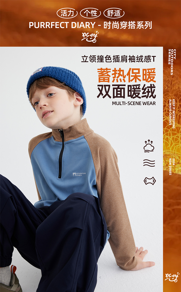 【双面暖绒 恒温指数1000+】儿童立领插肩袖T恤 PQTX2413
