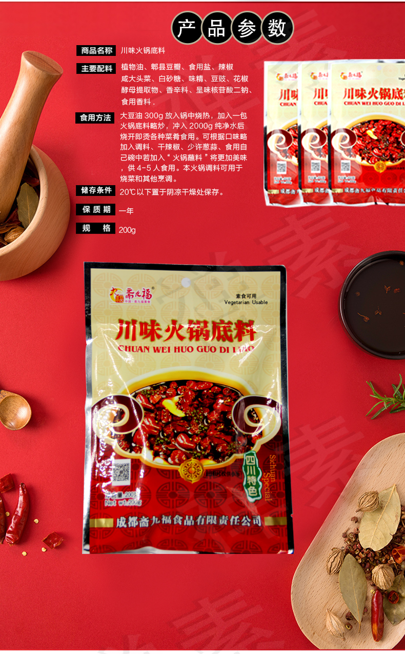 斋九福川味火锅底料纯素火锅底料麻辣烫素干锅素食火锅料