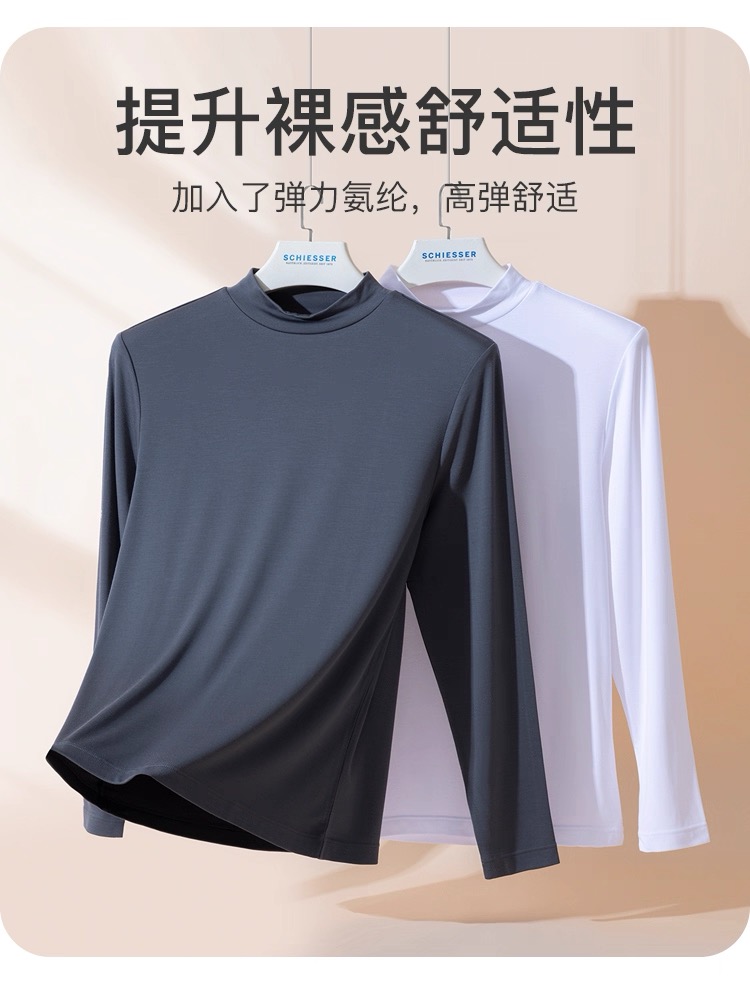 【零碳莫代尔】SCHIESSER德国舒雅男士零碳莫代尔内里轻磨毛半高领保暖单件打底衫保暖35/25912Q