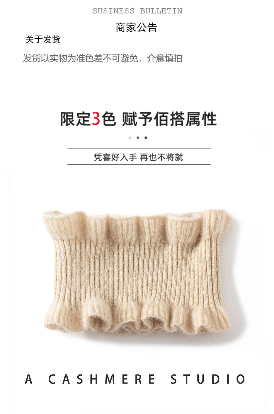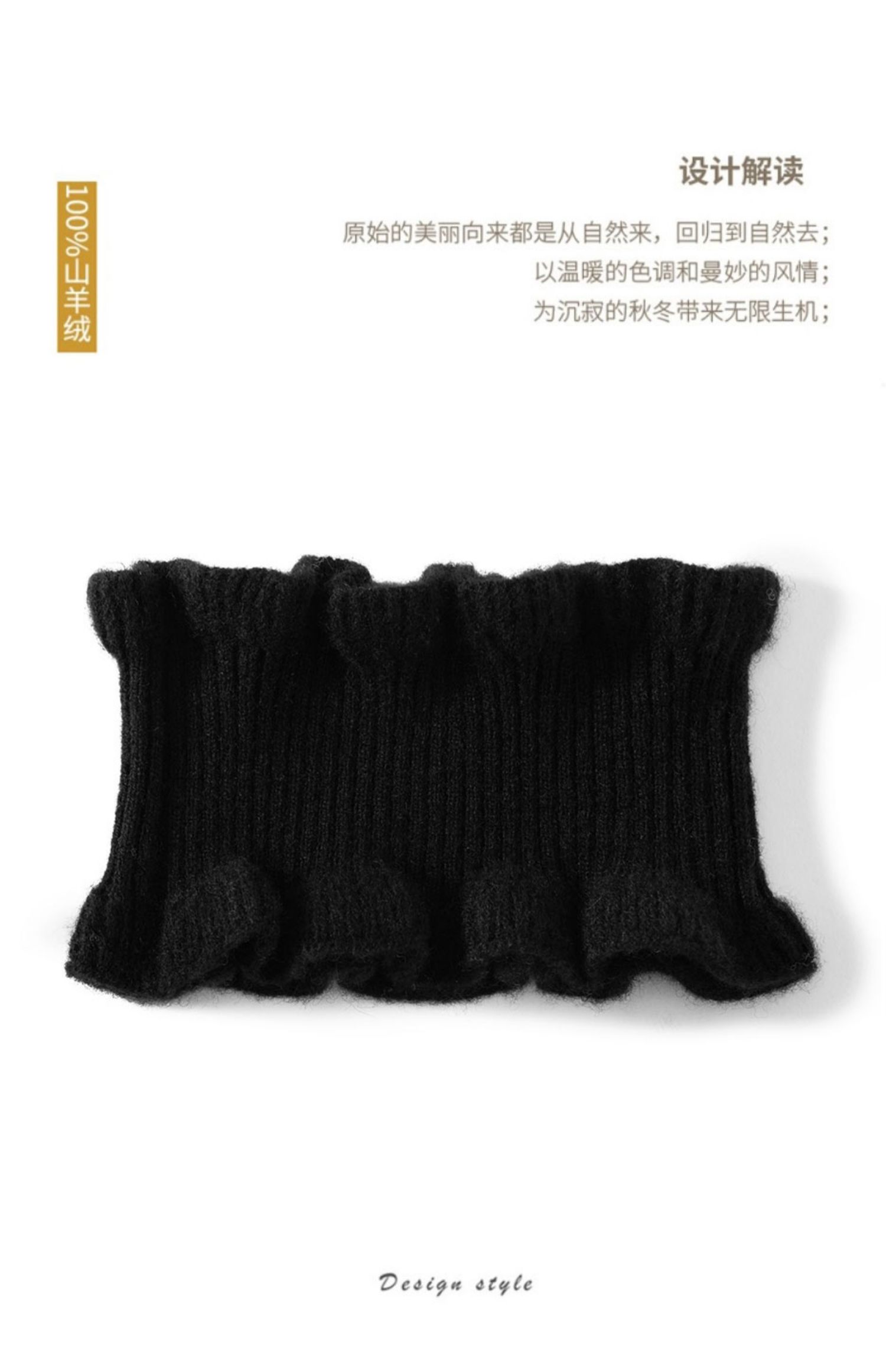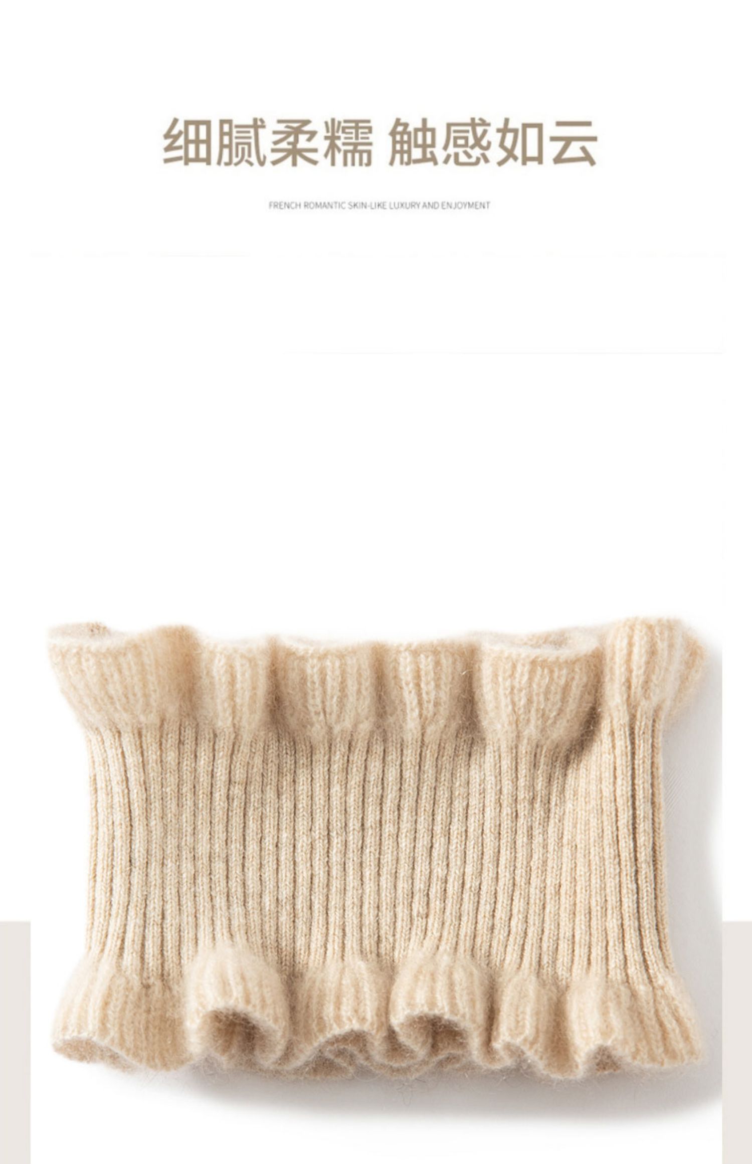 25新款荷叶边100%纯山羊绒脖套/发套 女士秋冬加厚抽条百搭日系保暖 3050