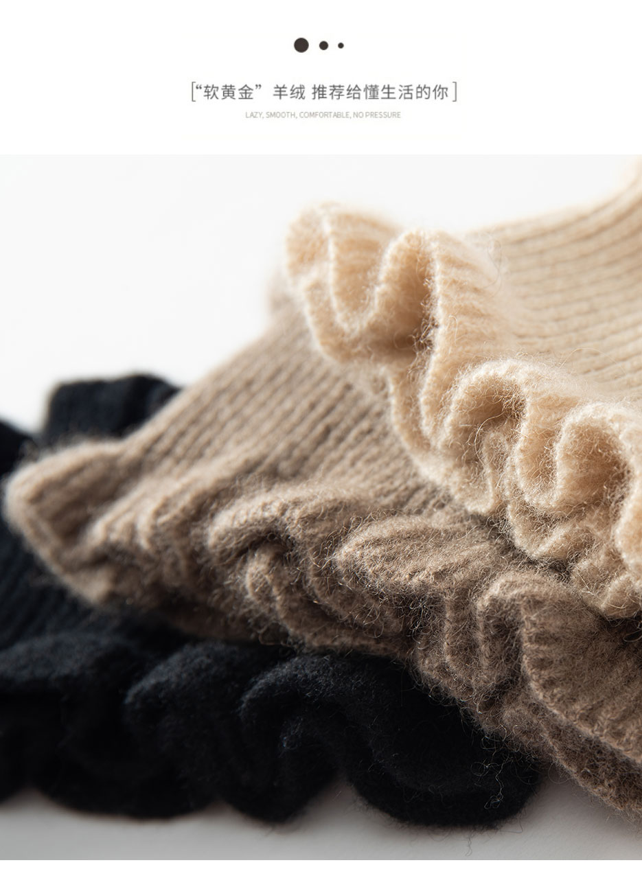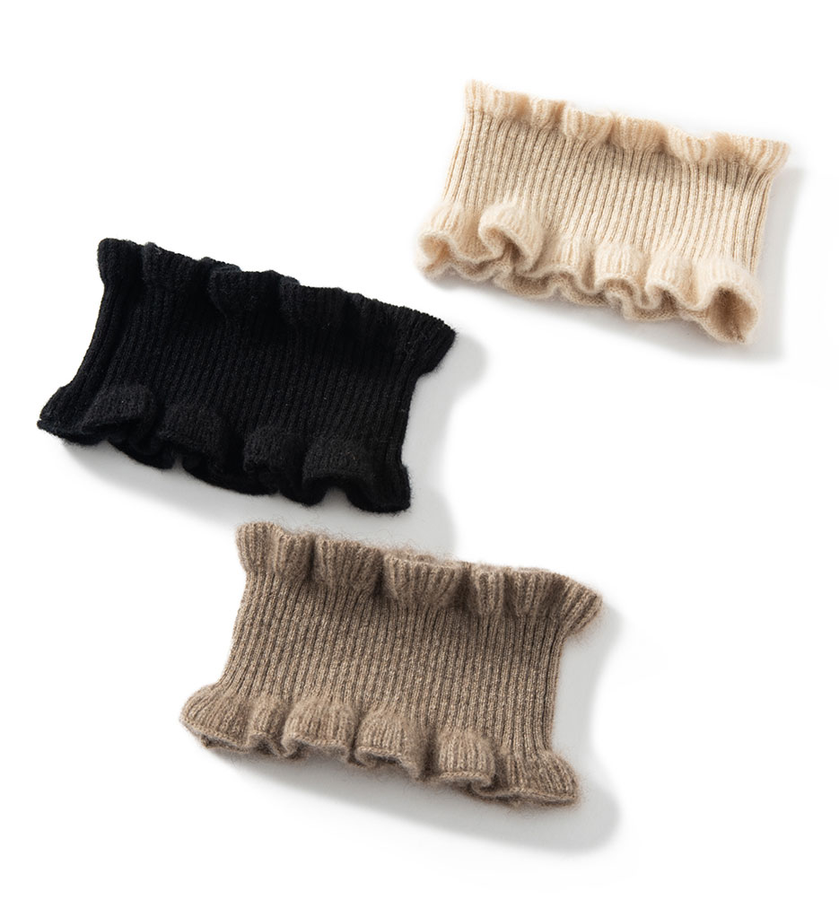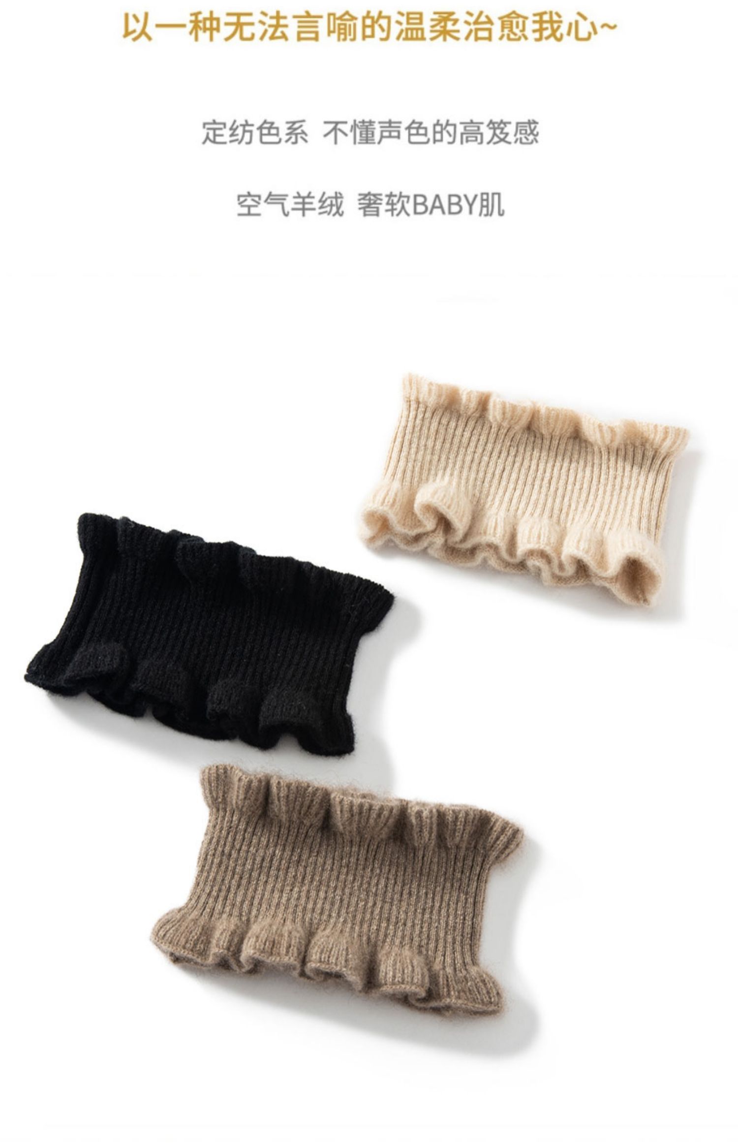 25新款荷叶边100%纯山羊绒脖套/发套 女士秋冬加厚抽条百搭日系保暖 3050