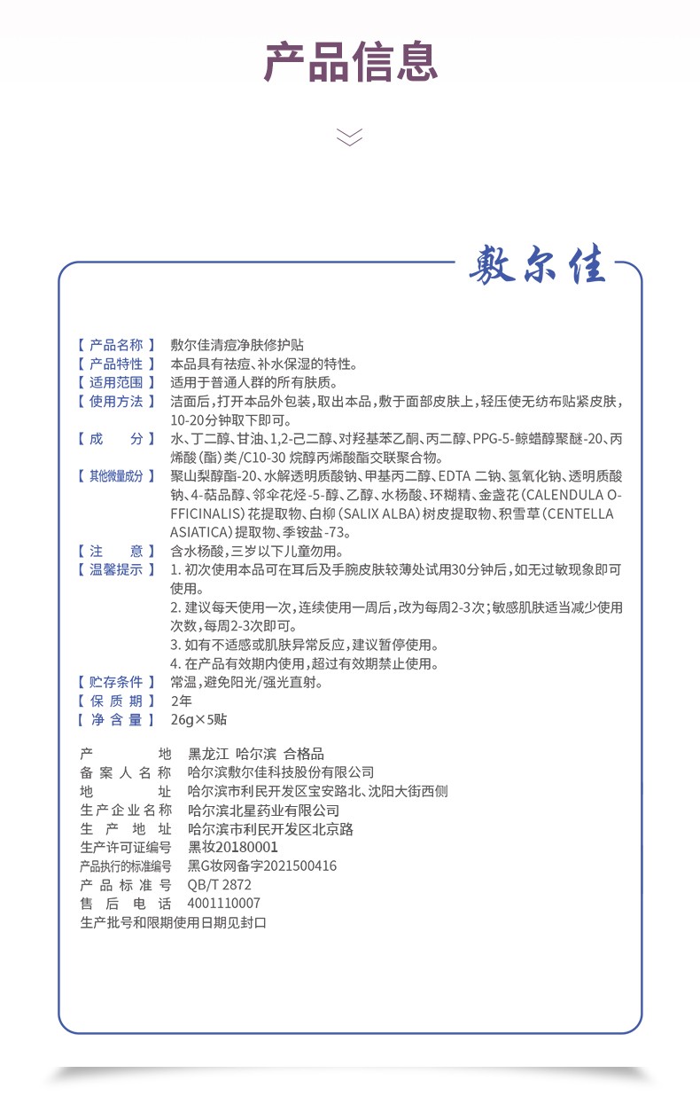 VOOLGA/敷尔佳 清痘净肤修护贴25g*5片