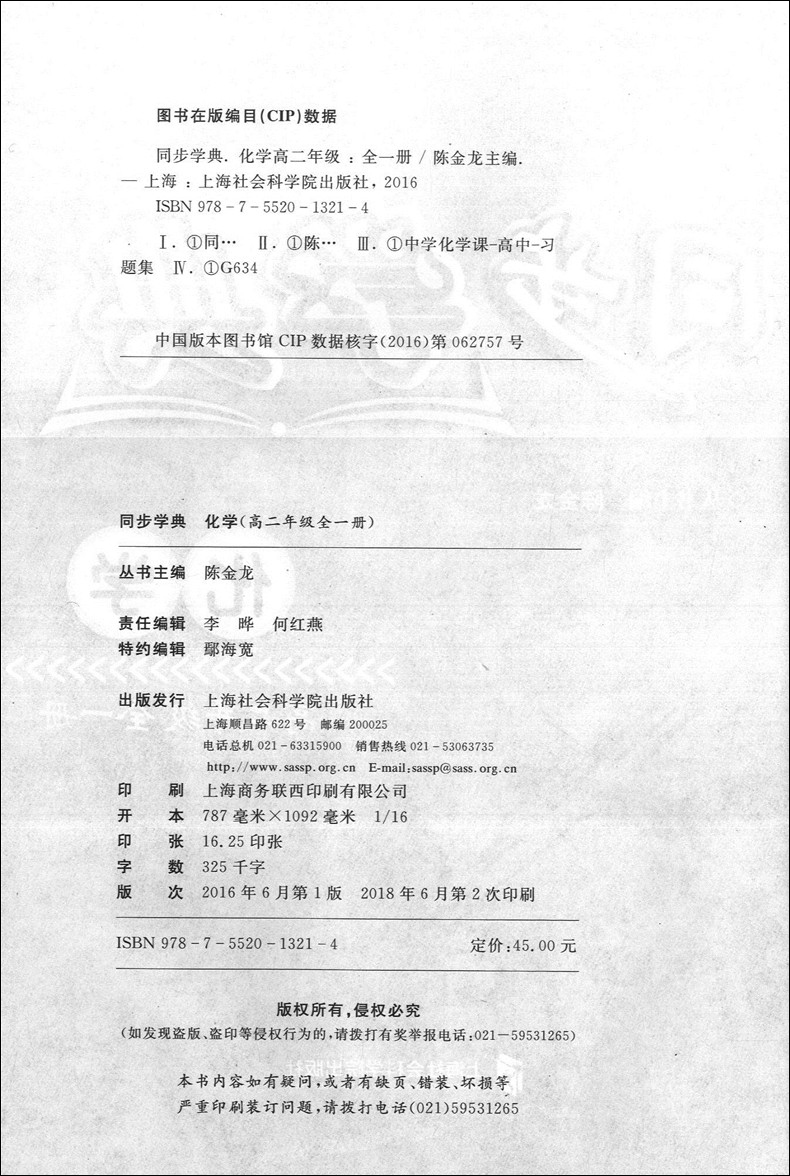 新版 同步学典 化学 高2年级/高二年级全一册 与教学完全同步 与考纲逐步接轨 沪教版 上海社会科学院出版社