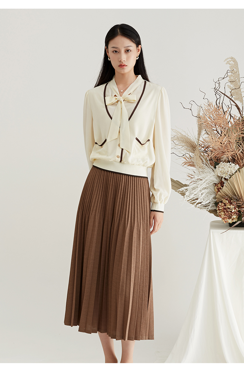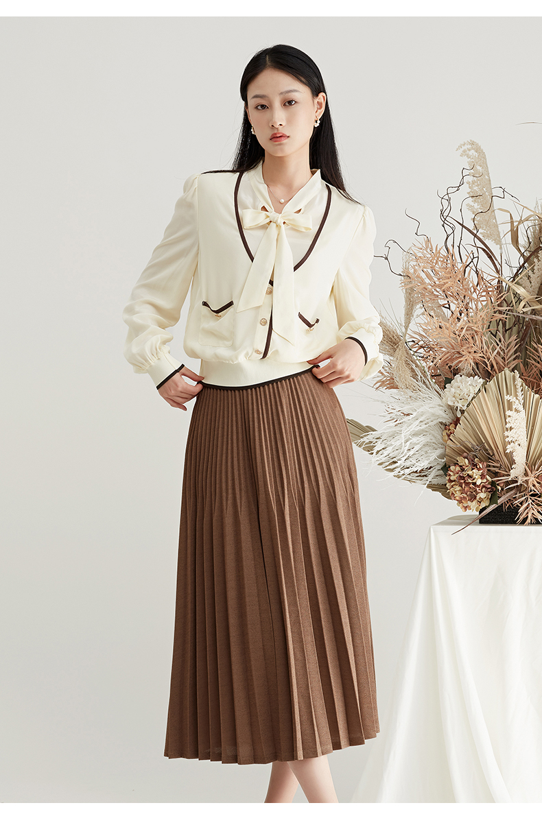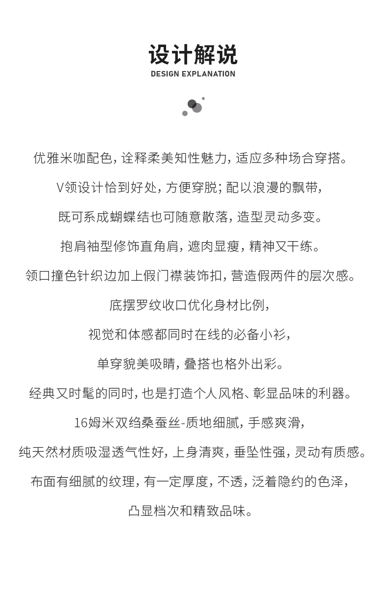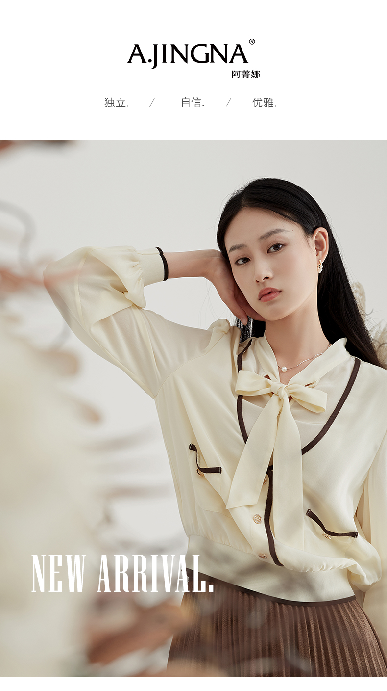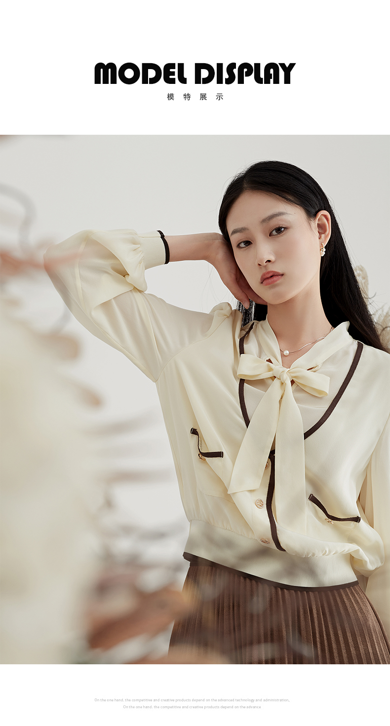 【积分兑换 微瑕款】阿菁娜优雅飘带领撞色法式气质桑蚕丝上衣A27Q202002