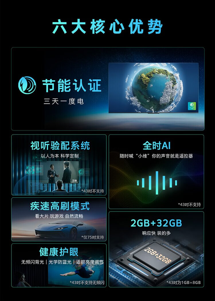 【电视机特购活动】创维电视 85英寸G3D 4K 智能投屏 2+32G