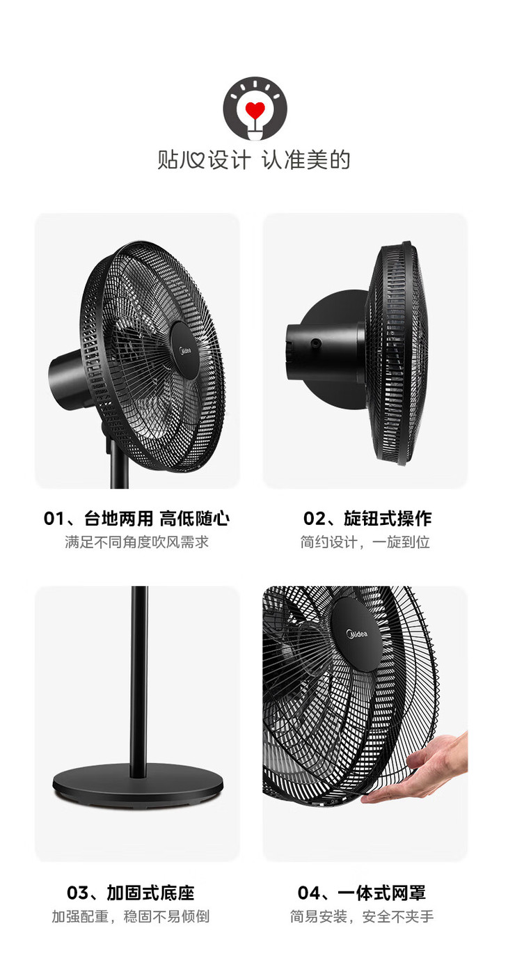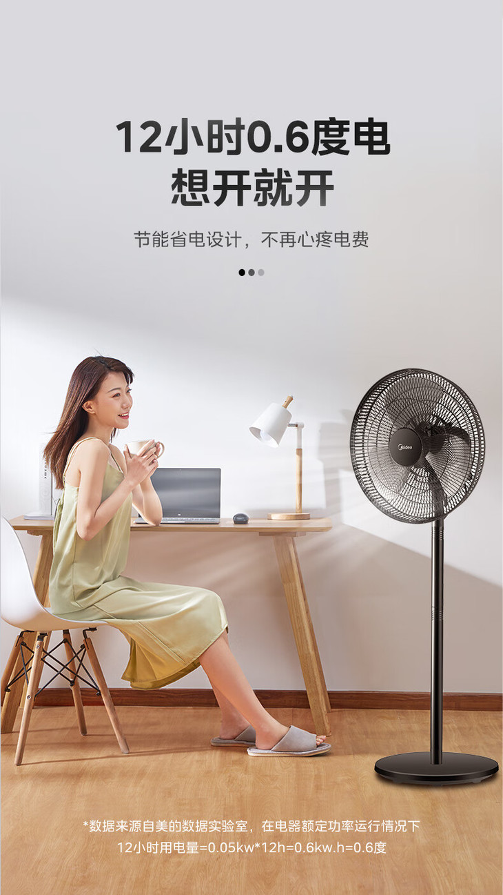 美的(Midea)(510106 )落地电风扇FSA40UC机械式强风轻音16寸台立两用3档风速可调大角度左右送风