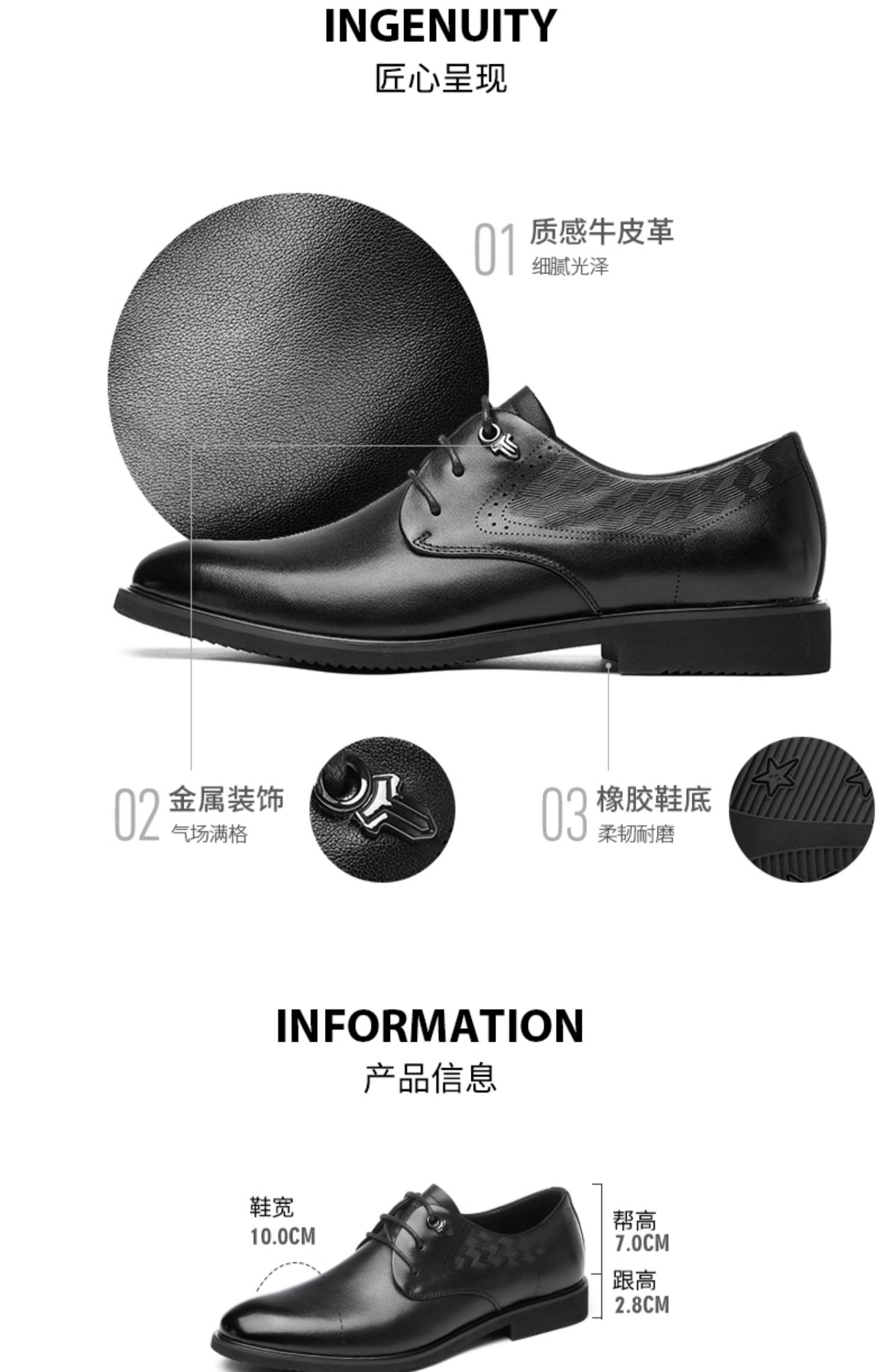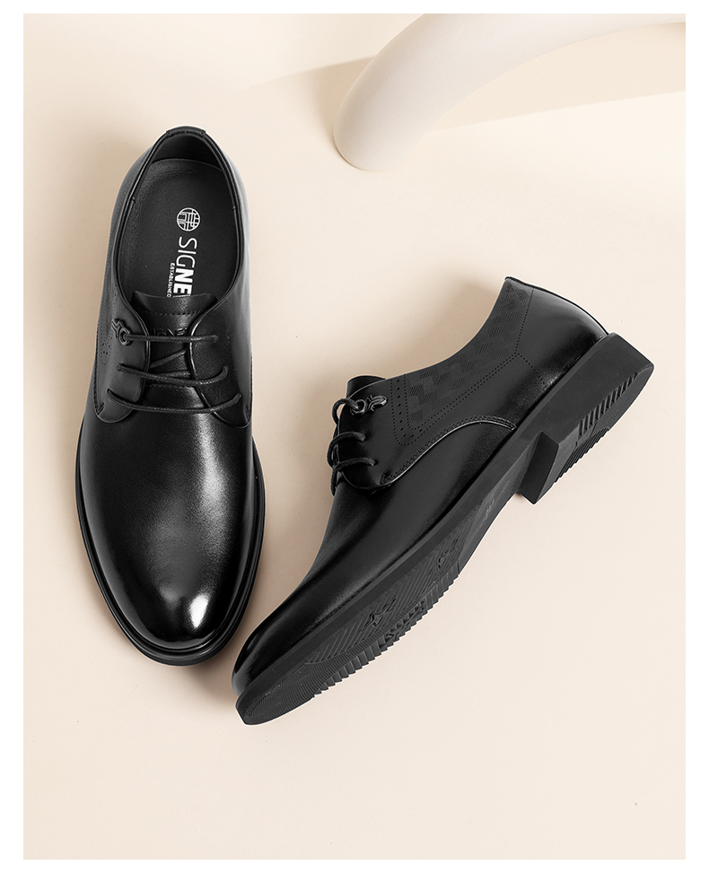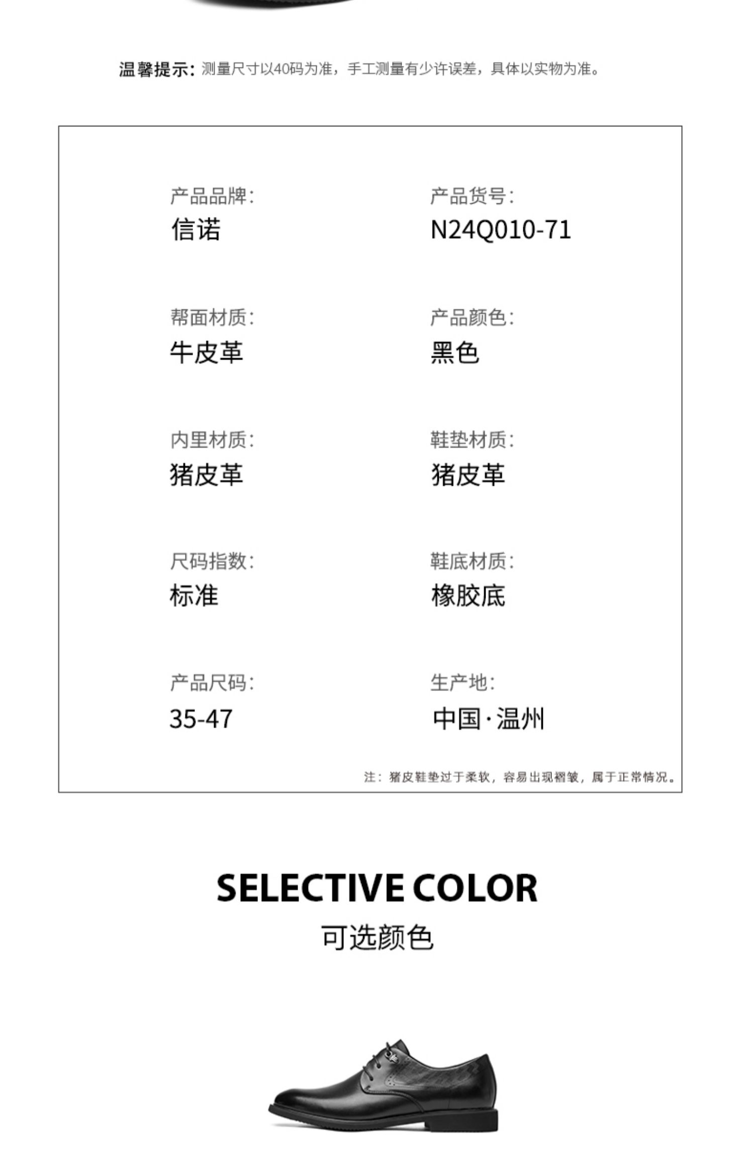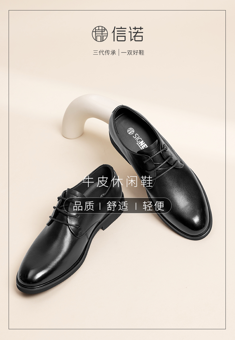 信诺真皮男士特小码皮鞋2024新款春秋商务休闲鞋中年爸爸鞋特大码N24Q010-71