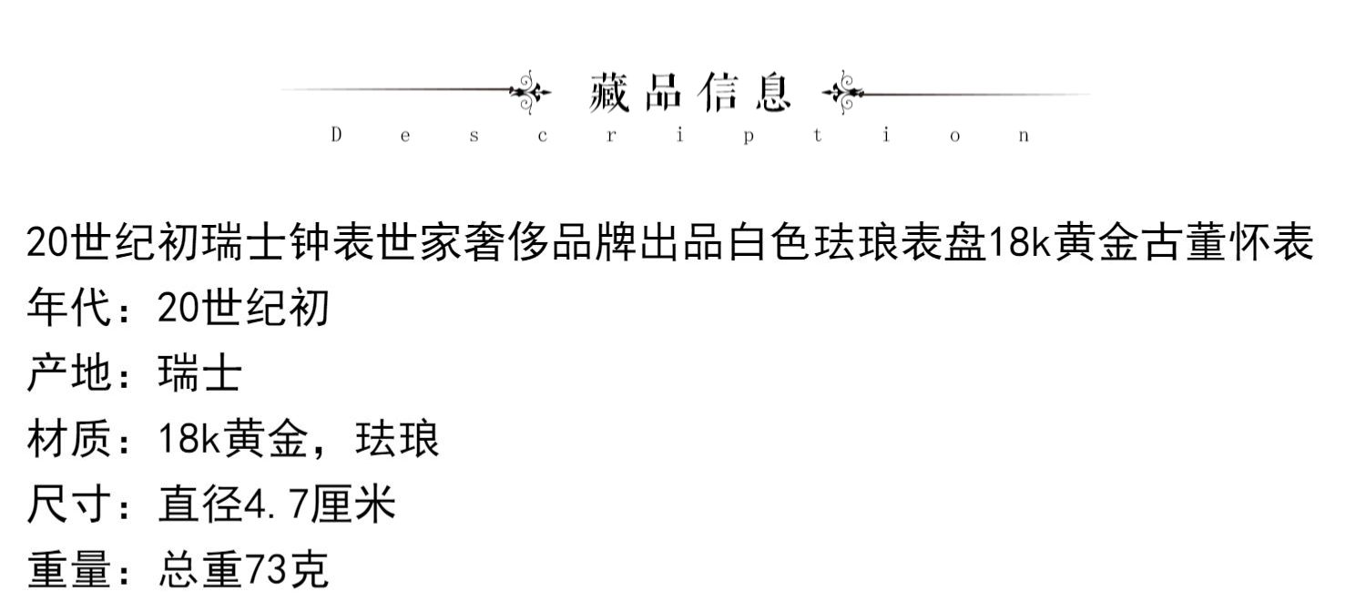独角鹿西洋古董瑞士钟表世家奢侈品牌白色珐琅表盘18k黄金怀表