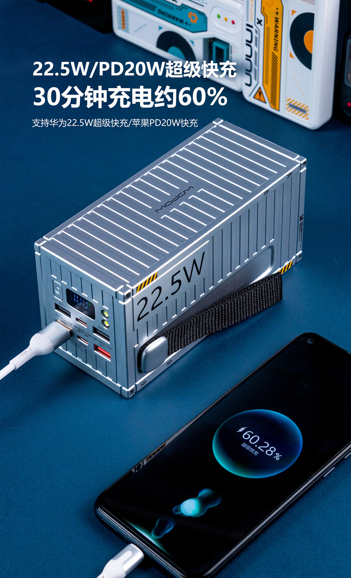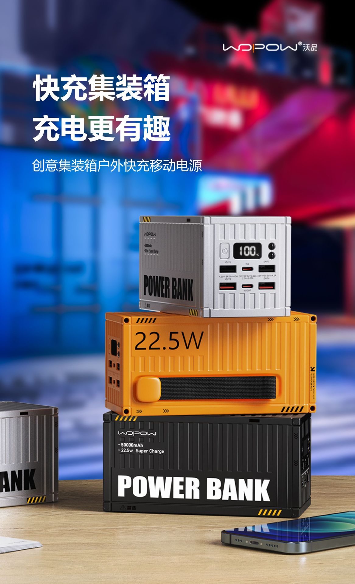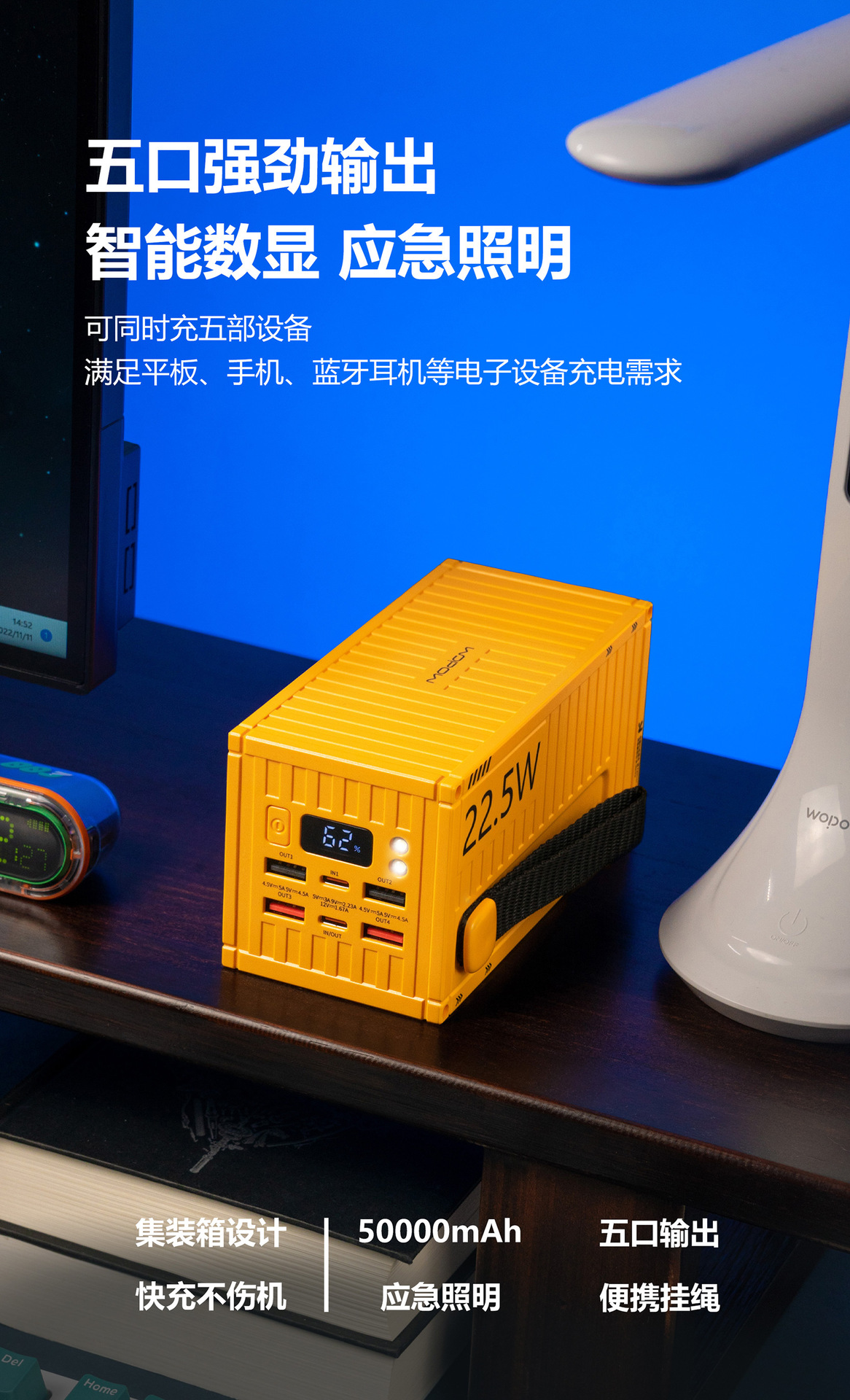 沃品集装箱超级快充50000毫安|充电宝大容量户外露营桌面数显移动电源