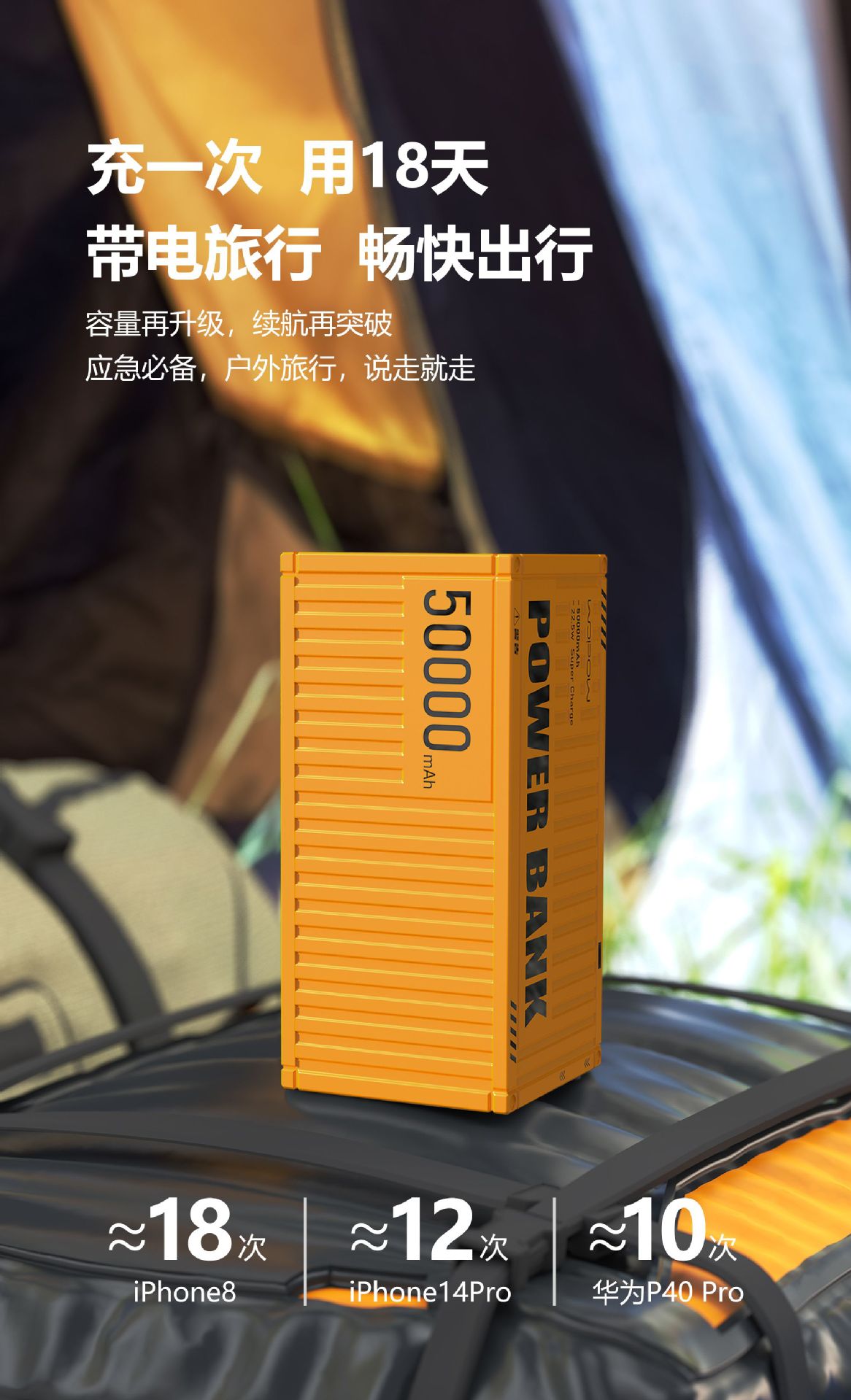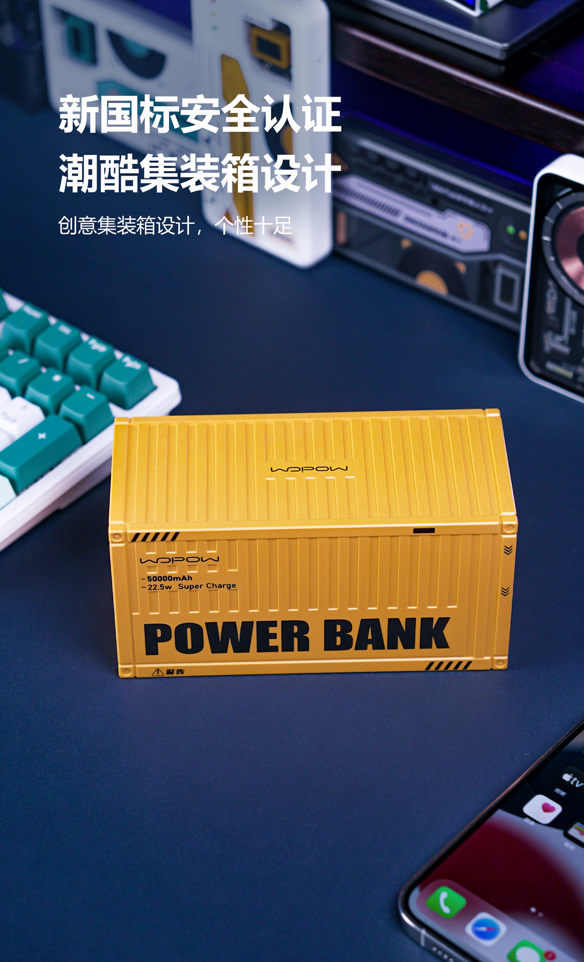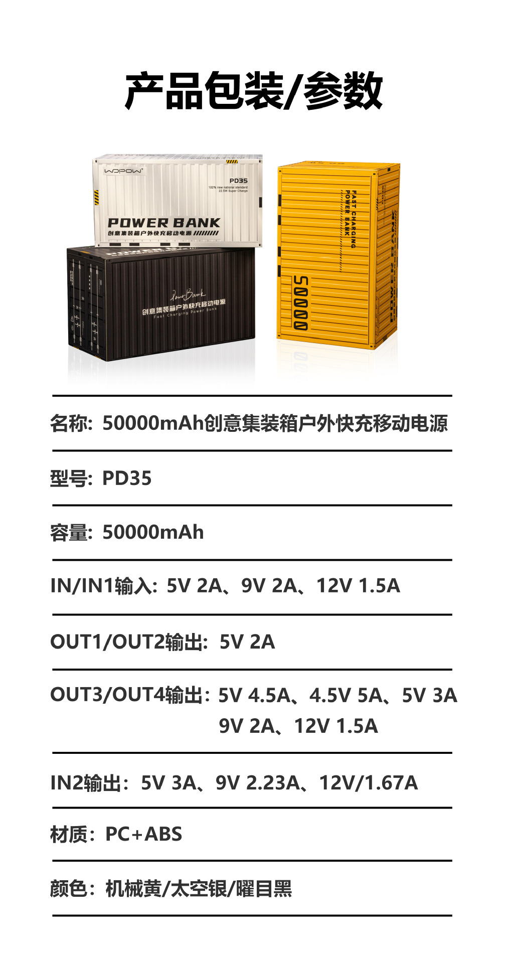 沃品集装箱超级快充50000毫安|充电宝大容量户外露营桌面数显移动电源
