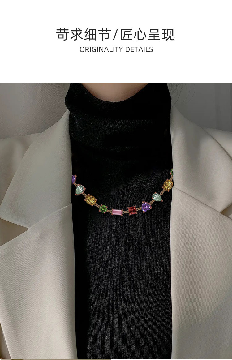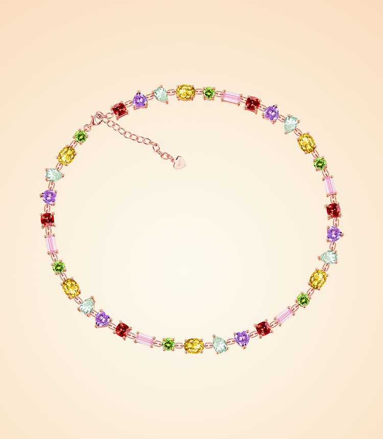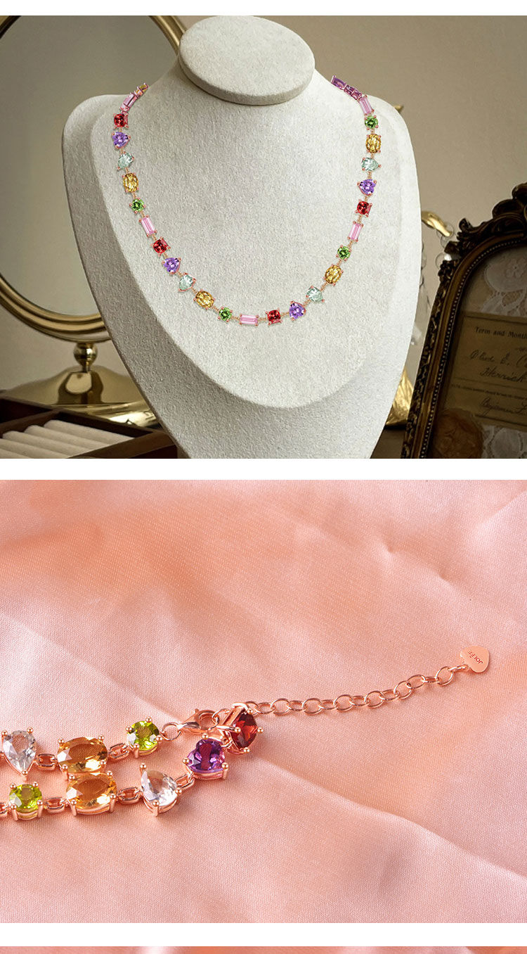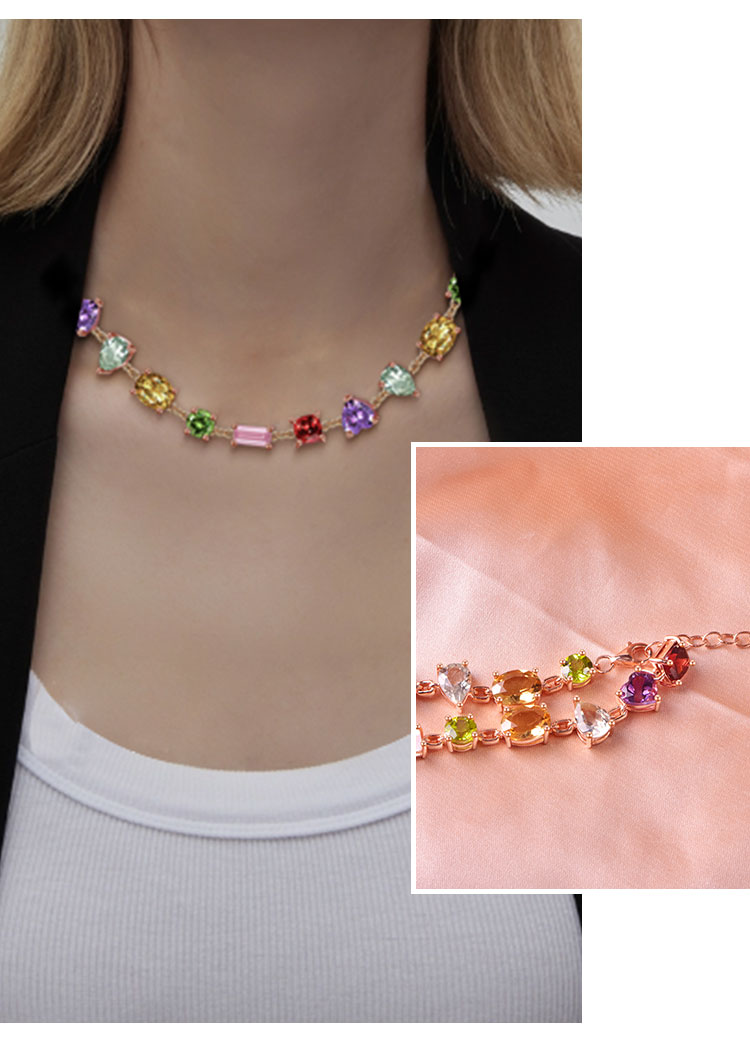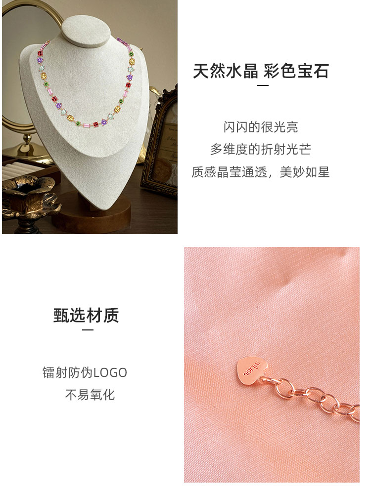 【彩色宝石项链】S925银项链女天然水晶彩色宝石饰品JN29051