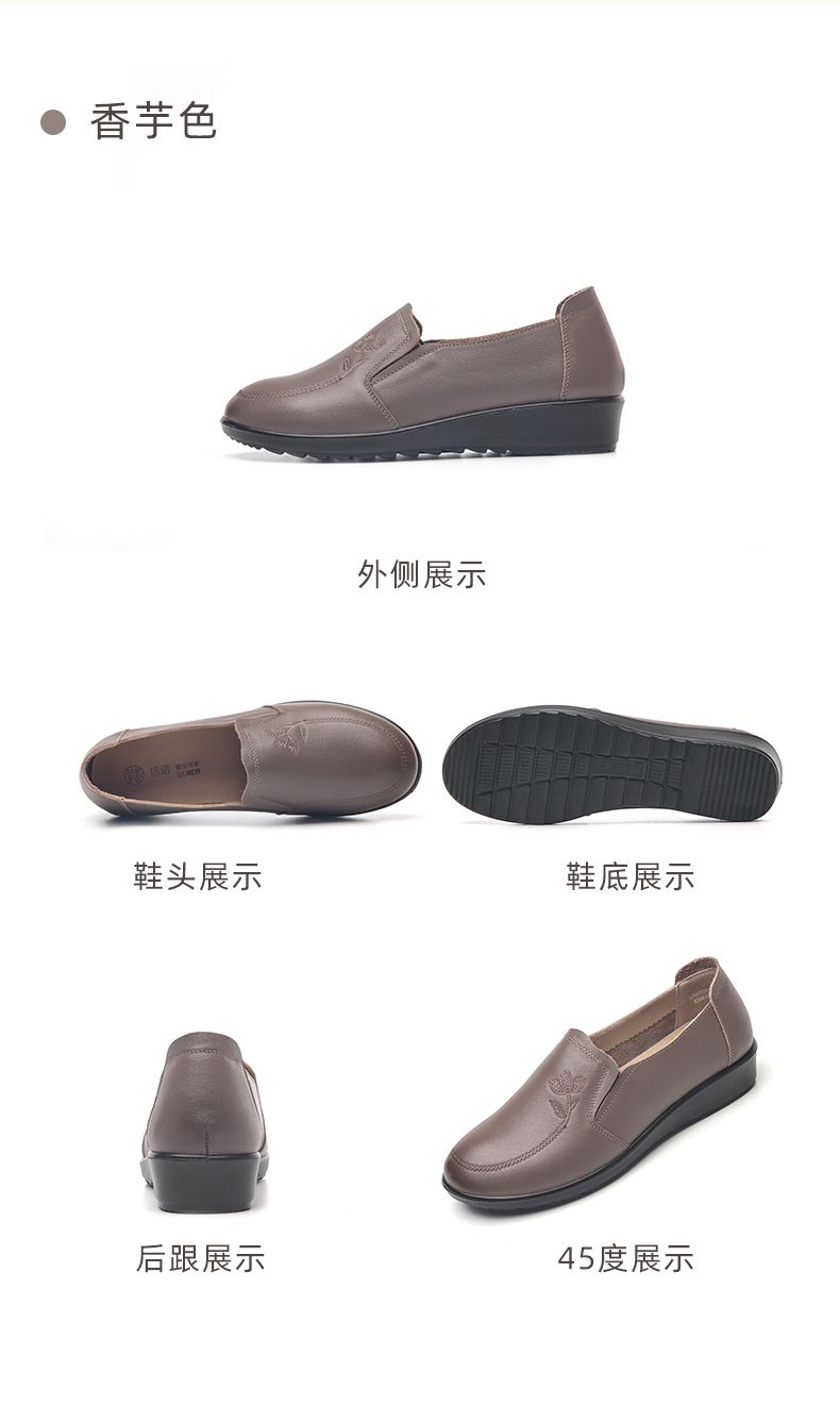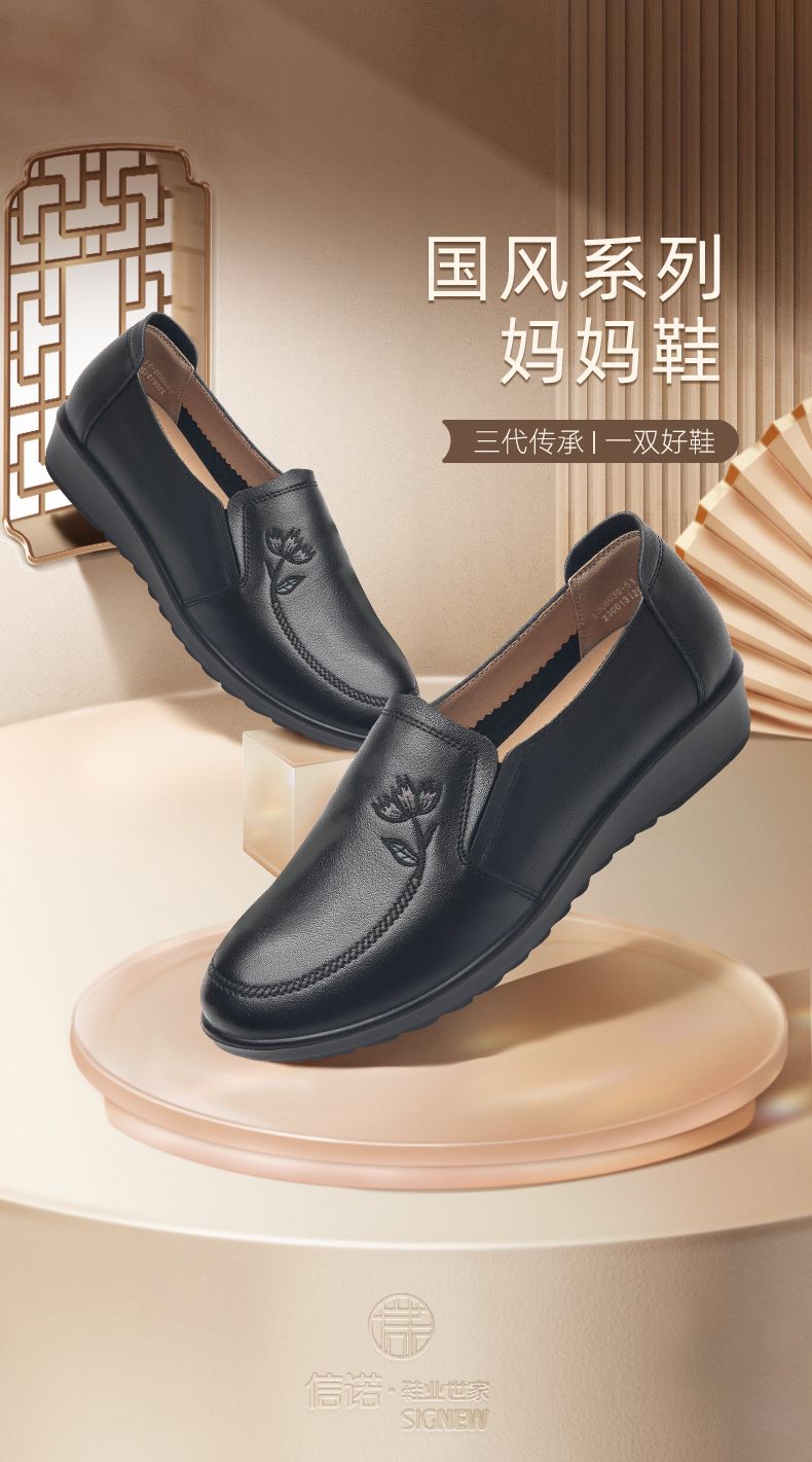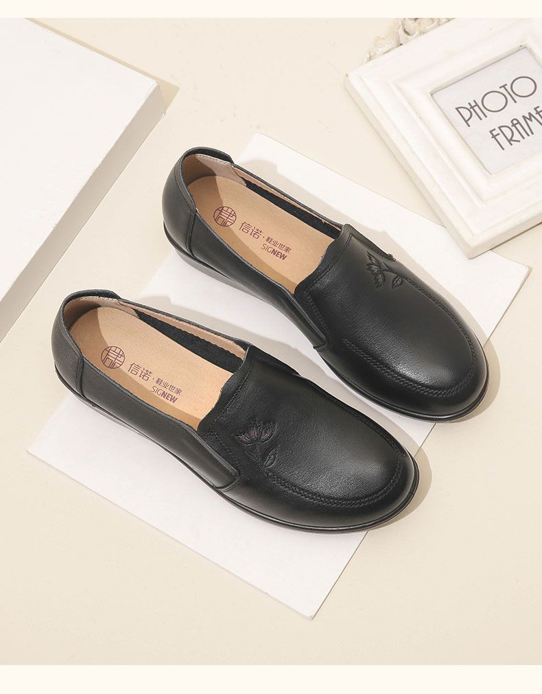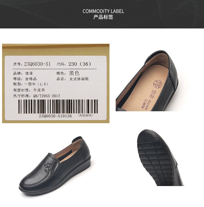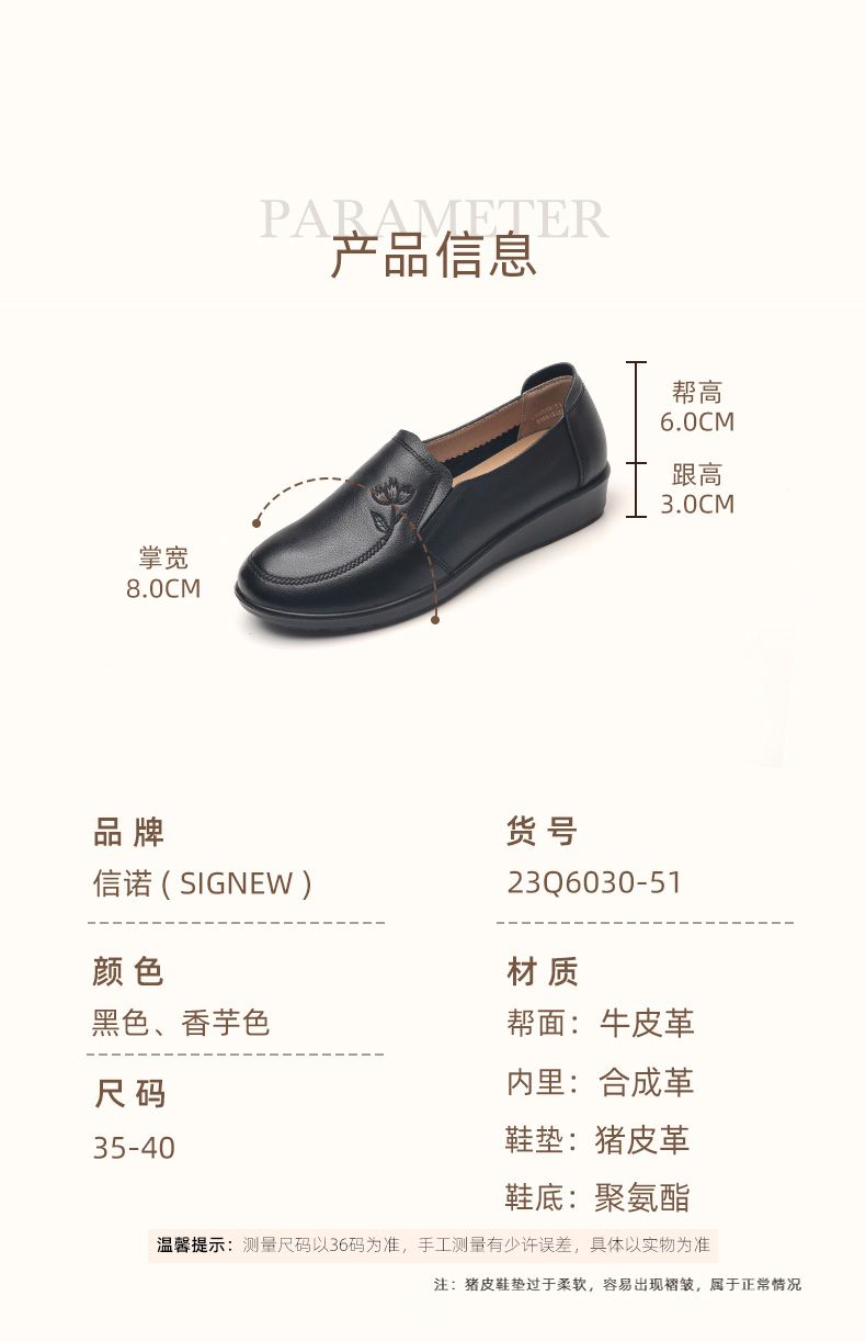 信诺妈妈鞋休闲软底2023秋季新款真皮舒适中老年女鞋圆头平底皮鞋23Q6030-51