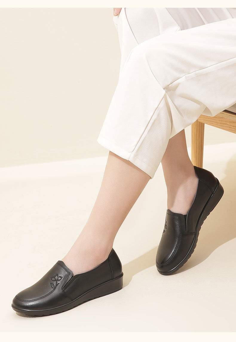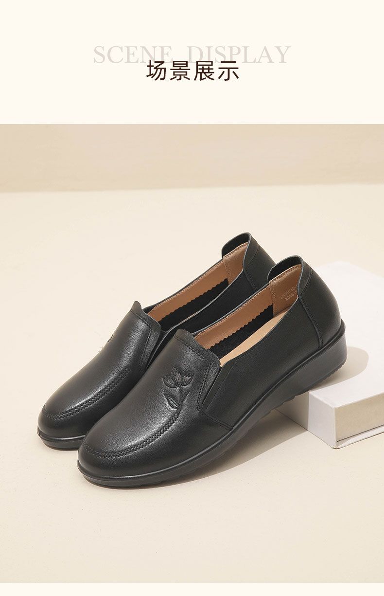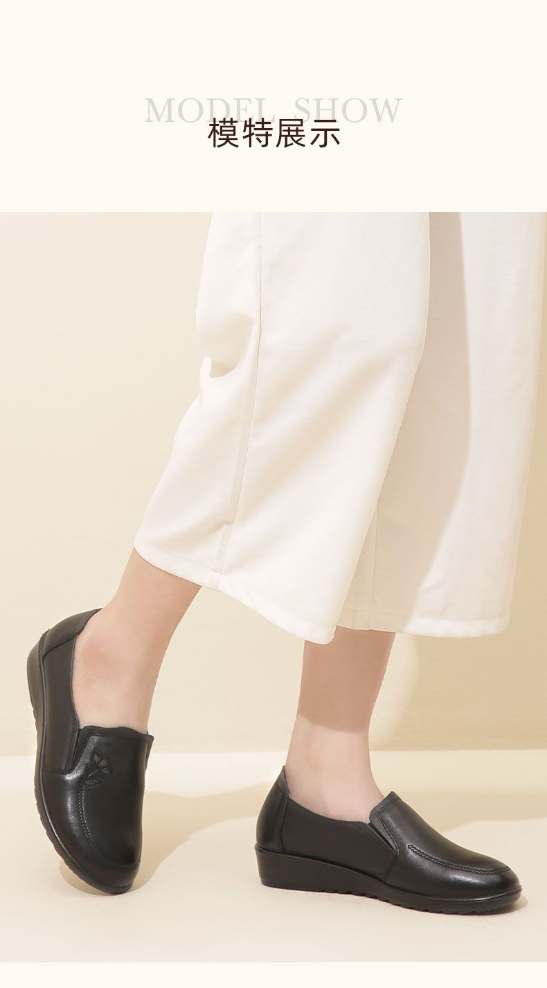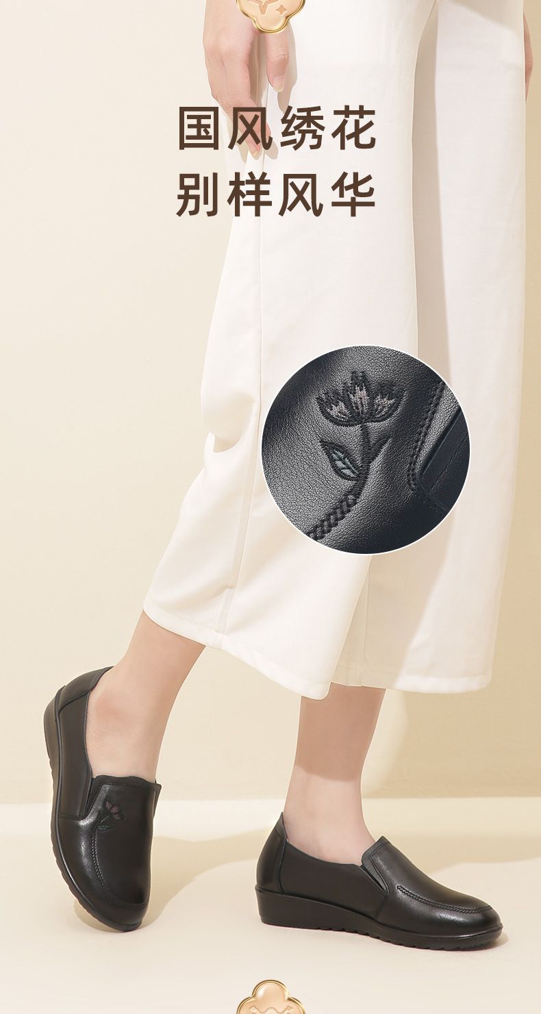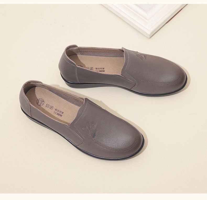 信诺妈妈鞋休闲软底2023秋季新款真皮舒适中老年女鞋圆头平底皮鞋23Q6030-51