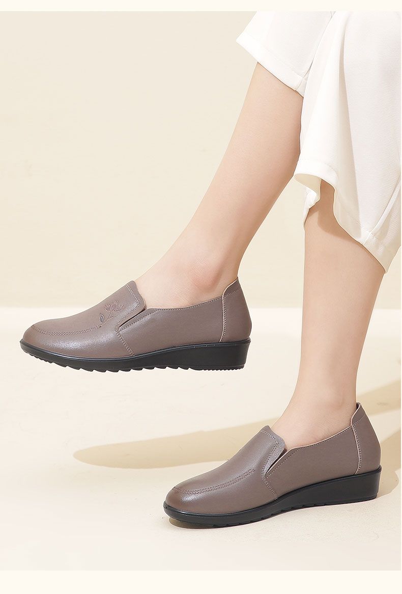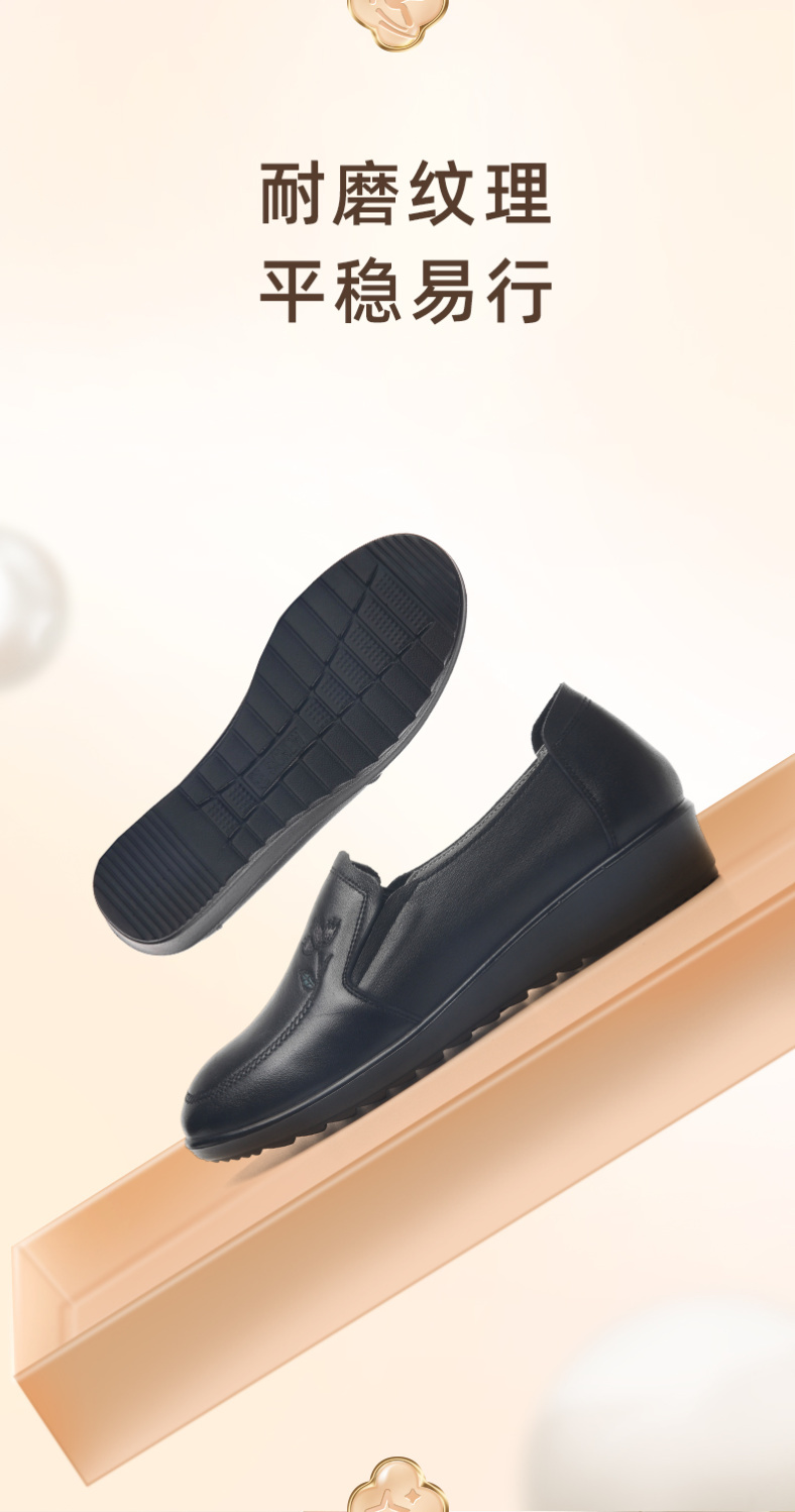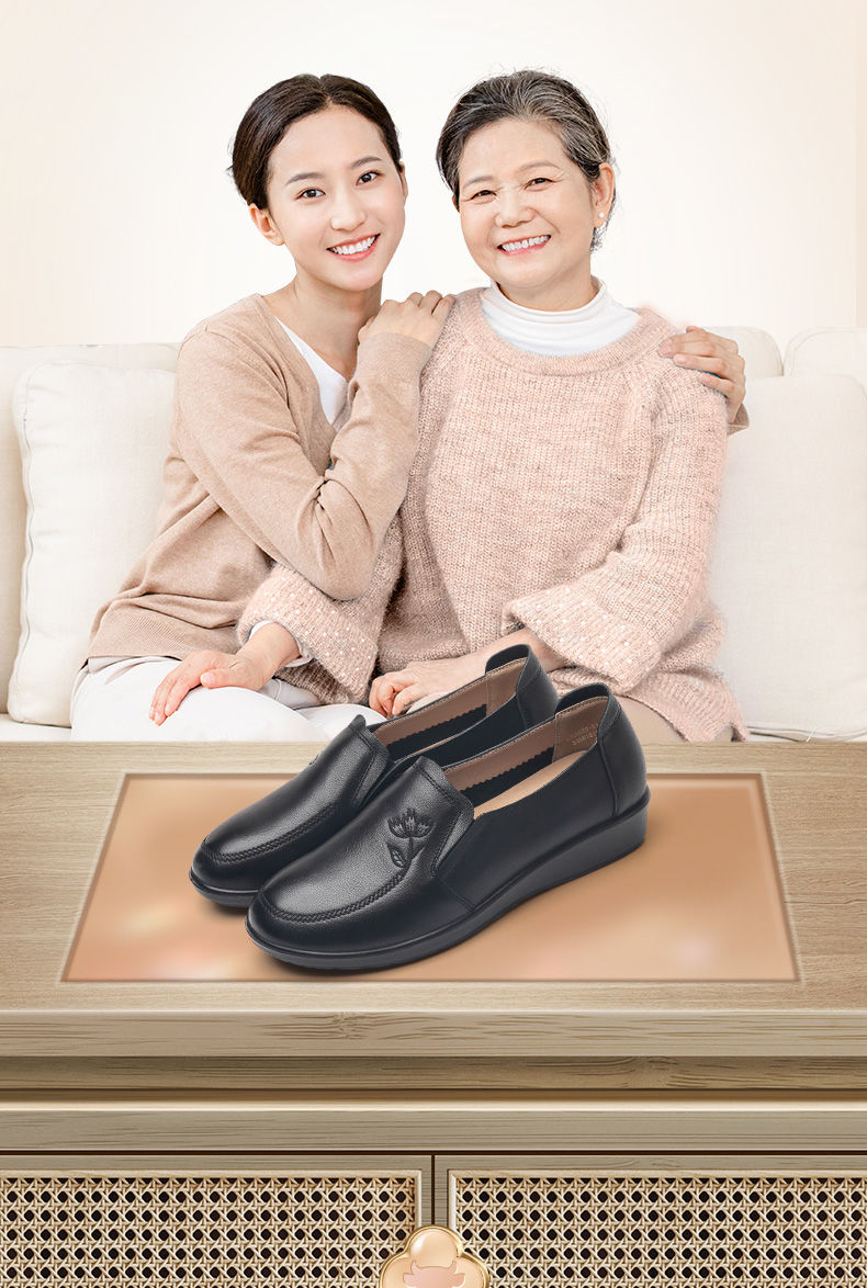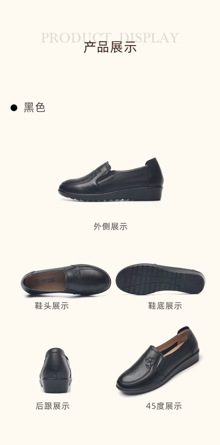 信诺妈妈鞋休闲软底2023秋季新款真皮舒适中老年女鞋圆头平底皮鞋23Q6030-51