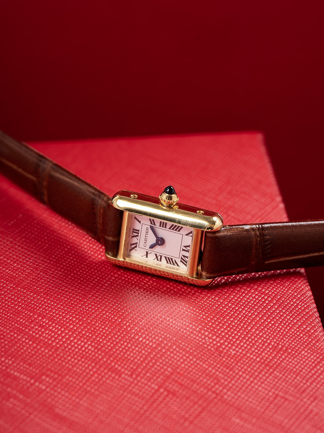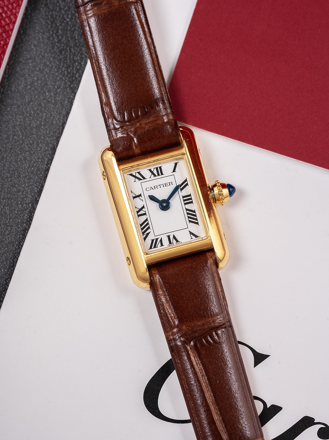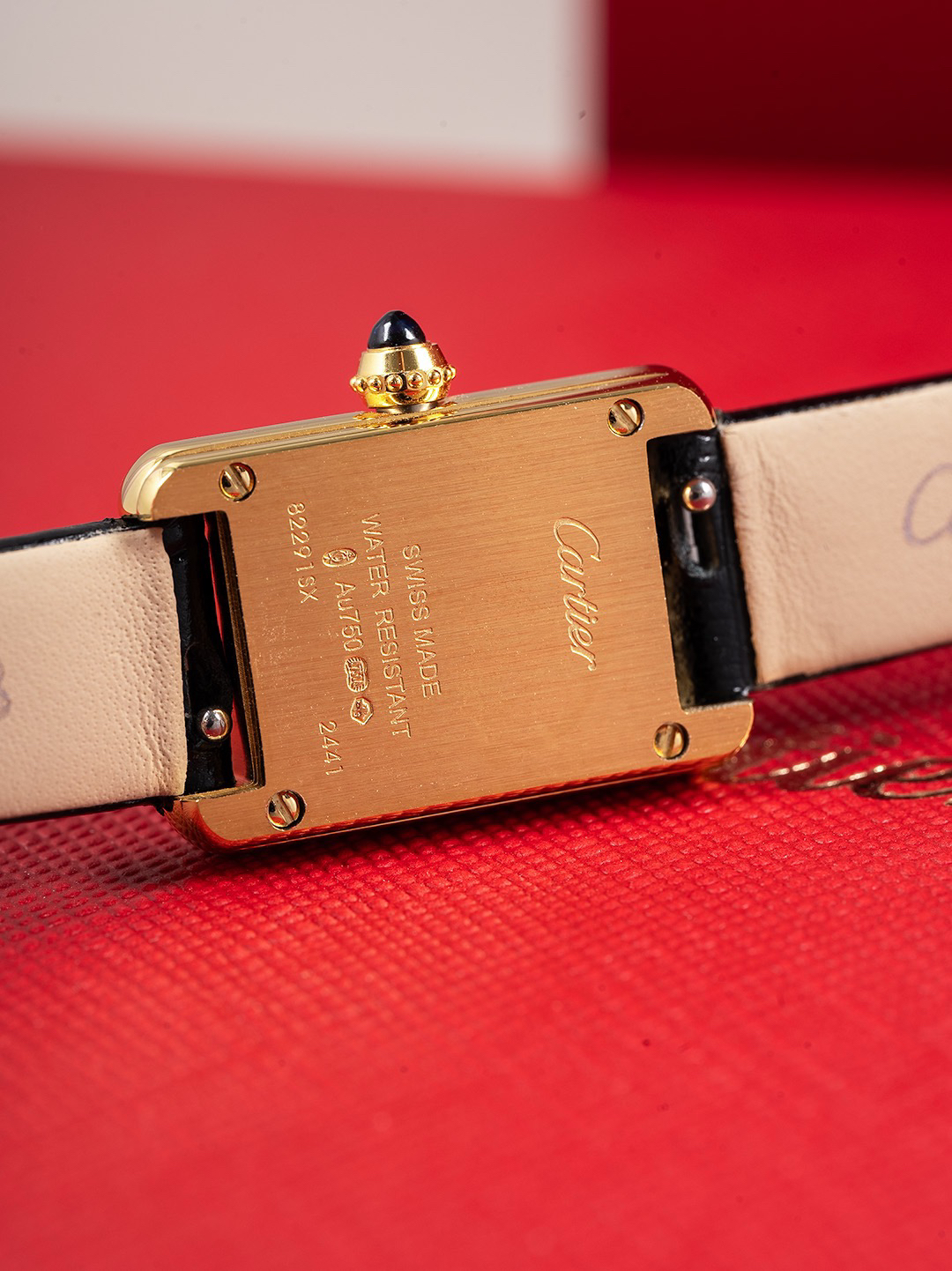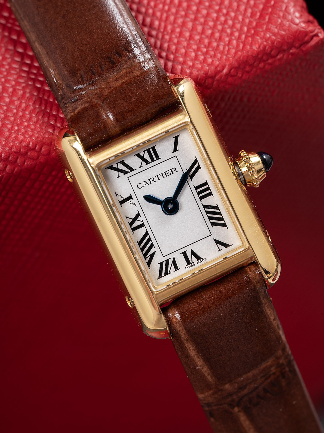 2025年卡地亚经典重塑,卡地亚将经典坦克腕表缩小尺寸,推出全新迷你坦克石英手表系列。纤细表壳,精致比例,完美贴合手腕,尽显女性优雅。金色表壳搭配蓝宝石水晶玻璃,复古磨砂奶油简约表盘,清晰易读,尽显卡地亚的极简工艺。