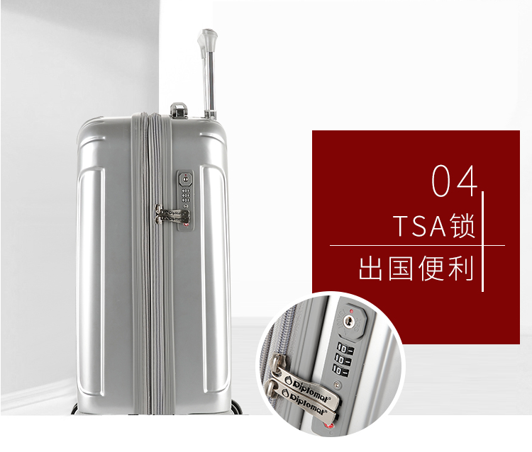 外交官(Diplomat)镜面扩充层箱子登机箱行李箱男女旅行箱万向轮拉杆箱密码箱TC-6012 20英寸 深蓝色