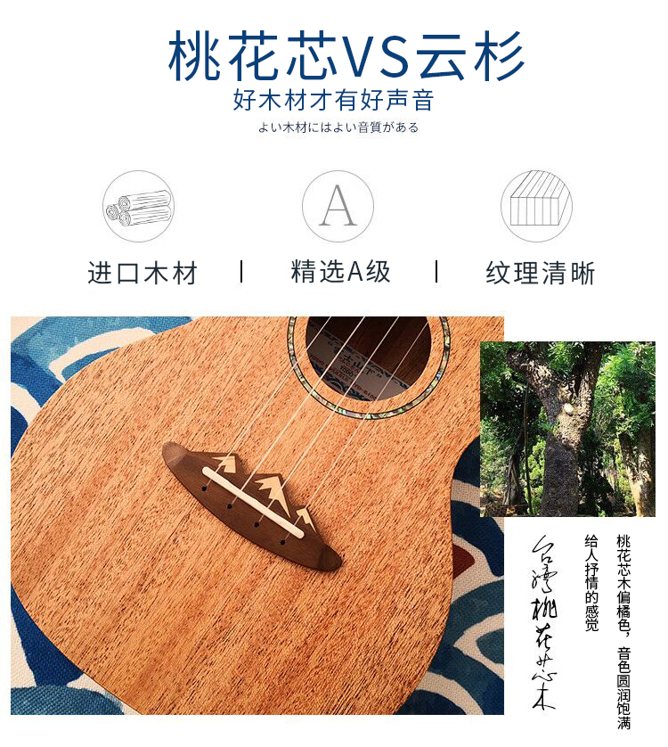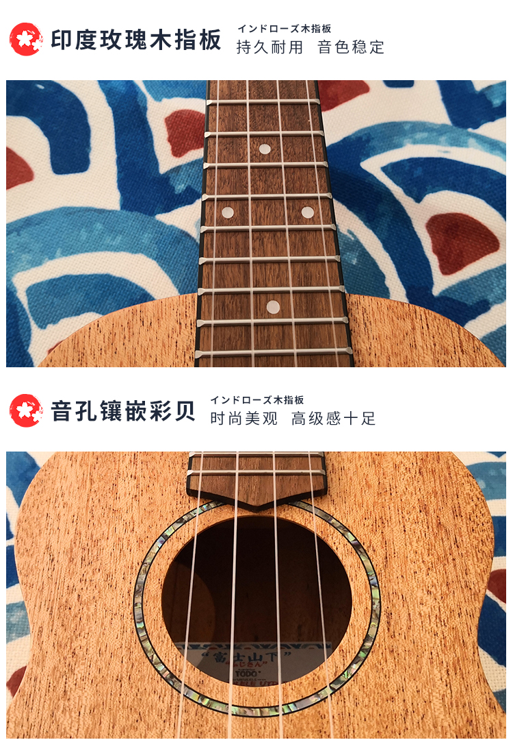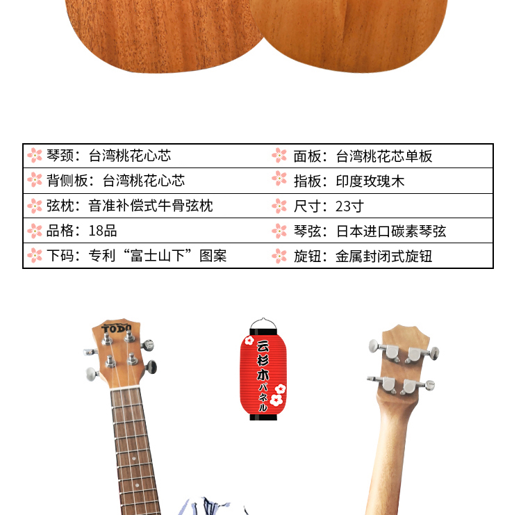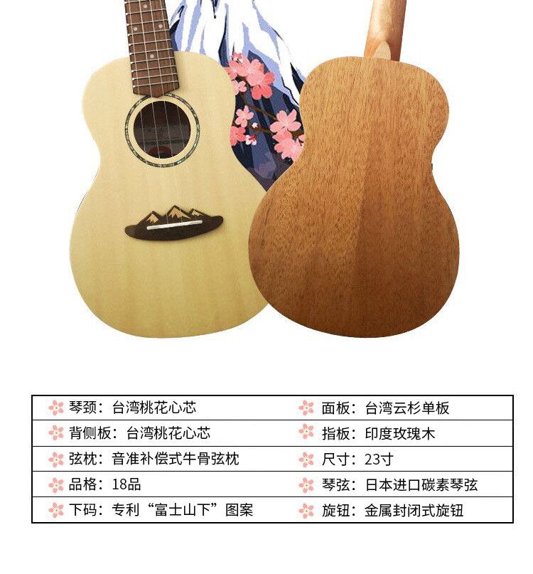 TODO尤克里里富士山下单板桃花芯面单云杉初学者23寸26寸