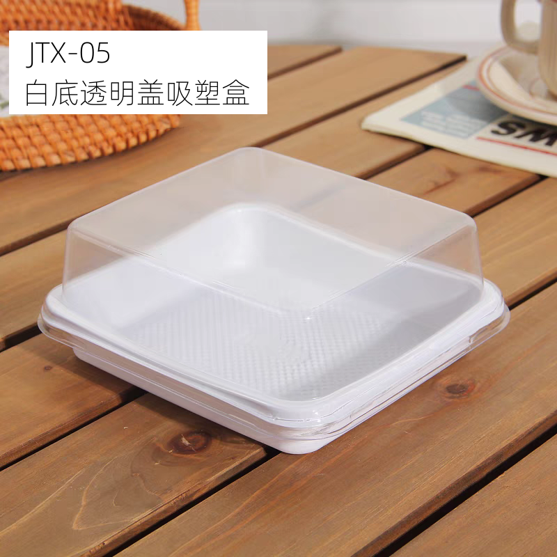 JTX05 白底透明盖吸塑盒 100个 蛋糕面包西点一次性烘焙包装盒子