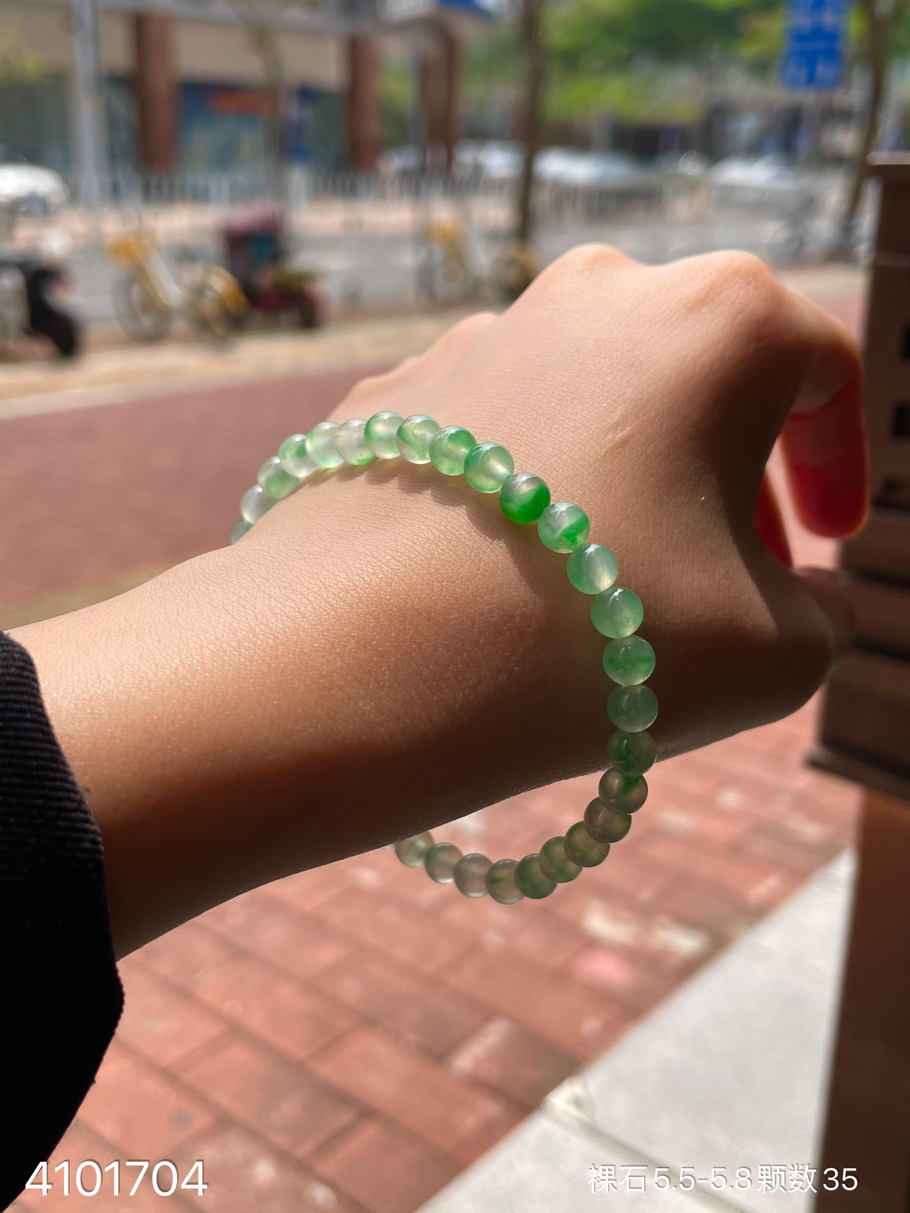 玻璃种飘翠珠子手串 53999【4101704】
