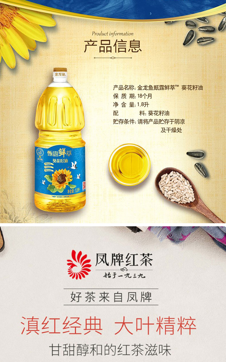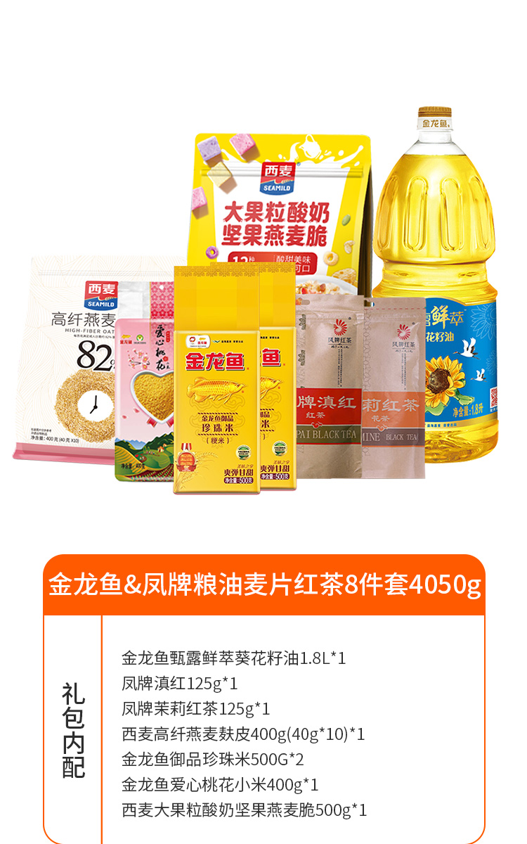 金龙鱼&凤牌粮油麦片红茶8件套4050g