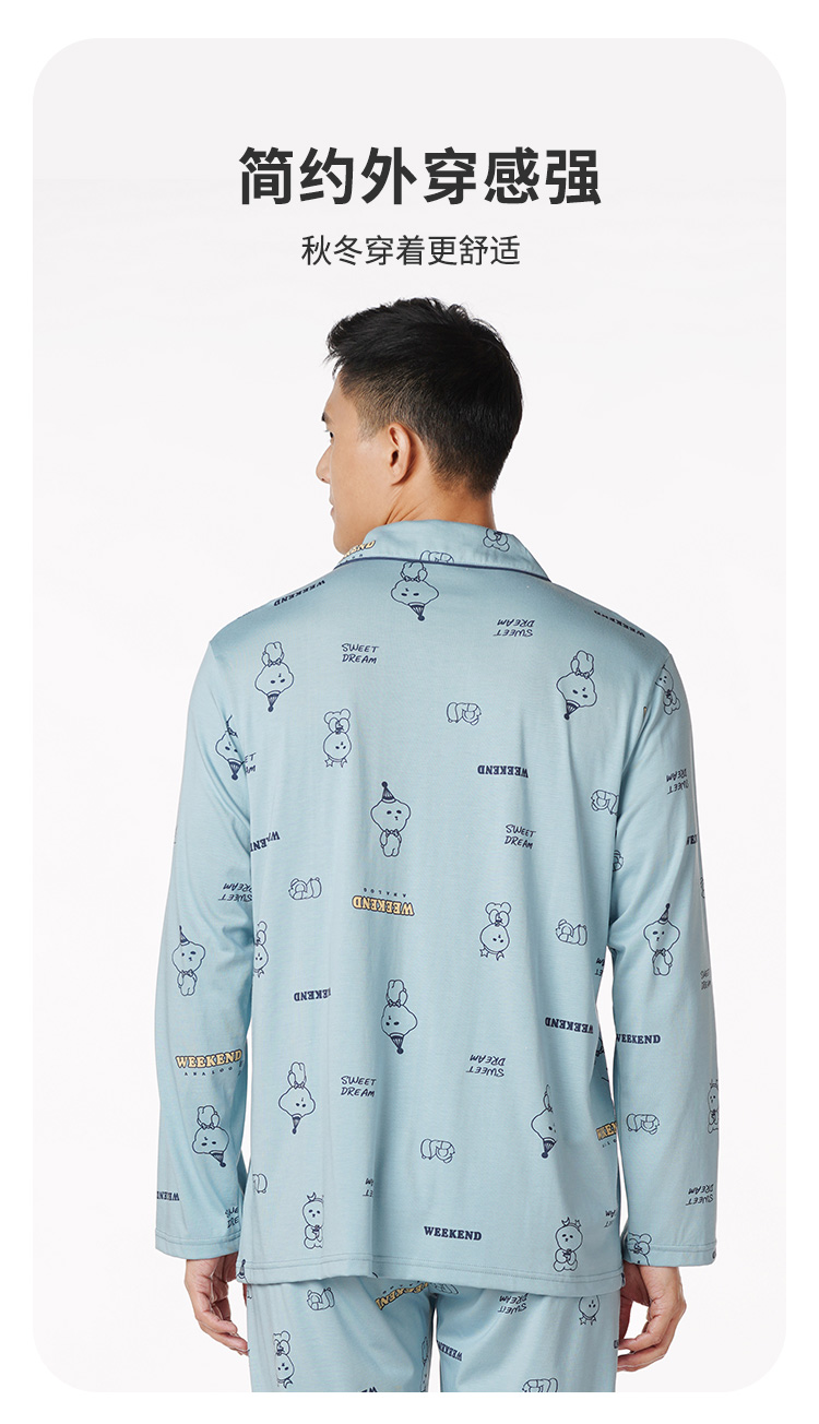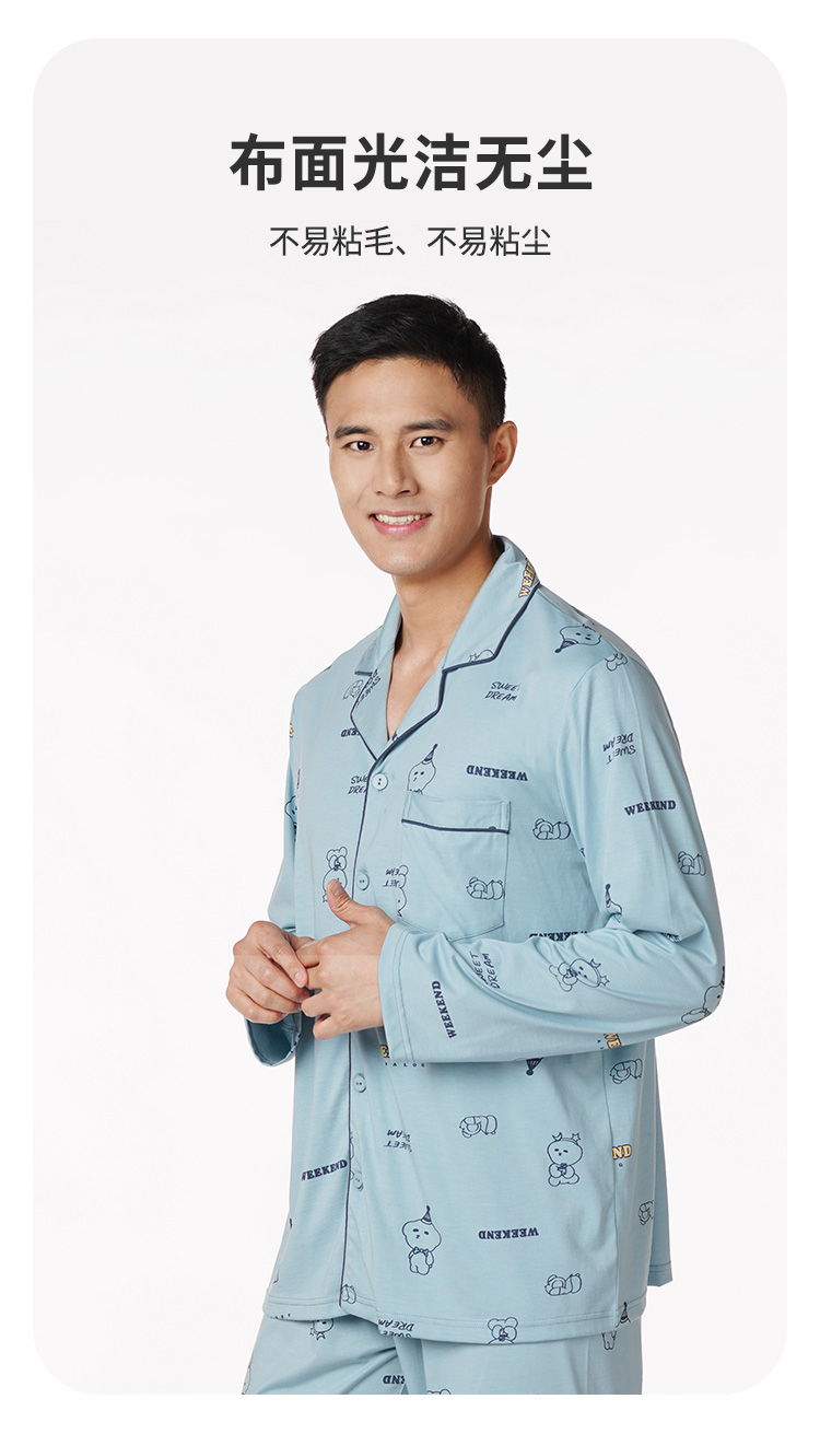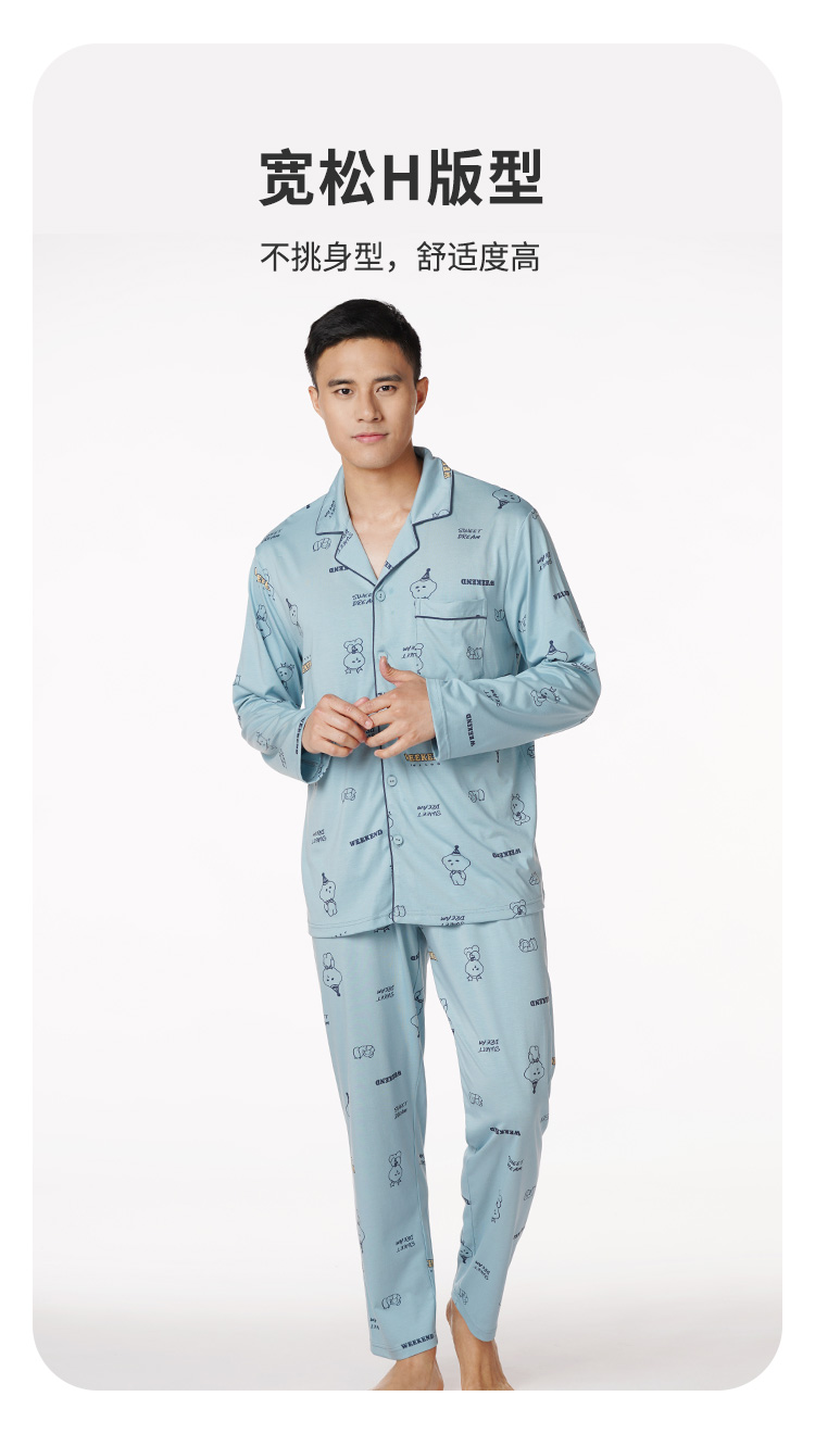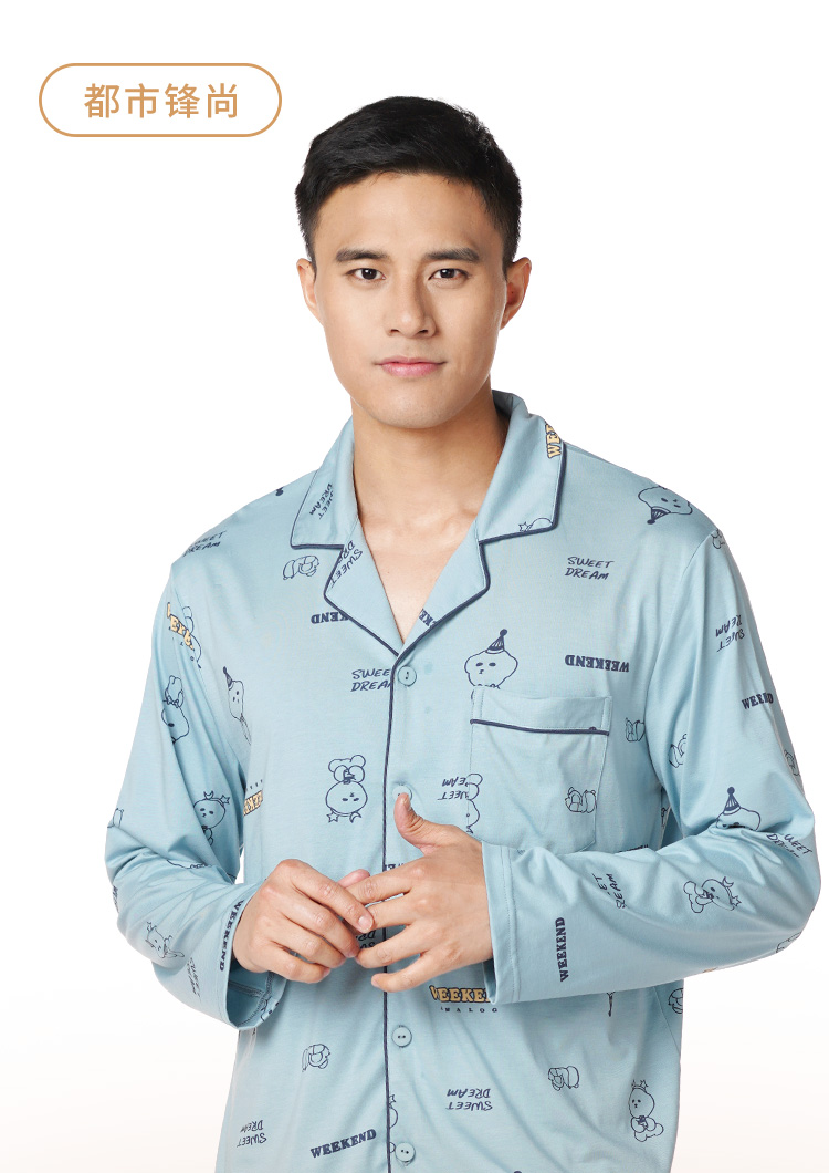 都市丽人都市锋尚生活家居男士特价棉质长袖套装26支CVC单面薄家居服长袖睡衣FH21G1