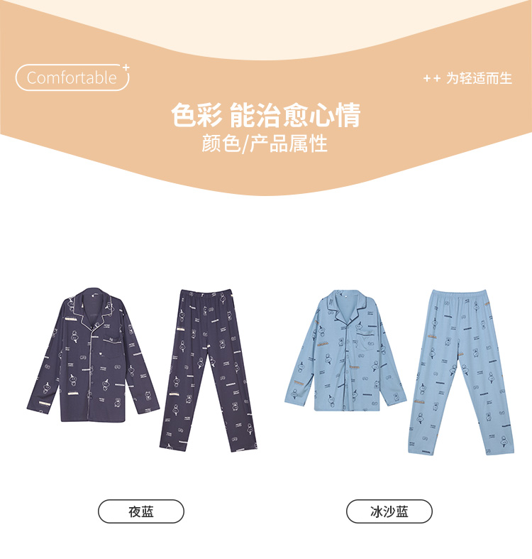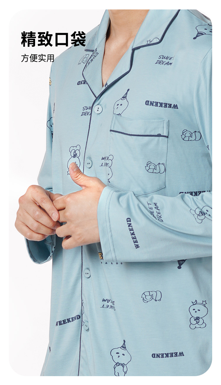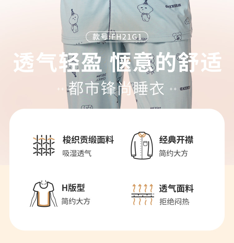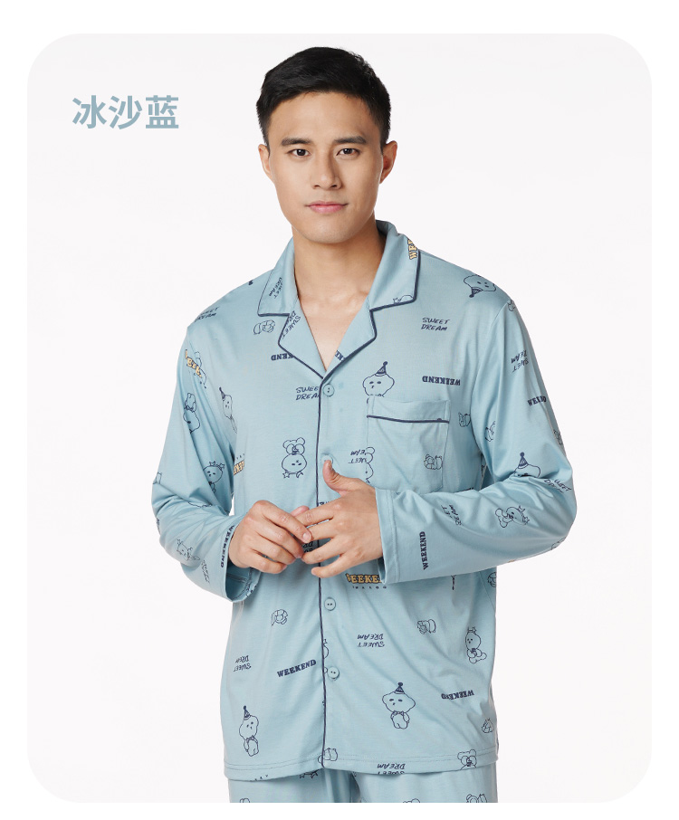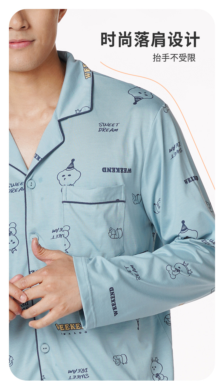 都市丽人都市锋尚生活家居男士特价棉质长袖套装26支CVC单面薄家居服长袖睡衣FH21G1