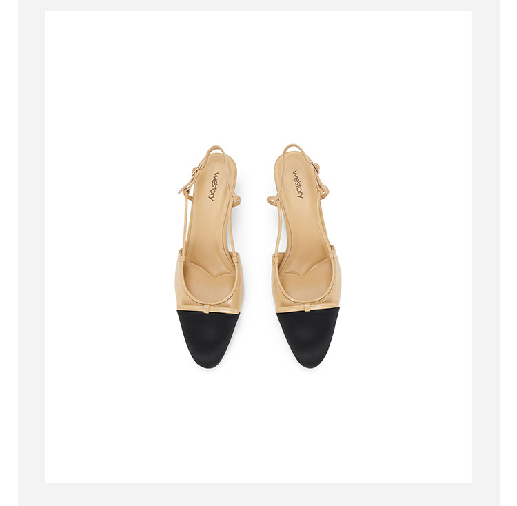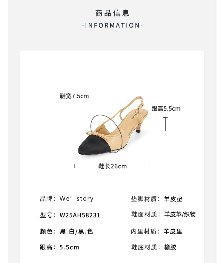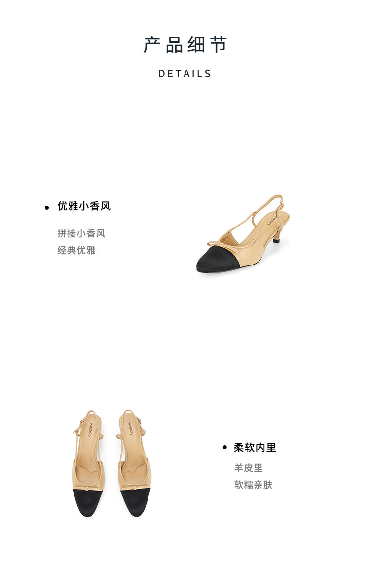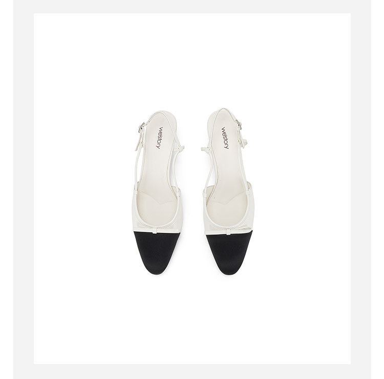 Westory2025年春季圆头小香风拼接撞色低跟单鞋后空通勤百搭空凉鞋W25AH58231